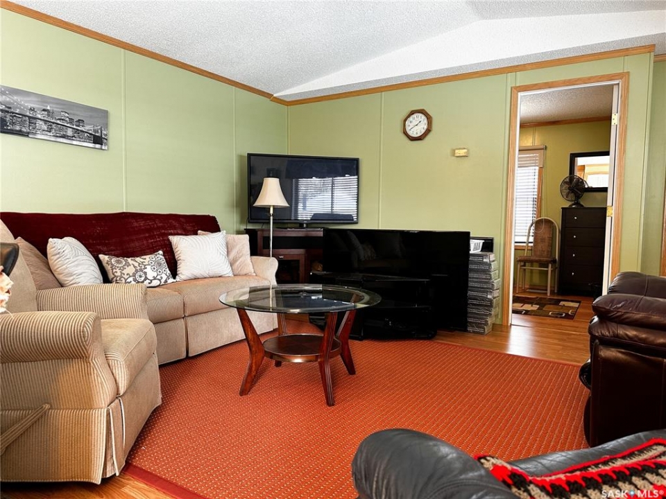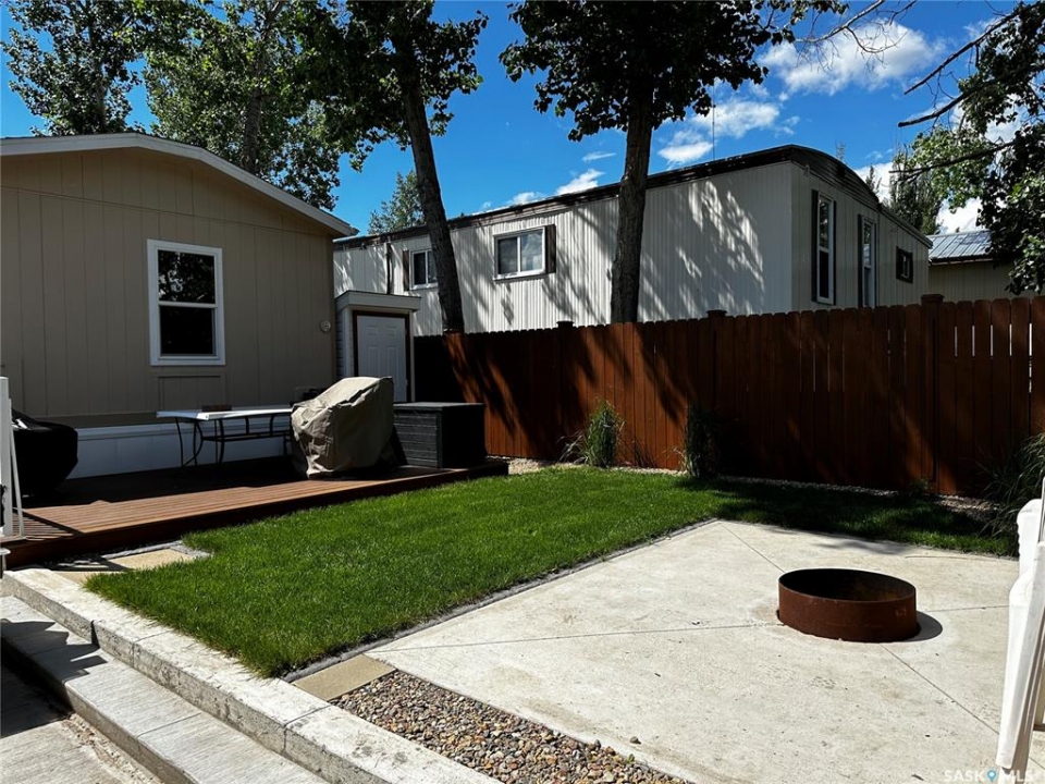 Year-Round Lake Life at Bayview Heights! Discover your perfect escape in Battleford's Provincial Park—just steps from the public beach! This fully renovated, turn-key property offers all the perks of lake living without the hassle of waterfront upkeep. Inside, you'll find 2 cozy bedrooms, a full bathroom, laundry, and a beautiful solid oak kitchen overlooking the living room. Built with 2x6 construction, this home is well-insulated for year-round comfort and low utility costs. Everything you need is included—furnishings, TVs, dishes, cutlery, and more. Just bring your clothes and move in! The detached, heated, and insulated single garage adds extra convenience and is being upgraded with a 2-piece bath. The fully fenced yard is private and low maintenance, featuring a composite deck (no sanding or staining!), a wood shed, and a charming firepit area—perfect for relaxing evenings. A massive driveway offers plenty of parking, including space for RVs. Plus, there's a 220V plug and rear-lot RV dump for added convenience. Enjoy all the amenities of the park: a stunning beach, playground, and the nearby Jackfish Lodge with its 18-hole golf course and fantastic restaurant. Whether you're looking for a summer retreat or a winter getaway, this home has it all. Don't miss your chance to own a slice of paradise at Jackfish Lake—call today for a viewing!