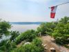 Built in 2010, this stunning lakefront home sits on 3 lots (180 feet of frontage) and offers over 4,100 sq. ft. of living space spread across three levels, including a walkout basement and a loft. With 3 bedrooms and 4 bathrooms—plus the potential to add two more bedrooms—this home is designed to accommodate families of all sizes. The main level offers a bright and inviting living room, highlighted by vaulted wood-clad ceilings, a natural gas fireplace, beautiful Ficus tree and expansive windows that frame stunning lake views. The open-concept kitchen effortlessly connects to the dining area, which opens onto a full-length deck—ideal for outdoor dining or enjoying the scenery. Just off the dining space, a generous family room features a wet bar and wood stove, making it perfect for both entertaining and relaxing. Also on the main floor are two bedrooms, including a primary suite complete with a 4-pc ensuite, walk-in closet, and convenient laundry. A 3-pc bathroom adds to the main level's functionality. Upstairs, the loft currently serves as a bedroom and includes a 3-piece bath and walk-in closet—all while offering incredible views of the lake. The walkout lower level features a 3rd bedroom, a cozy family room with a natural gas fireplace, and direct views of the front yard and lake. You'll also find a versatile "man cave" with a garage door that opens to an outdoor kitchen (in progress), creating a seamless indoor-outdoor retreat. A 3-pc bath, den, office space, utility/storage rooms and an exercise area with potential for another bedroom round out the lower level. The beautifully landscaped yard is thoughtfully designed with rocks, pavers, mature trees, and shrubs—offering plenty of room to relax and enjoy. A path leads down to the water, where you'll find powered docks and gas hookup right at the shoreline, making it easy to get out on the lake and enjoy all it has to offer. A 2 car garage and driveway along the back offer plenty of parking.