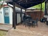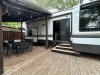 Walk in and enjoy! This place has everything you need for a perfect summer retreat. The 2022 Cottage Creek 40cdl park model 1.5 story camper is a gorgeous tiny home and has on-site warranty until 2029! In like-new condition, with a king size primary bed, 3 beds upstairs on soft rug floors, and a pull-out couch, there's sleeping space for the whole family. The main room boasts all stainless steel appliances including a double-door fridge, mini-dishwasher, gas stove, fireplace, 50" tv, and 2 couches in a comforting neutral color scheme. The grey water tank is 82gal and black is 41gal. Electrical service is 50amp. If the camper alone wasn't enough, the yard has an 11x26' deck with an 11x11' roof and roll down blinds for shade & privacy, and the glass-top table & 6 chairs are included. The 8x16'shed with laminate floor can store your toys, yard furniture, and even a spare fridge. The tidy yard space has room for plenty of chairs around the stone block firepit and has a 5' fence for privacy. Located only a 2 minute walk from the main beach and boat launch.