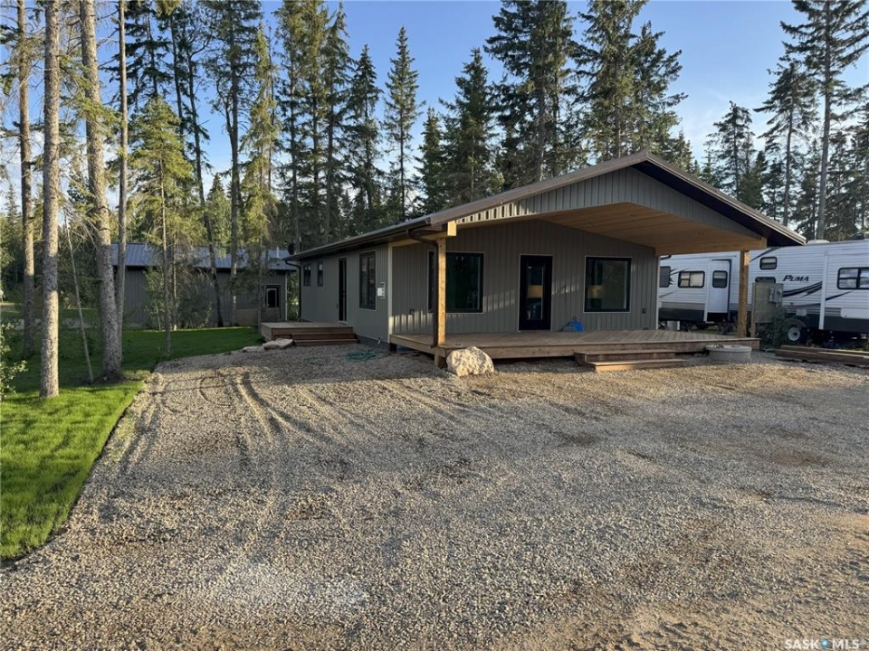 Lake comfort meets modern construction! This brand-new cabin and garage are for sale at 15 Bobbie's Boulevard in the Resort Village of Kivimaa Moonlight Bay, this 1176 square foot 3 bed/2 bath cabin and 720 square foot garage is beautifully finished. This custom-built cabin has been professionally built with high end finishes. A 28' x 12' covered porch with pine ceiling fronts this home. Inside is an open concept kitchen and living room. The kitchen boasts custom cabinetry and quartz countertops. Luxury vinyl plank runs throughout the home. The living space has pine ceiling, large picture windows, a natural gas fireplace and custom built-in cabinetry. The 2 bathrooms are finished with custom cabinetry and quartz. The master bedroom has a walk-in closet and ensuite. The detached garage is 24'x30' with an oversized 16x 9' door and natural gas heat. This cabin has a high efficient natural gas forced air furnace, air conditioning, full water treatment system including reverse osmosis, an on-demand water heater, a private well and 1100-gallon private septic tank. This is a package that doesn't come available often at Turtle Lake, so grab your favourite realtor and come for a showing!