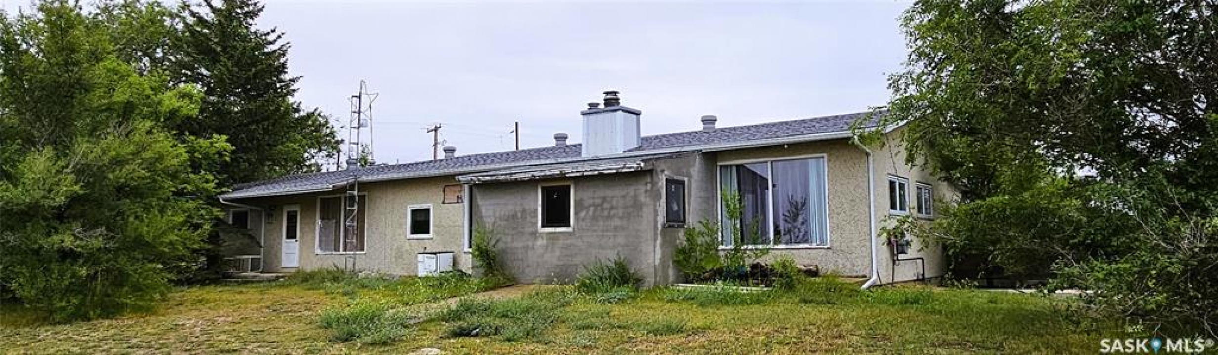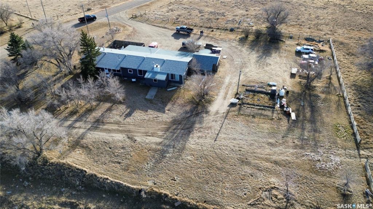 Check out this 4.35 Acre property just minutes from Maple Creek, SK. This expansive 2016 square foot home features 4 bedrooms on the main level, as well as a large laundry room with sink and pantry storage. The kitchen is open to the dining room with updated white cabinetry, lots of counter space and access to the covered back deck and private fenced yard. The living room is extremely spacious and features a wood fire place and large windows. There are two sides to the basement- one side has a bedroom and a storage room/ office area with large closet space. The unfinished side of the basement offers potential for customization, while an addition off the living room could be transformed into an extra living space and ensuite bathroom to one of the main floor bedrooms. The back of the addition has a second area that could be upgraded into a great attached garage or work shop area. The land has fence surrounding to provide an area for horses or animals. Surrounded by mature trees, this property offers abundant space and privacy. Don't miss this unique opportunity to create your ideal living space on your own piece of land!