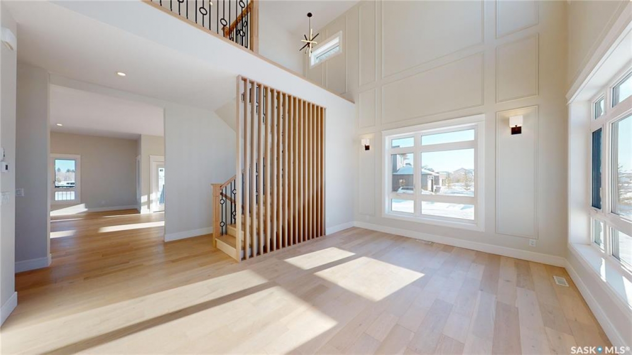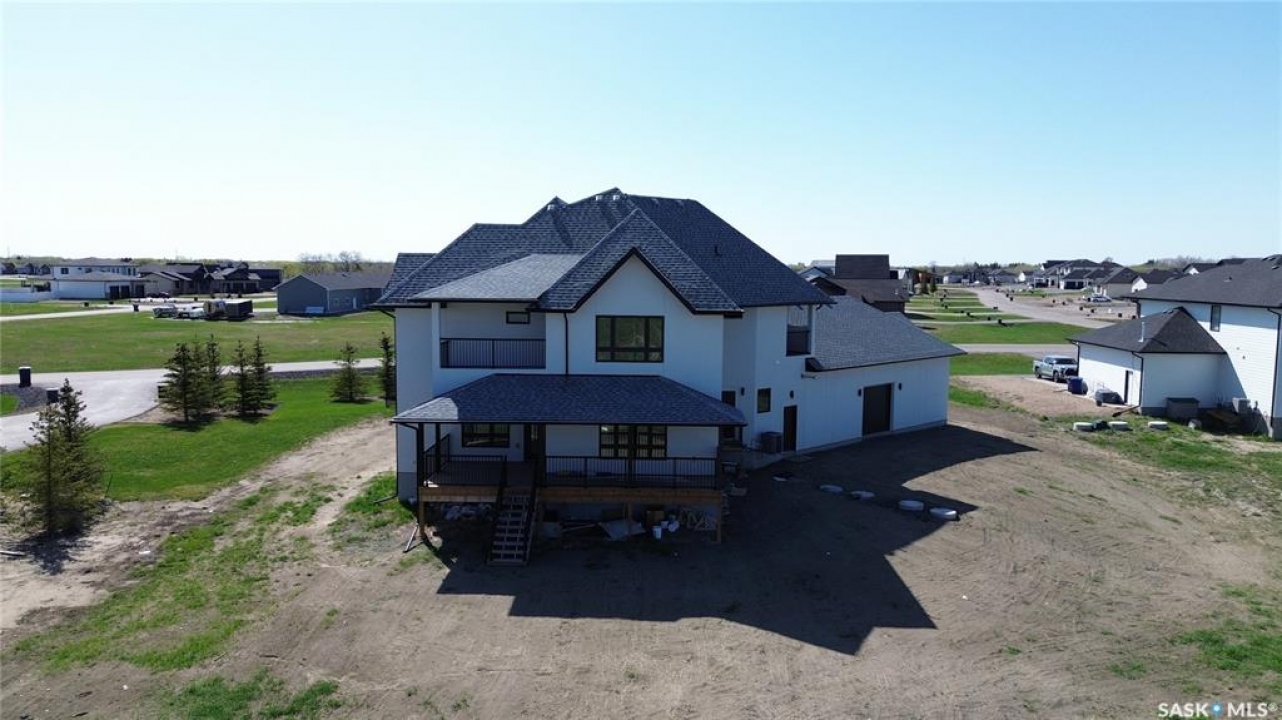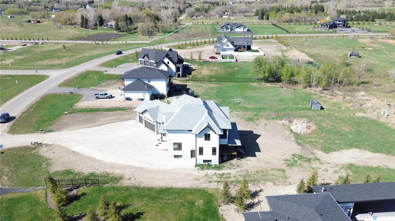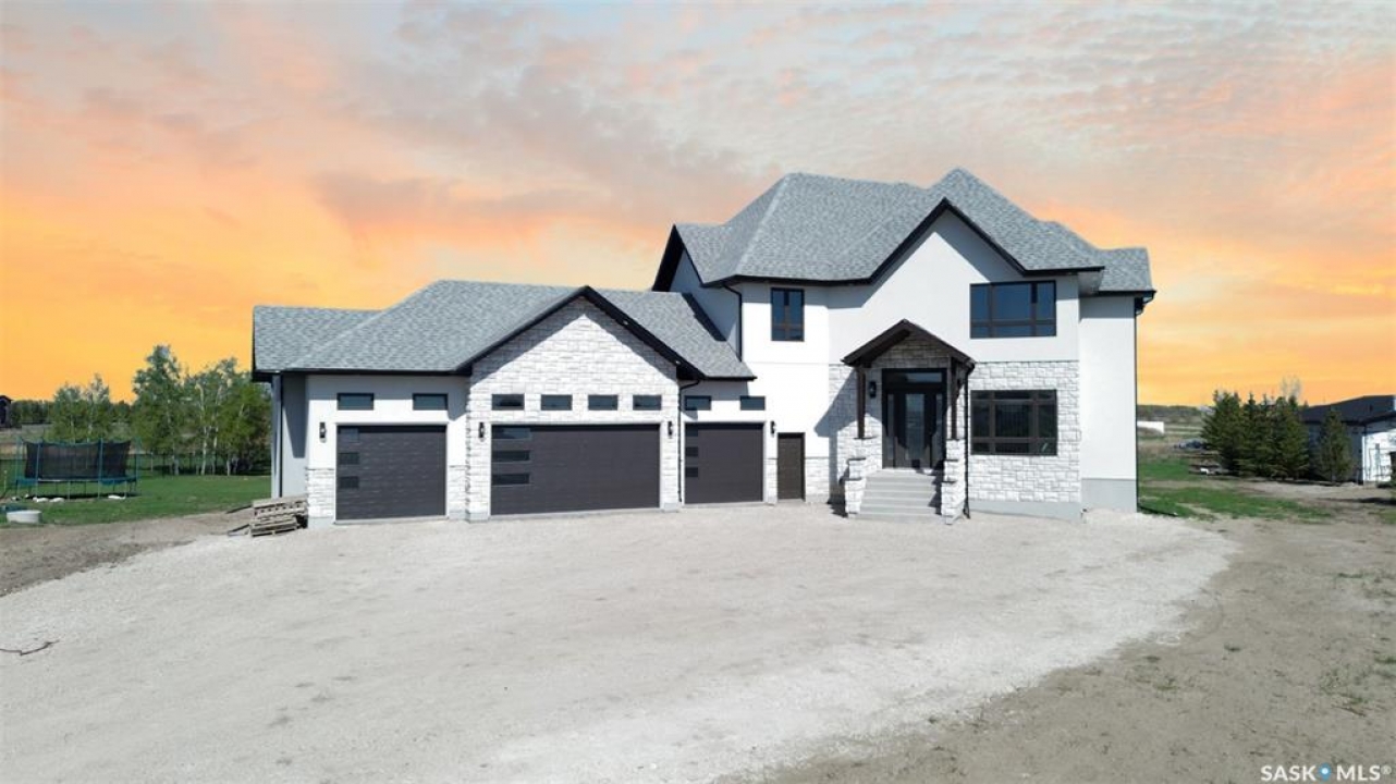 Welcome to this magnificently large and luxurious home in Edgemont Park Estates, one of the Saskatoon area's most exclusive and desirable acreage communities only a few minutes south of the city. Exquisite executive features abound inside and out with 2,837 square feet of living space above grade, an attached 4-car heated garage, plus a completely finished basement. With five bedrooms and six bathrooms, it's the perfect fit for a large family, boasting ample capacity for multigenerational, extended family, or those who enjoy hosting and entertaining guests. The main floor has an impressive living room with a soaring second-floor ceiling and an open-concept kitchen, dining area, and family room. The chef-worthy primary kitchen has custom cabinets with ceiling-high upper cabinets and high-end appliances, and is complemented by a second kitchen for food prep and spicy cooking. The upper level includes three generously sized bedrooms, three ensuite bathrooms, and two balconies for outdoor relaxation. The lower level offers a family room theatre, bar area, and two more bedrooms and full bathrooms. Upgrades include gorgeous engineered hardwood and tile floors, intricate finishing details, central air conditioning, an insulated exterior acrylic stucco system, 10 foot main floor walls, 9 foot 2nd floor and basement walls, and much more. Other wonderful features include main floor laundry, a massive covered deck, and a rear-facing overhead door. Call now for more information or your own private preview.