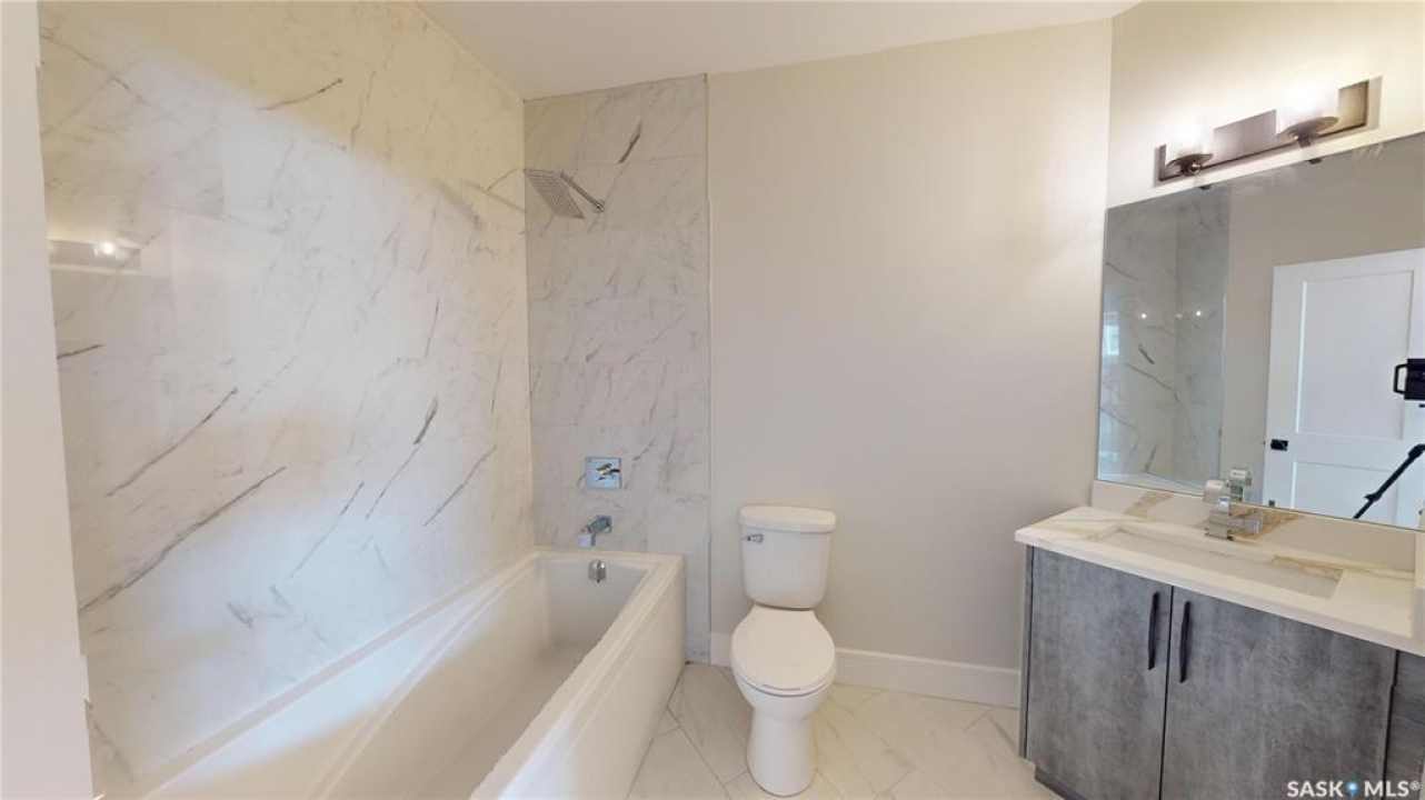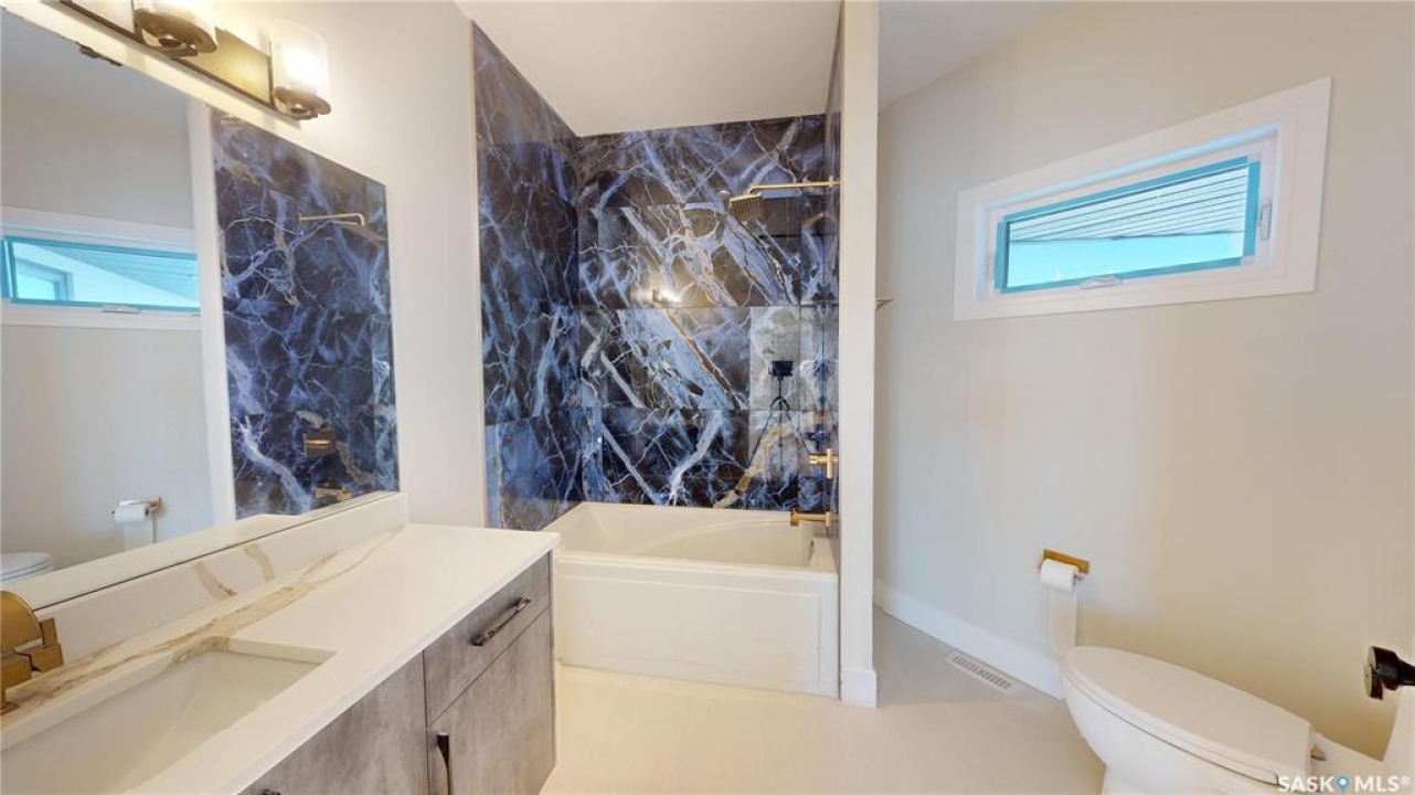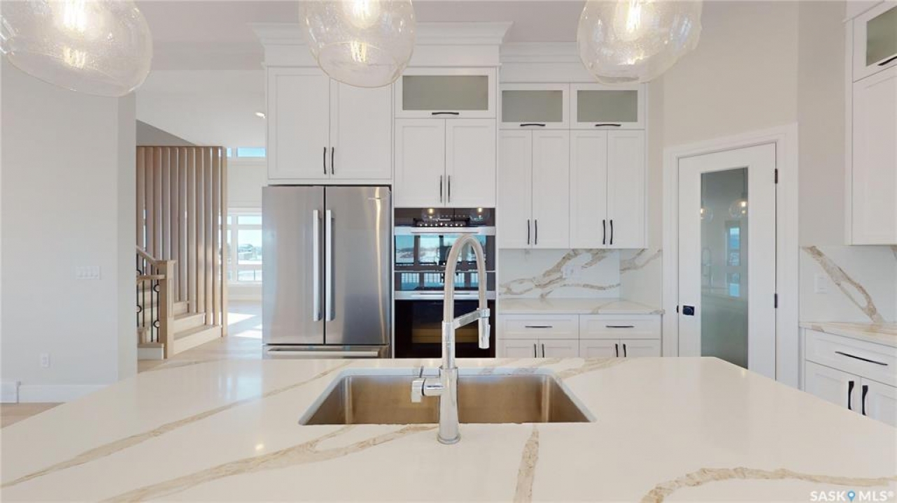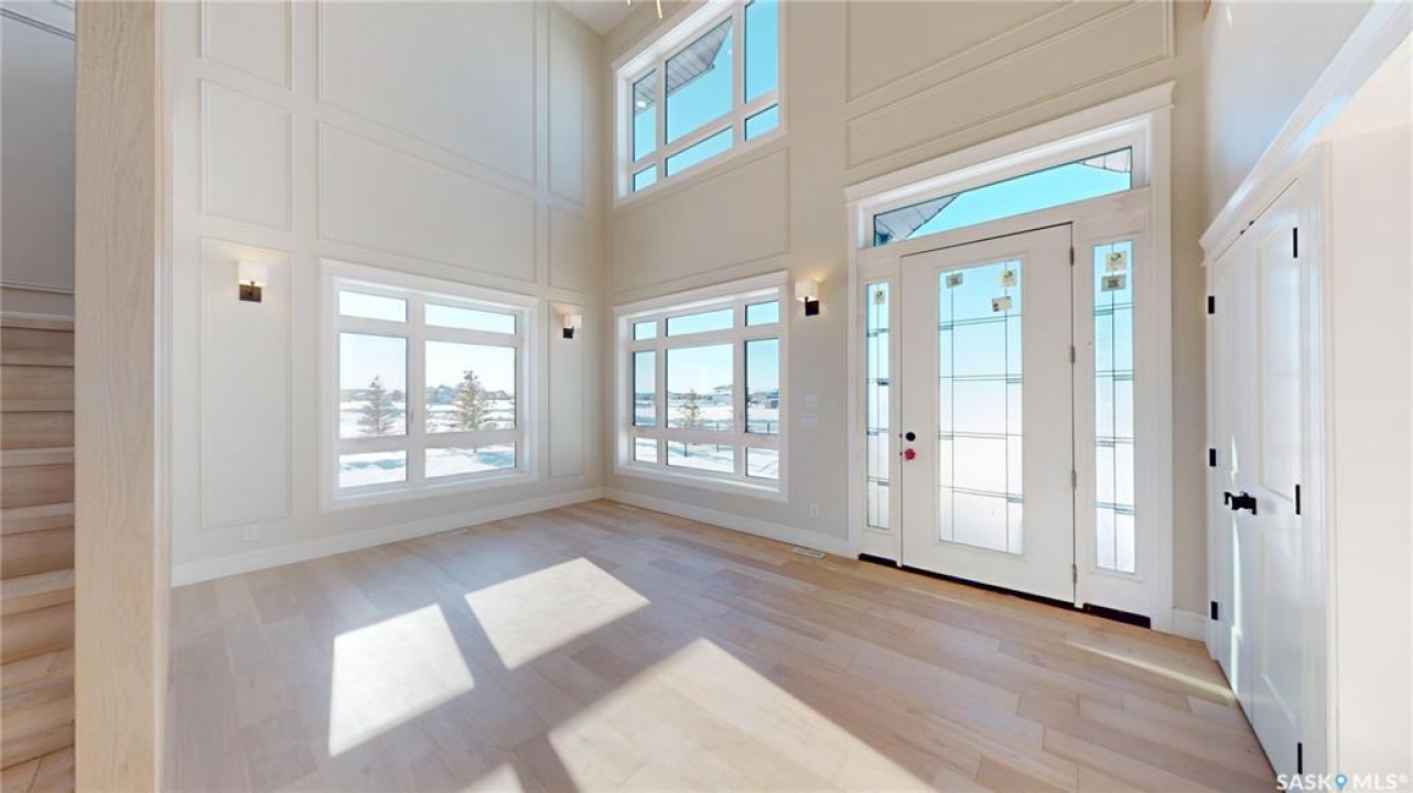 Welcome to this magnificently large and luxurious home in Edgemont Park Estates, one of the Saskatoon area's most exclusive and desirable acreage communities only a few minutes south of the city. Exquisite executive features abound inside and out with 2,837 square feet of living space above grade, an attached 4-car heated garage, plus a completely finished basement. With five bedrooms and six bathrooms, it's the perfect fit for a large family, boasting ample capacity for multigenerational, extended family, or those who enjoy hosting and entertaining guests. The main floor has an impressive living room with a soaring second-floor ceiling and an open-concept kitchen, dining area, and family room. The chef-worthy primary kitchen has custom cabinets with ceiling-high upper cabinets and high-end appliances, and is complemented by a second kitchen for food prep and spicy cooking. The upper level includes three generously sized bedrooms, three ensuite bathrooms, and two balconies for outdoor relaxation. The lower level offers a family room theatre, bar area, and two more bedrooms and full bathrooms. Upgrades include gorgeous engineered hardwood and tile floors, intricate finishing details, central air conditioning, an insulated exterior acrylic stucco system, 10 foot main floor walls, 9 foot 2nd floor and basement walls, and much more. Other wonderful features include main floor laundry, a massive covered deck, and a rear-facing overhead door. Call now for more information or your own private preview.