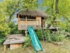 Situated on a generous double lot surrounded by mature trees and privacy hedges, this charming property offers a peaceful setting with loads of potential. The main bungalow has seen thoughtful updates over the years and includes 2 bedrooms, 1 full bathroom, and a dedicated laundry room. In 2023, many updates were professionally completed, including new drywall and trim throughout, plus drywall replaced under the bedroom and bathroom windows. The kitchen windows were updated around 10 years ago, and an old electrical panel was removed from the kitchen, leaving a perfect nook for shelving or a coffee bar. A 200-amp panel in the utility/laundry room was upgraded about 10 years ago. There is electric baseboard throughout, and existing ductwork and natural gas service to the house—making furnace installation straightforward if the buyer prefers. There's also wiring for both an electric fireplace in the living room and power to the fishpond (currently shut off at the breaker). The crawlspace provides utility access and houses the water pump. A private well, drilled approximately 7 years ago and 14 feet deep, includes heat tape to prevent freezing. The septic system sits on the southwest side of the yard and is marked with wood covering. Outside, enjoy a bricked patio, waterfall-fed pond, chokeberry bushes, and four ornamental trees that attract birds and add seasonal color. There's also a treehouse with slide, a fenced animal pen, and multiple sheds, including a chicken and goat pen—YES! You can have goats or chickens! A large open area is ready for planting a garden and preserving to your heart's content. At the back of the property sits a second dwelling—the "old blue house." This heritage-style two-storey is a fixer-upper full of character and possibility. It's currently used for storage (no interior photos available) but could be restored into something truly special with the right vision. Don't miss your chance to grab your slice of this peaceful small-town paradise!