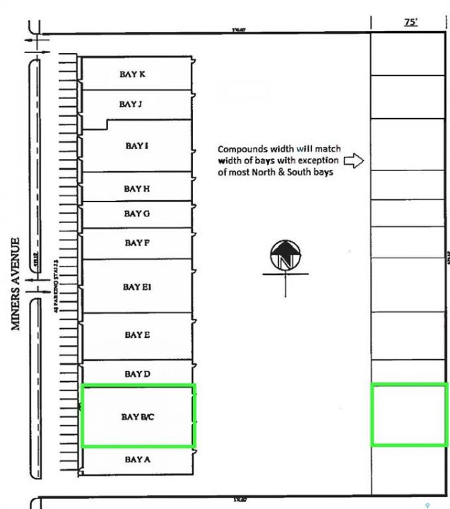 4,850 SF +/- end warehouse bay available for lease in the North Industrial Area. Located on Miners Ave., the property is situated just off 51st St., one of Saskatoon's main industrial traffic routes. The warehouse bay includes two 12'x14' grade level overhead doors for loading. The bay is open and spacious and includes floor drains. The warehouse includes 1 x washroom and 1 x store front office and showroom area. Gated and secure private compound is also available.