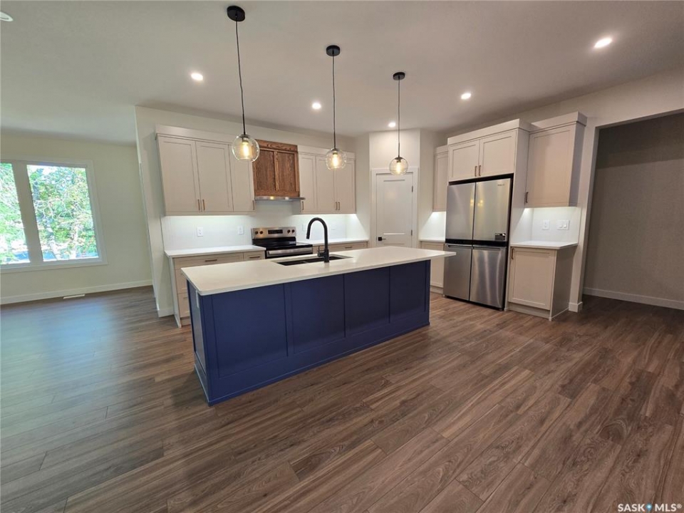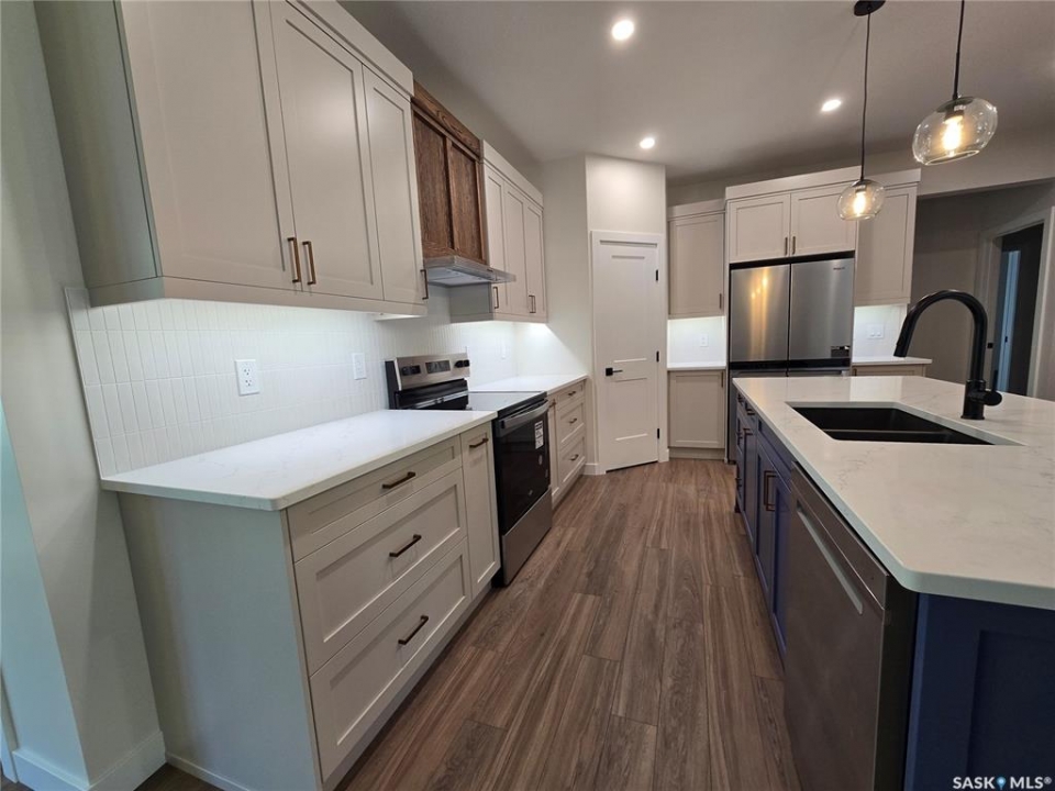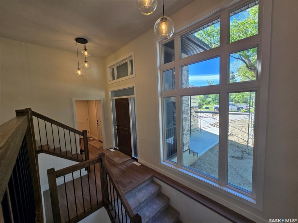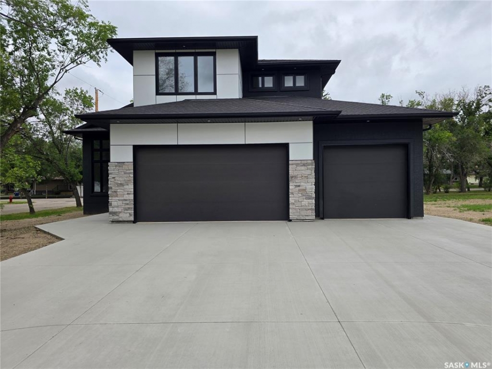 Welcome to this stunning brand new two-story home, thoughtfully designed for modern living and effortless comfort. Step inside to discover an open and inviting main floor with a wall of windows that's screams elegance. The chef's kitchen boasts sleek finishes, quality cabinetry, and seamless flow into the dining area and living room, perfect for entertaining or relaxed family evenings. Cozy up by the fireplace or step outside to the covered deck, ideal for year-round outdoor living. There is a spacious primary suite, offering privacy and convenience with a luxurious En-suite, massive walk-in closet, and access to the main floor laundry. The main level also includes a stylish powder room for guests. Upstairs, you'll find two generously sized bedrooms, both with walk-in closets and a full bath, offering a private space for family or guests. The unfinished basement provides endless potential—create a home gym, media room, or additional living space to suit your needs. The basement is also set up to accommodate two more bedrooms, a bathroom, and lots of storage. There is also an amazing heated triple car garage. This new home comes with 1 year New Home warranty, and a 3 year tax exemption from the City of Weyburn that is transferable to the buyer. This home blends functional layout with modern elegance and is ready to welcome you home. Don't miss your chance to make it yours!