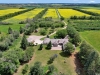 Maple Hedge Historical Home Site is a truly unique property—the first lot in the upcoming Maple Hedge Estates, a beautiful new country residential development featuring over 250 acreage lots on three quarters of land. This 14-acre site offers a spacious 4,201 sq ft bungalow nestled among mature trees, with a triple attached heated garage, double detached shop, and barn. Built in 1993, the home includes six bedrooms, seven bathrooms, and a basement studio—ideal for extended family or nanny suite. The tour begins with a tiled front foyer that leads into a bright reception room with large windows and skylights. A private study overlooks the front yard and shares a two-sided wood-burning fireplace and a two-piece bath with the reception room. The main wing features a gourmet kitchen with cherry wood cabinets, walk-in pantry, dual built-in ovens, large island with gas cooktop, and breakfast nook with sunny east views. A sunken living room with wood-burning stove opens to a beautiful sunroom overlooking the backyard with access to a large deck and patio space. Down the hall are two bedrooms with en-suites, a mudroom, and access to the heated triple garage. The south wing offers three more bedrooms, one with an en-suite, a main bath, and a luxurious primary suite with gas fireplace, sitting area, walk-in closet, and a five-piece en-suite. The large laundry room leads to the basement studio that adds flexible living space. The meticulously maintained grounds offer privacy, green space, and room to play. The barn provides excellent storage or animal use, and a zipline from the hayloft to near the house adds family fun. This property also includes an investment opportunity with an option to include two adjacent lots for only $100.00 each providing future profit and control of the land just south of the home A rare combination of estate living and investment potential. Call today for your private showing.