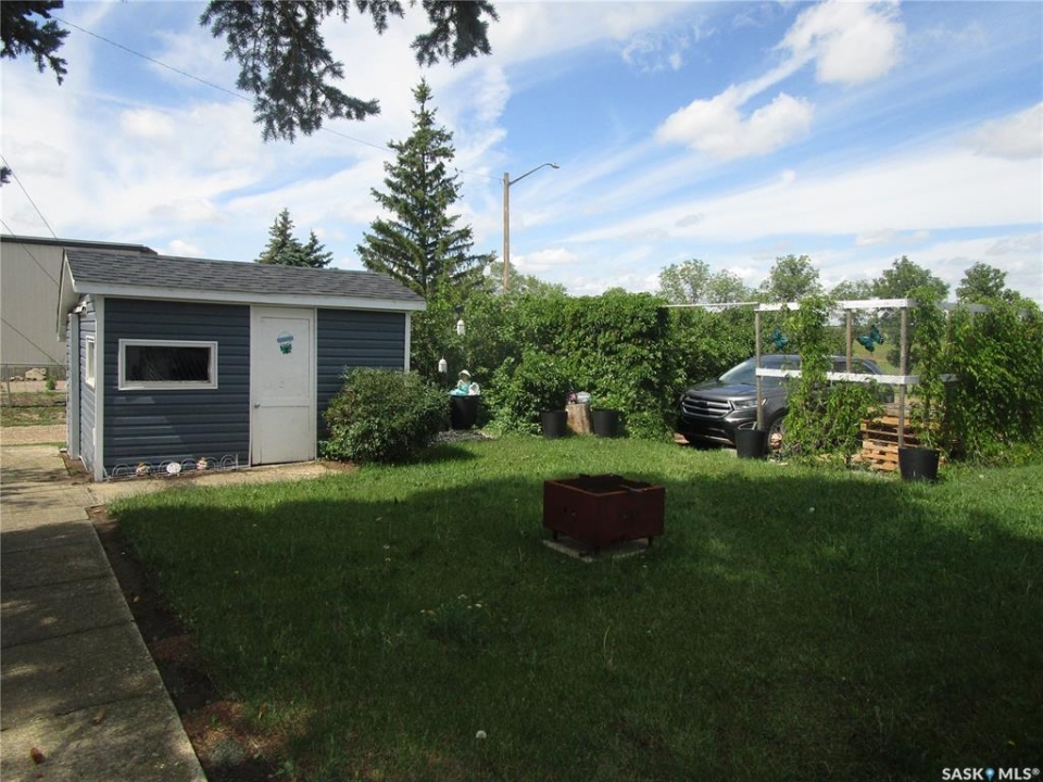 WELCOME TO 100 BELL RD. ASSINIBOIA , SASKATCHEWAN. This Property is wonderfully located on the corner and near the end of town. Looking out from your deck you can breath in fresh air and see the wide open spaces, with no homes to get in your way. Really relax and unwind as you enjoy your morning coffee or the lovely warm evenings of summer. Because of the corner location there is parking at the front and at the side. Building a garage is a possibility on this corner lot.. Entering thru the back porch you will be invited in by the attractive, open dining and kitchen area. Honestly, you just feel at home with the soft colors .The patio doors that lead on to the deck, the built in china cabinet, u shaped counter tops with window facing the back yard and with so much room and so many cabinets. One of my favorite features is the rounded doorways between the kitchen and living room and another at the front door closet. The living room encourages relaxation with the natural gas fireplace to warm you and adds ambiance to this sitting area. Some Updated windows, shingles, flooring and so much more. The bedrooms are spacious with lots of closet space.. There are 2 more bedrooms downstairs. A 3 piece bath , work area, storage and laundry plus a family room . A lovely property to call HOME!