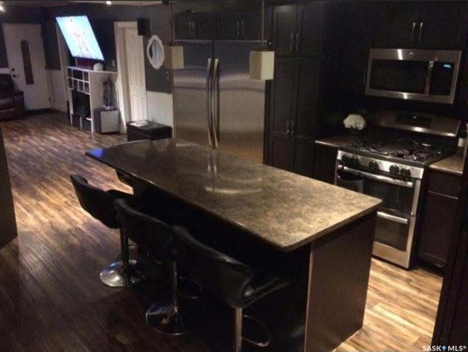 Welcome to this beautifully renovated home in the friendly village of Edam, where small-town charm and modern living come together. From the moment you arrive, the white picket fence and fully fenced yard create a warm first impression, while the open-concept design and updates throughout make this property truly move-in ready. Nearly everything has been redone from top to bottom, including a high-efficiency furnace and electric water heater that are each about six years old, and shingles that are approximately ten years old. The vinyl siding and nearly all new windows provide long-lasting durability and curb appeal, while inside the kitchen shines with a complete renovation, slam-proof cabinetry, a massive half-fridge/half-freezer unit, and a gas stove. Main floor laundry adds convenience, and the spacious mudroom at the back entry is perfect for everyday living. The home offers two bedrooms on the main floor and an additional bedroom in the basement, along with a stunning bathroom renovation featuring beautiful tile work, a huge tub, and a separate tiled shower. The property is also equipped with an updated pressure system for reliable water service for many years to come. Outside, you'll find a massive back deck for entertaining or relaxing, a fire pit area, RV parking, vinyl fencing, and two modern plastic sheds for extra storage. With its blend of modern upgrades and the welcoming atmosphere of Edam, a village known for its peaceful pace, prairie setting, and strong community spirit, this home is the perfect place to put down your roots. Book your viewing today!