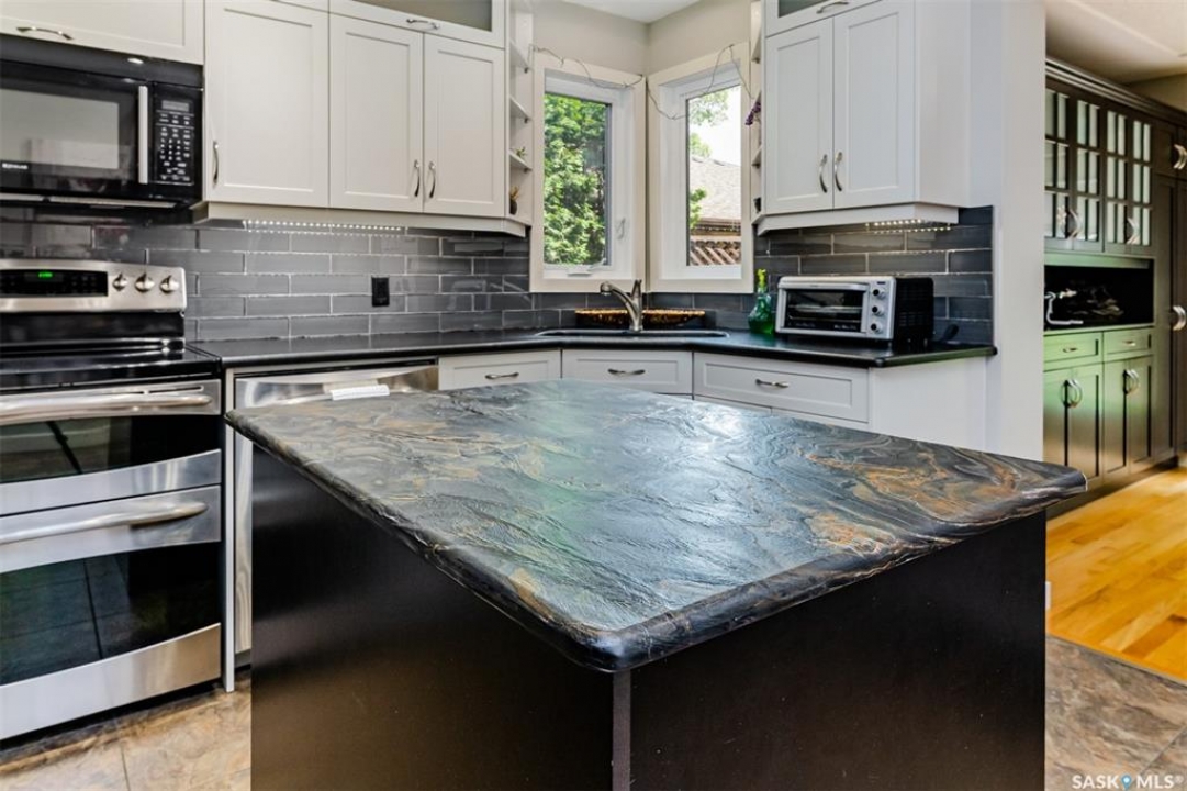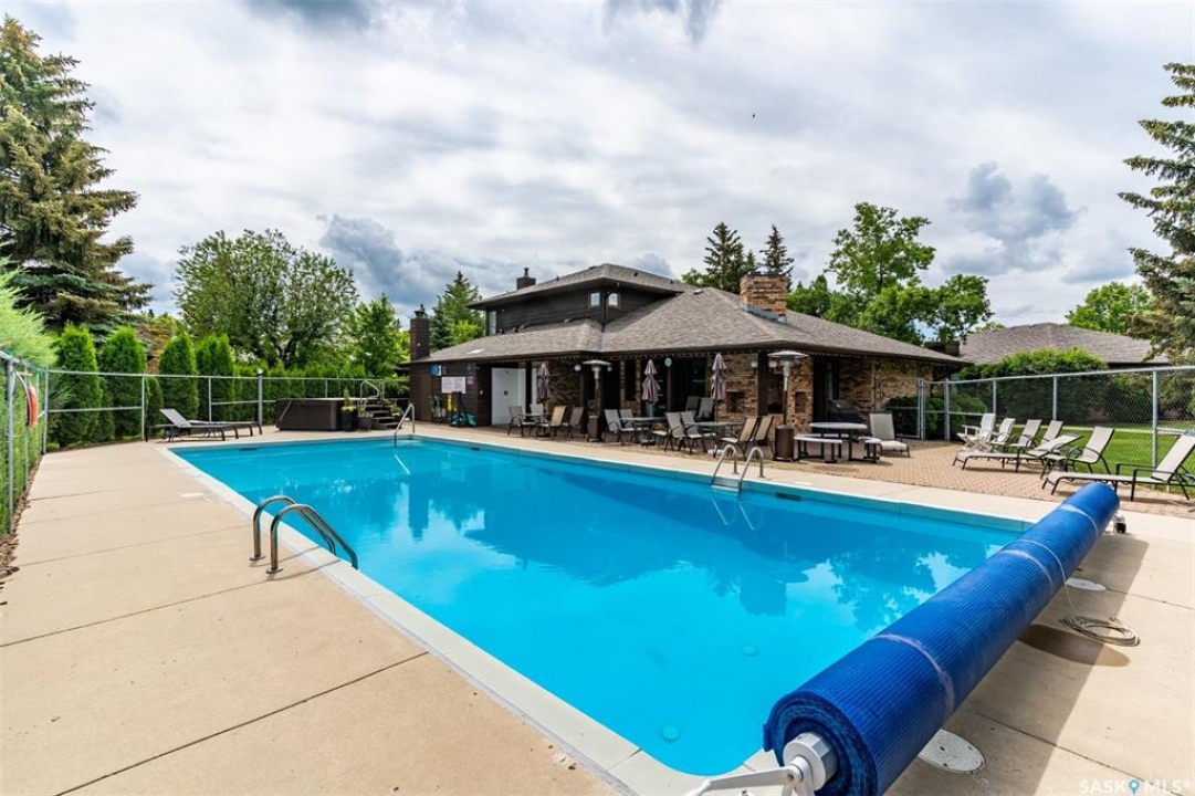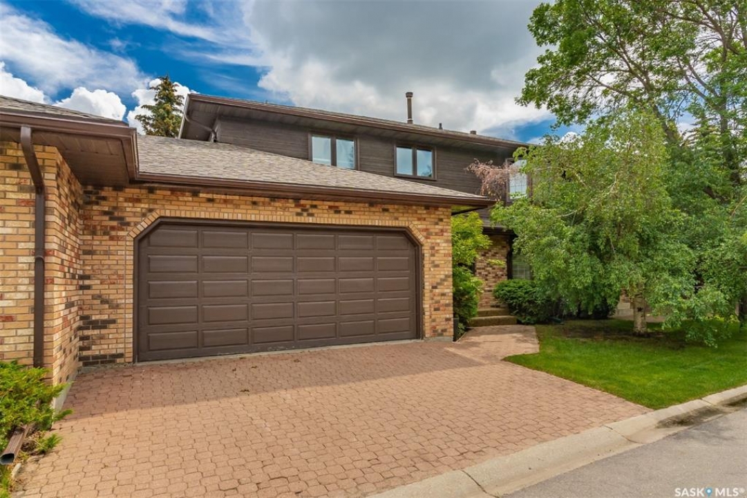Welcome to one of Saskatoons finest condominium developments- Heritage Estates. This 1795 sq.ft, two story townhouse has had numerous upgrades including a stunning kitchen complete with leather looking countertops and island with gorgeous countertop. During the renovations they also added in a built in hutch in dining nook area. There is a gas FP in living room that compliments both dining and living room area. Garden doors off nook to rear interlocking brick patio and grassed area with the pool and clubhouse access nearby. The home offers 2 bedrooms plus a den that overlooks the main floor front entry (potentially could be a 3rd bedroom)on the 2nd floor. The Master bedroom offers 3 closets as well as a 4 piece ensuite consisting of double sinks in vanity, toilet plus a large soaker tub. The 2nd bedrooms is also a good size with double closet. The main floor also offers a 2 piece bath/laundry combination room. This home has had numerous upgrades including the triple pane LowE argon PVC windows and a upgraded water heater. The double attached garage is finished and offers direct entry (inside dimensions are 23' deep by 20' wide). The lower level has approx 9' high ceilings and is open for your own personal development. Condo fees are set at $578/month (Professionally managed) which includes common insurance & maintenance, snow removal for driveway and sidewalk and roadway within complex, lawn care, garbage & reserve fund. This development has recently had all roofs within the redone. Not only will you appreciate the luxury living space, you can immerse yourself into the community offered within this long standing condo complex. They have a variety of weekly events with a Thursday Happy hour, pickle ball, coffee gatherings and plenty of card games. You will be able to enjoy the outdoor pool, and recreation center and tennis courts that also serve as pickle ball courts. Taxes for 2024 $4111. For more information on this outstanding home contact your agent to view.