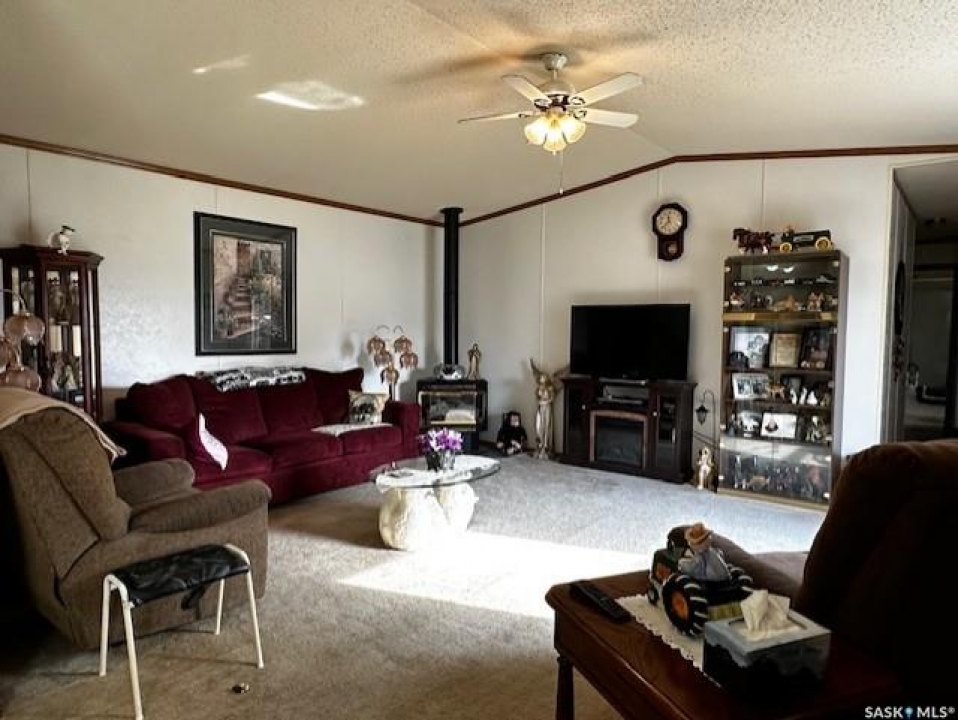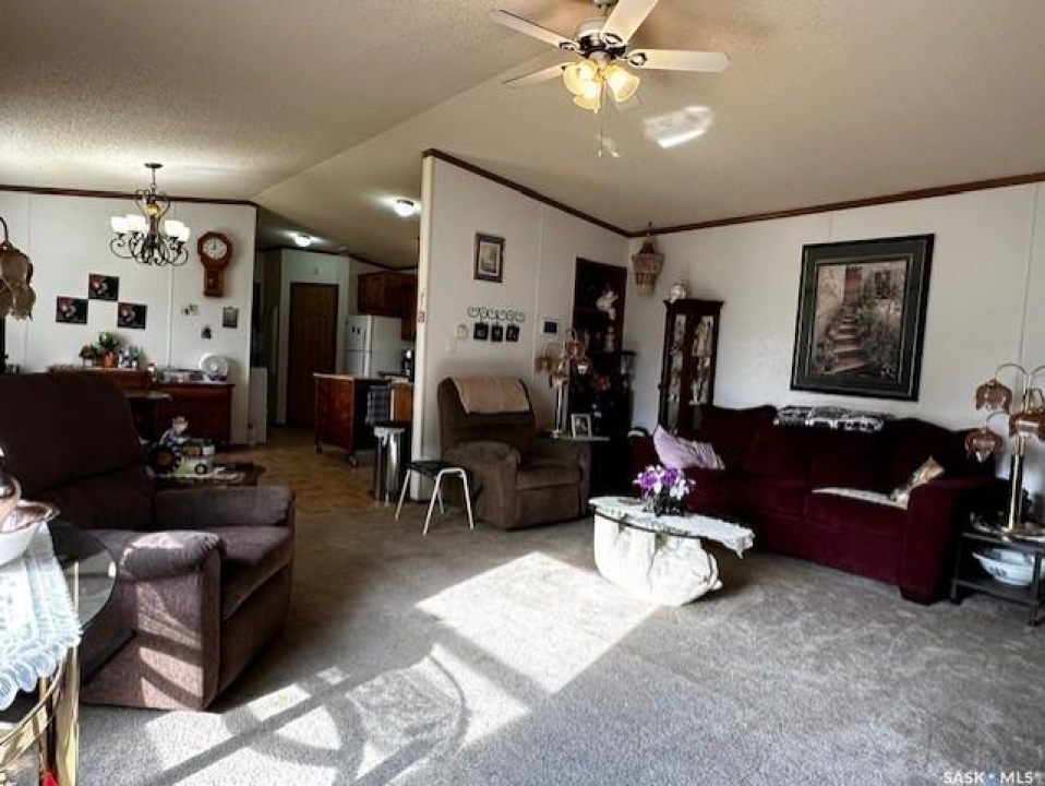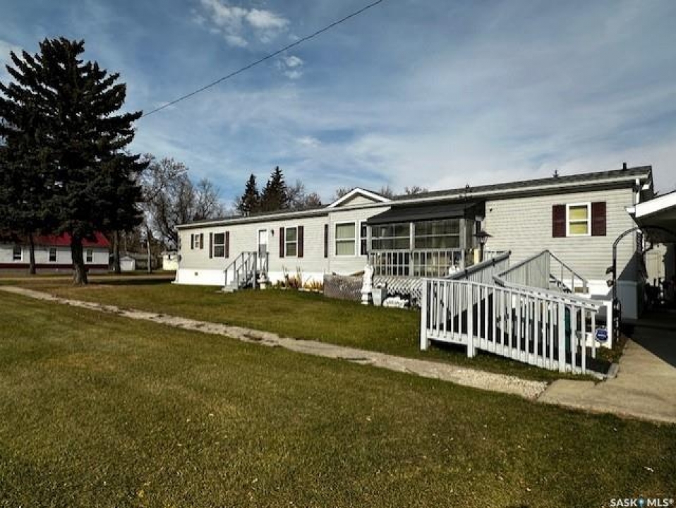 Nestled in the peaceful community of Neudorf, Saskatchewan, at 215 Louis Street, this 1,440 sq ft modular home, built in 2009, sits on a titled lot. The home features three bedrooms, including a spacious master suite with a walk-in closet, a four-piece en-suite boasting both a shower and jacuzzi tub. Two additional bedrooms are situated at the east end of the home, along with a full bathroom for added convenience. The heart of the home lies in the open-concept kitchen and dining area, ideal for hosting gatherings of any size. A built-in dishwasher makes cleanup a breeze, and the pantry, equipped with custom shelving and drawers, ensures plenty of storage. The vaulted ceiling flows seamlessly into the living room, enhancing the open feel throughout. Additional features include a ramp that makes the home easily accessible, a laundry room that houses the water heater and electric forced-air furnace, and central air conditioning for year-round comfort. The property also features a double detached garage, equipped with power-operated doors, and a welcoming front deck. Practical upgrades include a natural gas stove (2023), heated water lines, vinyl-insulated skirting, 200-amp electrical service, and shingles in September 2014. This home offers both comfort and convenience in a community setting.