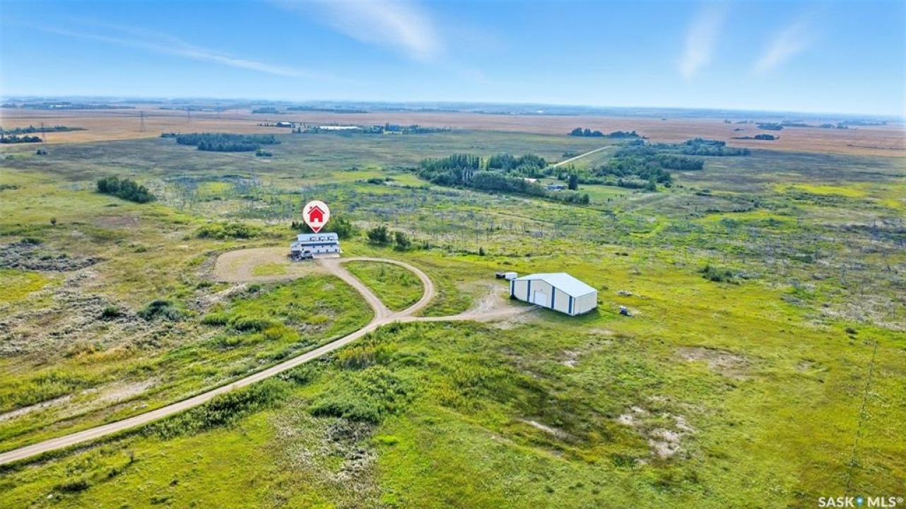 This 80-acre property, located just 5 km from Saskatoon and directly off a paved road, offers a rare combination of privacy, prime location, and future development potential. Providing the perfect balance of seclusion and convenience, it is tucked away from surrounding properties, among the desirable Hidden Ridge Estates acreages. The property features a Carriage house, 1232 sq. ft. residence with an open-concept, loft-style design. The three-car (24'x36')heated garage also serves as utility room for drip system holding tank, HWT and connects to an indoor kennel and dog run. There is a spacious mudroom, 2 pc bathroom and office/laundry on the ground floor. The second floor features an open concept kitchen/ dining room and spacious living room with great views of the property. The primary bedroom has lots of space for another work space. In the evening, the Saskatoon city lights provide a spectacular view of the western sky. Additionally, there is a 40' x 80' shop divided into 3 sections. The center section is fully equipped with in-floor heating, power and roughed in plumbing and two side storage sections are used for cold storage, providing ample space for business operations, hobbies, or equipment storage. The property also has perimeter fencing. Zoned D-Agricultural District (DAG1), this parcel benefits from low taxes and offers a variety of discretionary uses, including residential, livestock, equestrian, bed and breakfast or a home-based business. The property also has potential for subdivision and development within the P4G planning district. The zoning allows for multi-parcel residential subdivision. This makes it an excellent opportunity for developers or use as a potential investment for future resale. This acreage combines a private, peaceful setting with easy access to urban amenities. Call today
