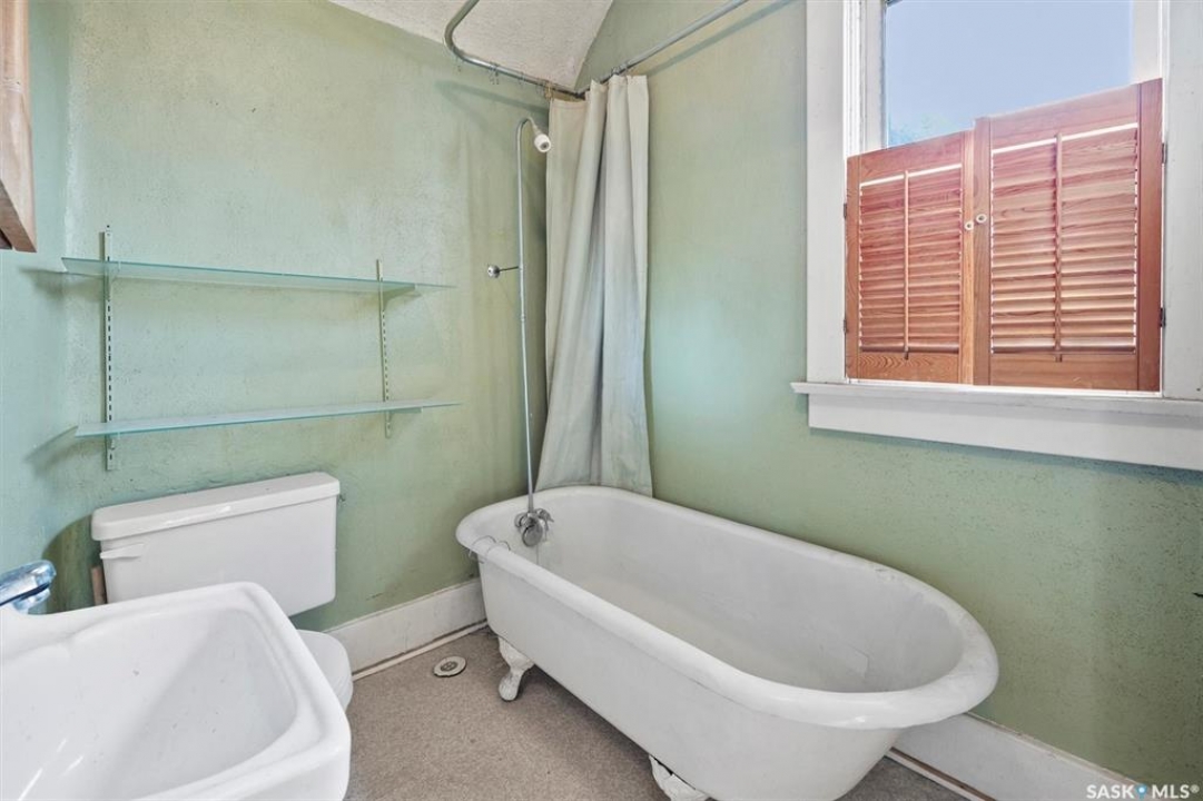 Character Home on Double Lot in Hudson Bay Park – Endless Potential! Step into history with this charming 1912-built two-story home nestled in the peaceful Hudson Bay Park neighbourhood of Saskatoon. Set on a spacious double lot, this property offers the perfect canvas for your renovation dreams. Property Features: 3 cozy bedrooms upstairs 1 full bathroom featuring a classic clawfoot tub Gleaming original hardwood floors throughout Detached 2-car garage for ample storage and parking Generous yard space with room to expand, garden, or entertain. Whether you're a seasoned renovator or a first-time buyer with a vision, this home invites you to add your personal touch and restore its timeless character. Surrounded by mature trees and located on a quiet street, you'll enjoy the serenity of Hudson Bay Park while being just minutes from downtown, schools, and amenities. Bring your creativity and make this heritage gem your own!