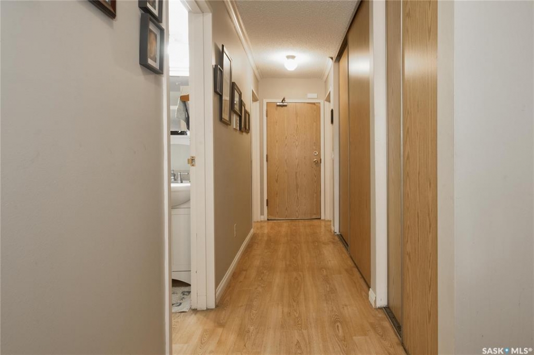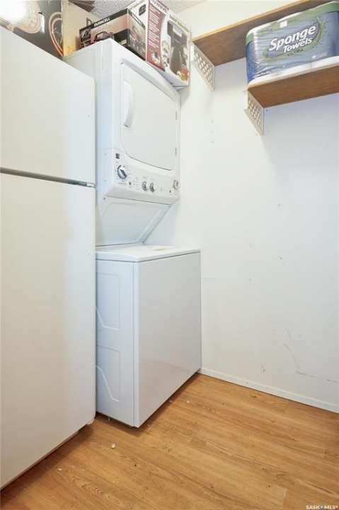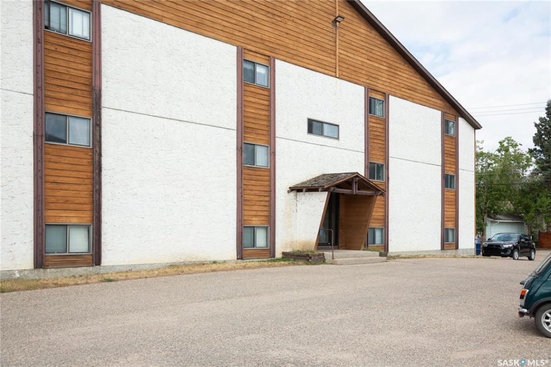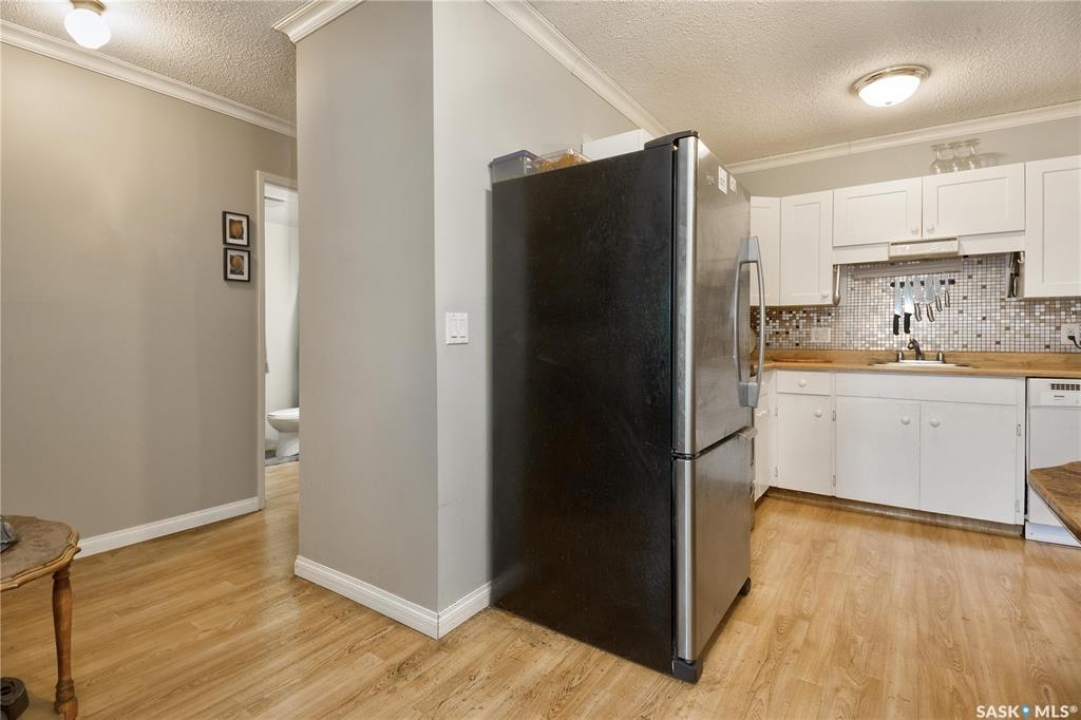 Cute and affordable 1 bedroom, 1 bath condo in Midtown. This attractive unit offers an open kitchen, dining and living room design and ground level walkout to a spacious concrete patio which is great for hauling in groceries or using as a separate entrance. Some notable upgrades include new crown moulding and upper cupboards. Large closets, lots of room for storage and in suite laundry. Newer stainless steel fridge and stove plus an extra fridge. Conveniently located close to cornerstone shopping centre amenities and the new University.
