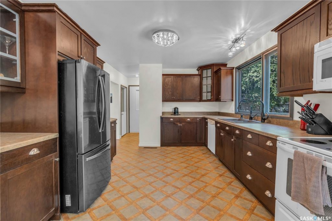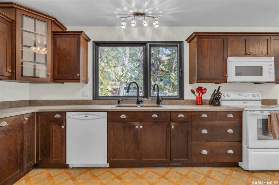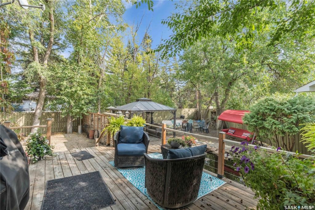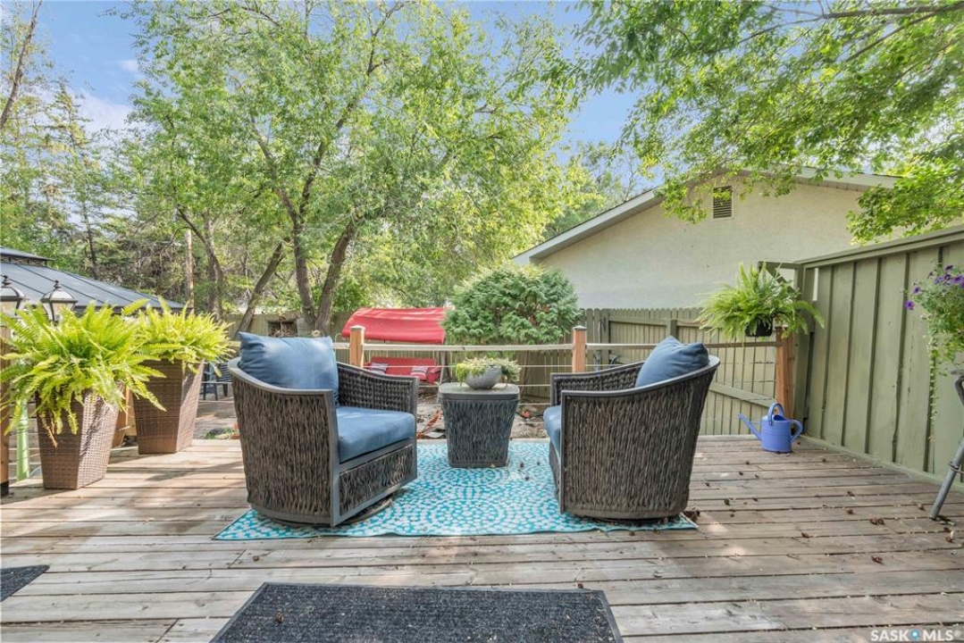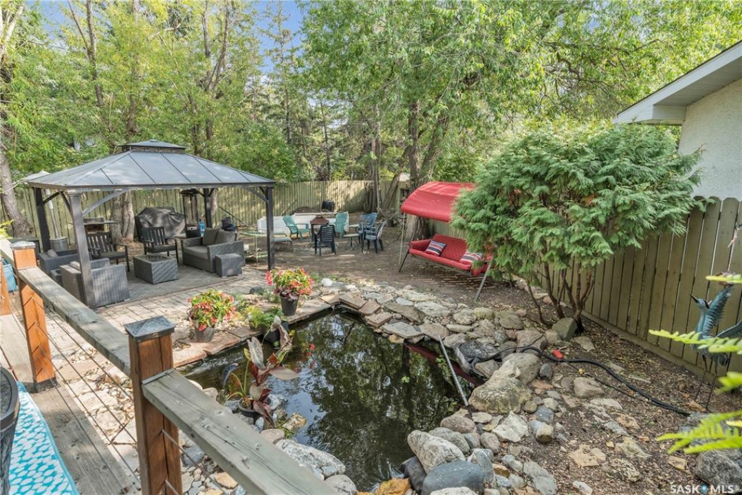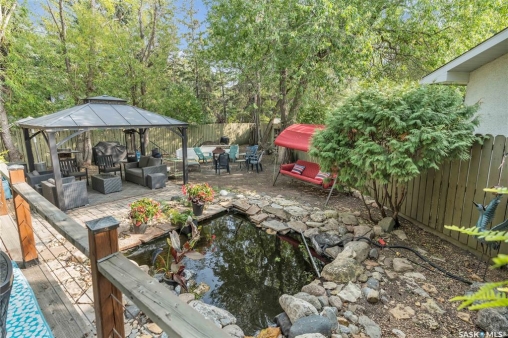 Welcome to 275 Logan Crescent—a bright, two-storey family home tucked away on a peaceful cul-de-sac in Whitmore Park. At 1,440 sq ft, this second owner of 33 years, offers four generous bedrooms and two baths, perfect for growing families or anyone craving extra space and comfort in a mature neighbourhood. The sunlit main floor welcomes you with oversized windows accentuating gleaming hardwood floors in the living room. Prepare meals and memories in the bright, updated kitchen featuring abundant cabinetry, a generous dining area, and patio doors to the deck overlooking your private outdoor oasis. A half-bath completes this level. Outside, the sprawling 7200 sq ft, fully enclosed, private yard is designed for fun and relaxation. Kids will love the open play areas, while adults can unwind around the fire pit, relax in the gazebo with morning coffee, or enjoy the tranquil live fish pond—ideal for summer gatherings under the stars. Upstairs, four well-appointed bedrooms surround a bright 4-piece bathroom. One bedroom is currently configured as a home office, offering flexibility for remote work or study. Downstairs, the finished basement features a spacious rec room—great for movie nights or kids' play space, a custom wine cellar, proudly featured in Home & Garden magazine and a large laundry/utility room with extra storage The single-attached garage provides even more storage, and the south Regina location keeps you close to schools, parks, the University of Regina, shopping and dining. Don't miss your chance to make this house your next home—schedule a private tour today and experience everything this exceptional property has to offer! Please note some photos have been virtually staged.