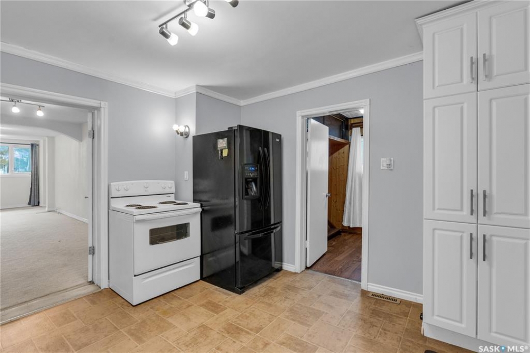 Excellent starter home or revenue property in the Al Ritchie/Broders Annex Neighbourhood. Steps away from schools, the Al Ritchie arena and playground. Neat and clean 3 bedroom bungalow features a bright open living room and dining area. The upgraded modern kitchen whas tons of cabinet space and pull out pot drawers. 3 good sized bedrooms and 2 full bathrooms! House is in a partial crawl space with two access points. Private backyard with patio area and single detached garage. Don't miss out on this great home!