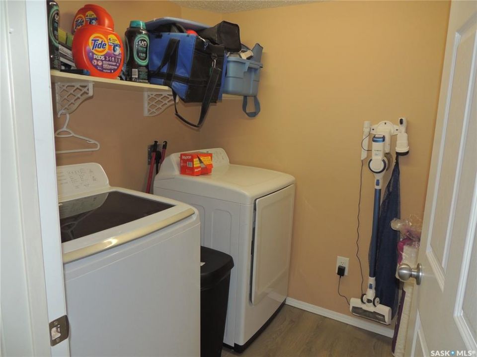 This condo is in a great part of town located on Henry st. The unit is on the second floor and faces South. The building has had the shingles replaced in 2025. The unit has had new laminate flooring throughout. The open kitchen living room floor plan has access to the balcony. There is storage on the balcony. There are two bedrooms and a full bathroom. The unit has in suite laundry with a separate laundry storage room. This unit has under building heated parking.