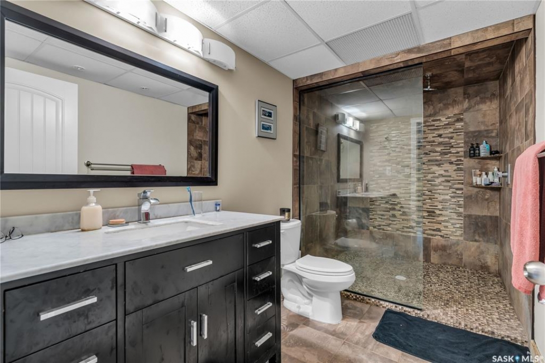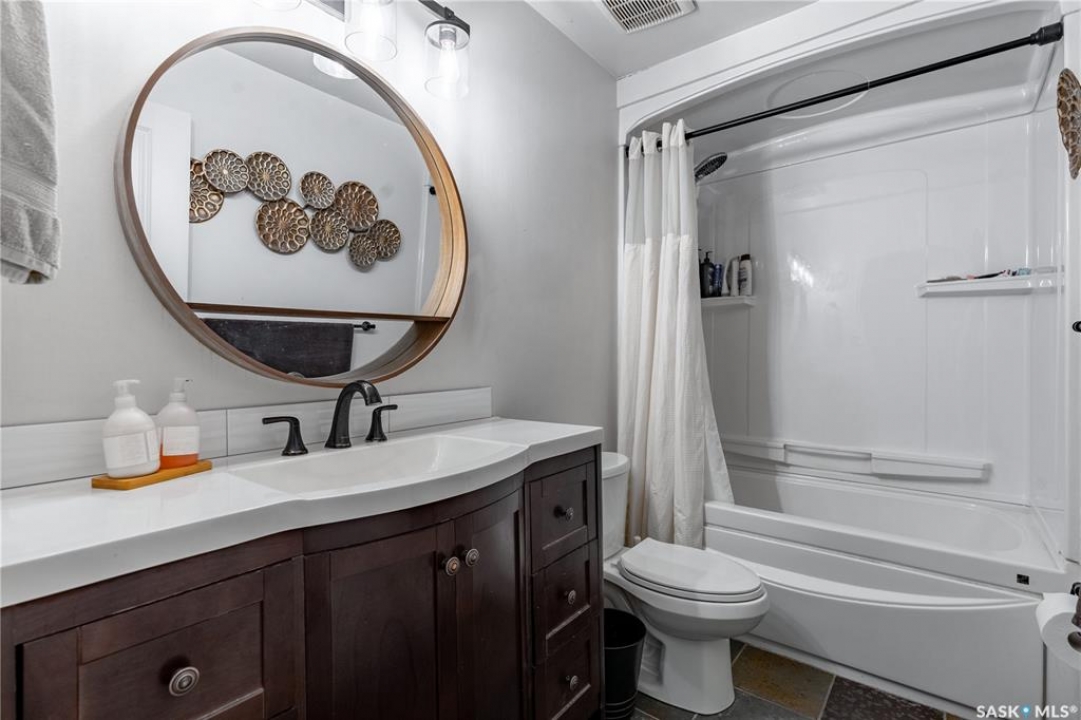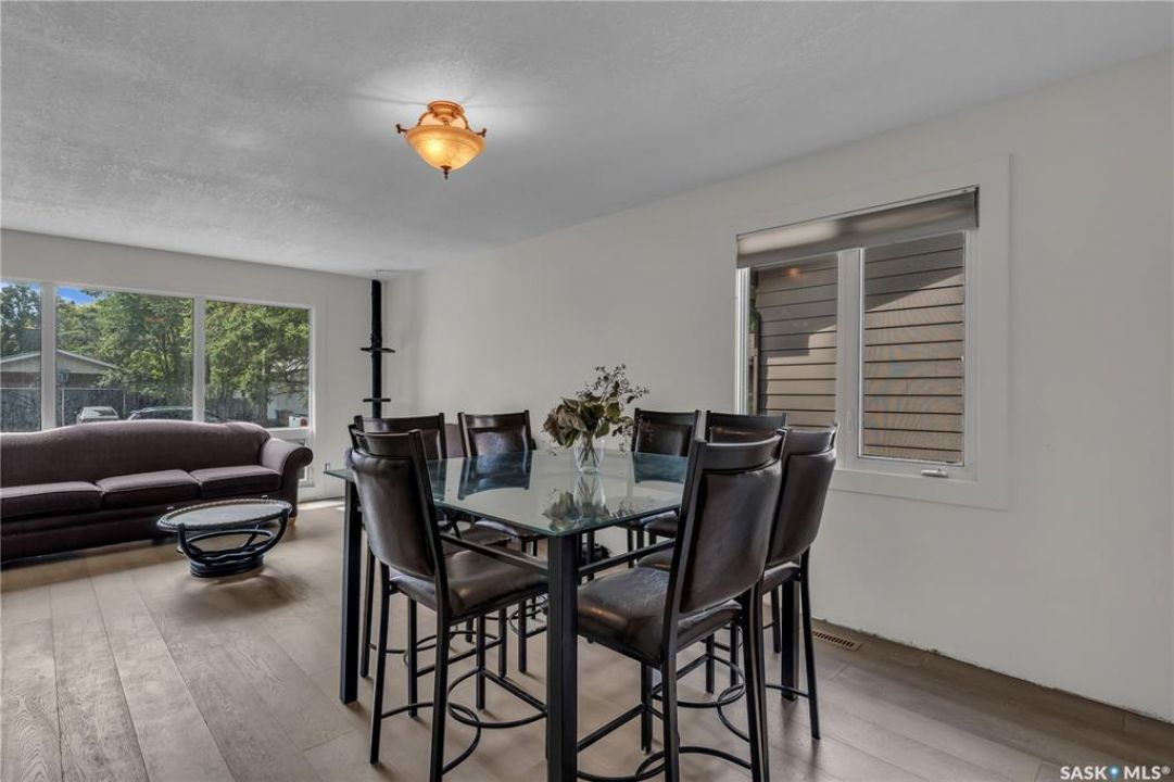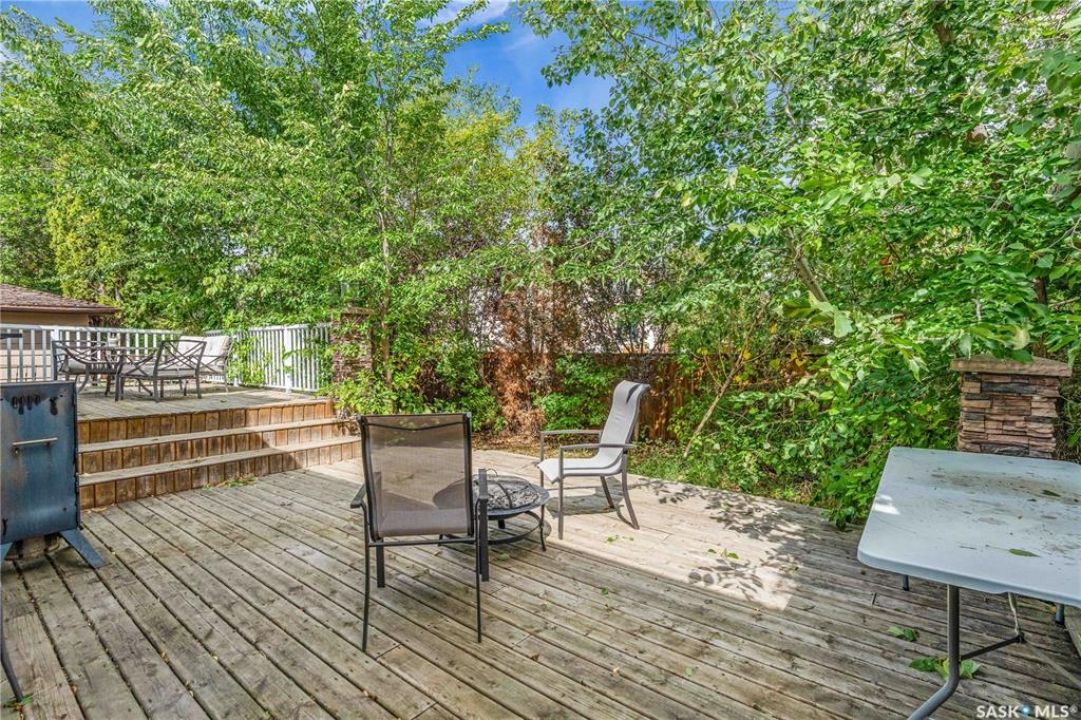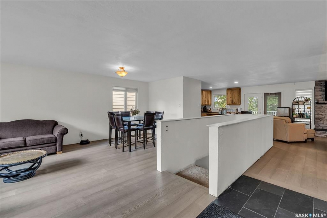 Welcome to this fantastic 1500 sq. ft. family home in highly desirable University Park, featuring many nice updates throughout. The main level is bright and inviting, boasting a very open concept layout ideal for modern family living and entertaining. Gleaming white oak hardwood floors flow throughout this space, connecting seamlessly with the beautifully updated kitchen, which serves as the heart of the home. Upstairs, you will find two spacious bedrooms and a primary suite that features a massive walk-in closet. This versatile space was originally a third bedroom and can easily be converted back, creating a functional three-bedroom-up layout if desired. The fully developed basement nearly doubles your living space, offering two additional large bedrooms, a recreation area, and a stunning, completely renovated bathroom with a custom tile shower and durable slate flooring. Enjoy the convenience of a double attached garage, complete with a 220v plug. The exterior includes a large yard and deck, ideal for enjoying our Saskatchewan summers. Situated on a quiet street, this home is just steps away from two great schools and offers quick access to all east end amenities.