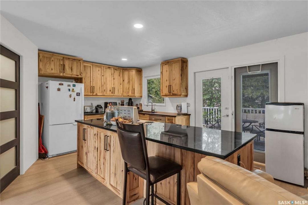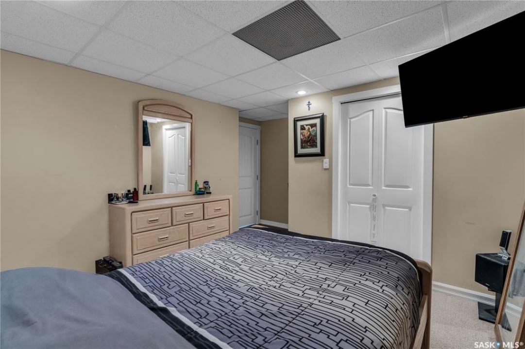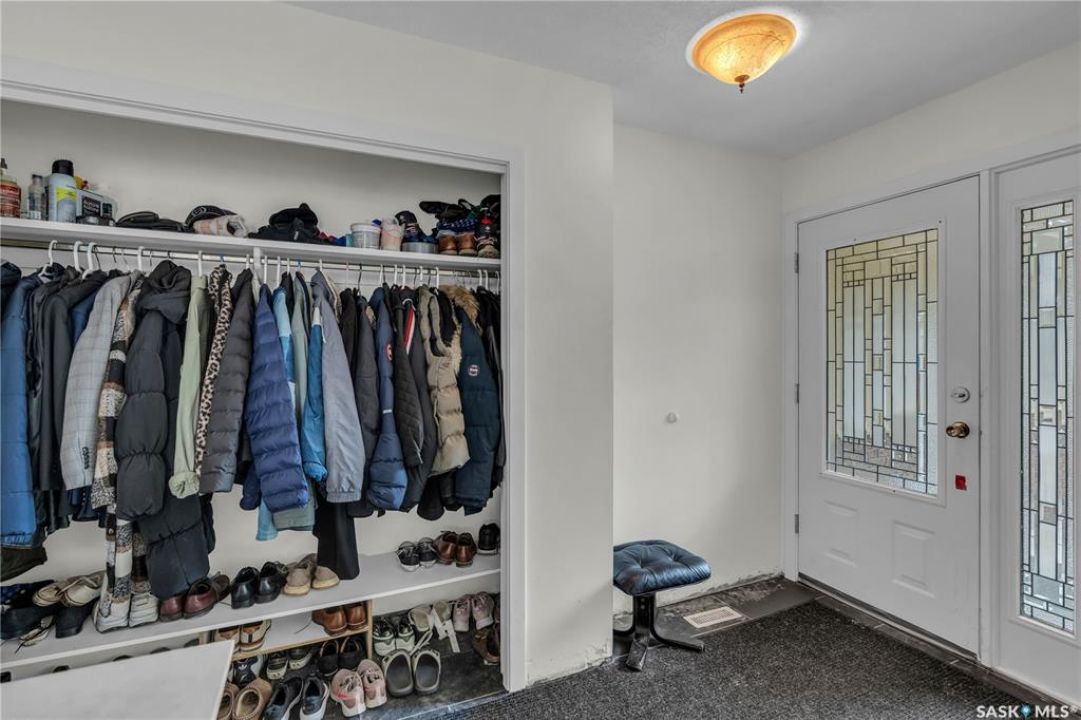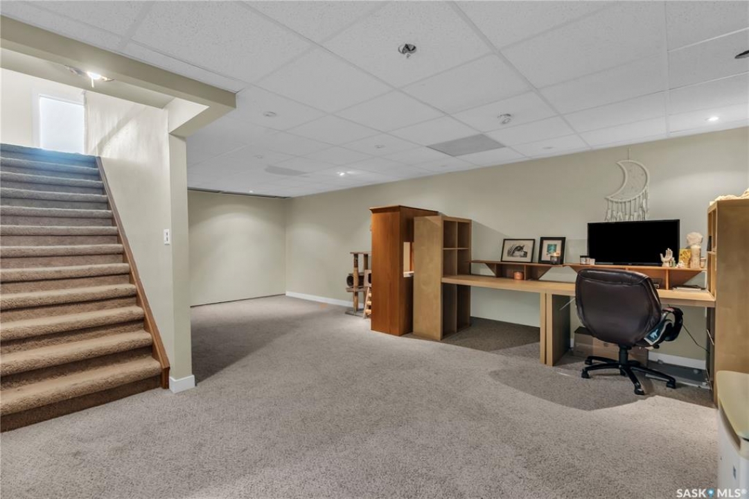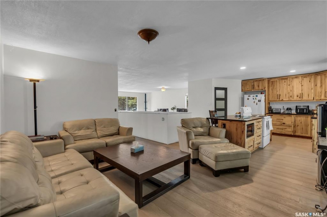 Welcome to this fantastic 1500 sq. ft. family home in highly desirable University Park, featuring many nice updates throughout. The main level is bright and inviting, boasting a very open concept layout ideal for modern family living and entertaining. Gleaming white oak hardwood floors flow throughout this space, connecting seamlessly with the beautifully updated kitchen, which serves as the heart of the home. Upstairs, you will find two spacious bedrooms and a primary suite that features a massive walk-in closet. This versatile space was originally a third bedroom and can easily be converted back, creating a functional three-bedroom-up layout if desired. The fully developed basement nearly doubles your living space, offering two additional large bedrooms, a recreation area, and a stunning, completely renovated bathroom with a custom tile shower and durable slate flooring. Enjoy the convenience of a double attached garage, complete with a 220v plug. The exterior includes a large yard and deck, ideal for enjoying our Saskatchewan summers. Situated on a quiet street, this home is just steps away from two great schools and offers quick access to all east end amenities.
