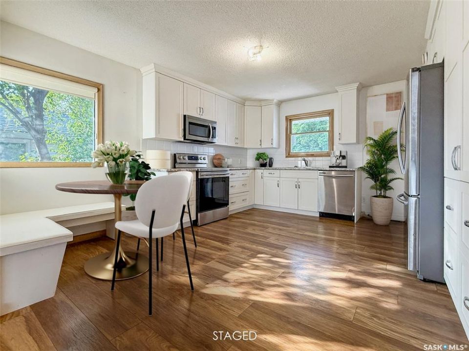 Nestled on the esteemed North Hill Drive, this property stands out in a highly coveted location. Homes here rarely enter the market, making this a unique opportunity to secure a residence that can be personalized to your liking. The property, with its southern exposure, benefits from abundant natural light throughout. Upon entry, you'll find a generously sized front living room. Adjacent to this space is a renovated kitchen, featuring sleek white cabinetry, stainless steel appliances, and a built-in dinette area. This flexible space can accommodate a dining table or be adapted to suit your dining preferences. The main level includes two large bedrooms and a spacious four-piece bathroom. Descend the stairs to discover a versatile area that can serve as an additional living space or a secondary income suite. At the base of the stairs, you'll find a utility area with shared laundry facilities, a three-piece bathroom, storage room, and a full kitchen equipped with a fridge, stove, and eating area. The lower level also features a sizeable living room with three large windows and a bedroom with two additional windows. The home is heated by a high-efficiency, forced air natural gas furnace, complemented by some baseboard heaters. It boasts two separate electric panels, facilitating independent electrical billing for the main home and potential tenant. Additional features include an air exchanger, power-vented water heater, and large windows on both levels. Outside, the property offers a single-car garage, back deck, and a large, mature backyard with ample green space, fire pit, pond and trees, all fully fenced with a spacious driveway. Enjoy the convenience of being directly across from a desirable park, skating rink, walking paths, and the river, as well as within walking distance to local schools serving kindergarten through grade 12. Call today for more infotmation!