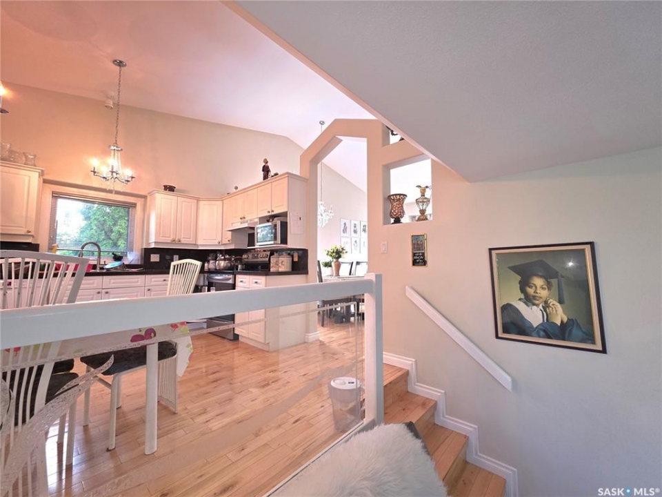 2-storey split located in Briarwood. This home features vaulted ceilings over the kitchen, dining room, and living room, as well as a large family room with a gas fireplace, a main floor den, and laundry. The large basement games room, with a vast storage area, provides ample space for your needs, ensuring a sense of security and organization—hardwood flooring throughout the main and upper levels. Enjoy the outdoors with this beautiful covered deck, featuring a newer furnace, water heater, and kitchen appliances.