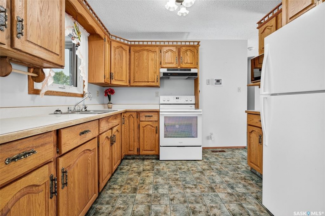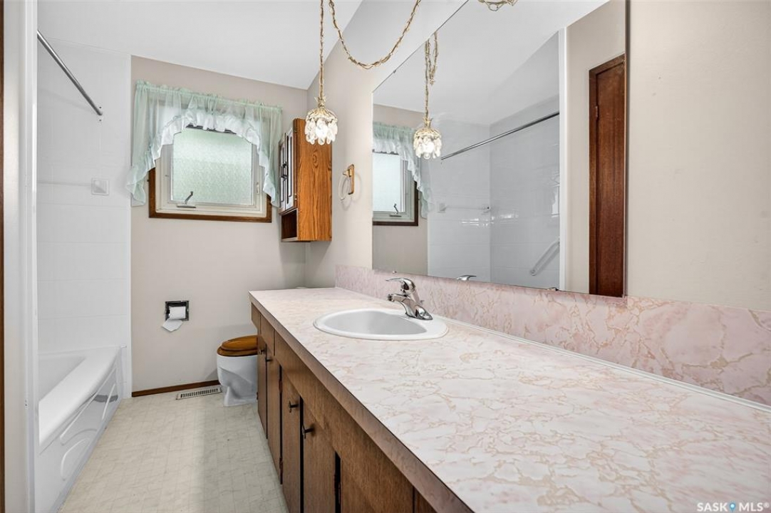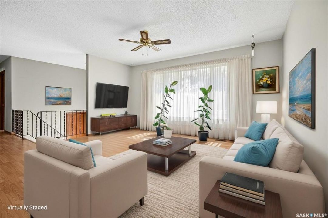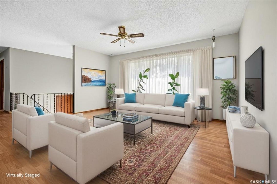 This well-cared-for 1970s bi-level has been lovingly maintained by the same owner since it was built – a rare find that truly showcases pride of ownership inside and out. Featuring updated triple-pane PVC windows, fiberglass shingles, and durable vinyl siding with aluminum soffit, fascia, and troughing, this home offers peace of mind with quality upgrades already in place. The driveway is finished with recycled rubber, adding both function and curb appeal. Step inside to a bright living room, a functional kitchen with linoleum flooring (appliances included), and a dining area that leads to the enclosed sun room for added living space perfect for entertaining or relaxing while overlooking the landscaped backyard. The main level includes two comfortable bedrooms with carpet and a four-piece bathroom featuring a Bathfitter tub, storage closet, and lino. Downstairs you'll find a spacious family room with wood wall paneling, built-in bar shelving, and an additional three-piece bathroom with a stand-up shower. A third bedroom, large laundry room with soft water system, complete the lower level. Outside, the backyard offers both green space and privacy with PVC and wood fencing. The single garage (27.5 x 18) provides room for parking plus a work area, and includes an automatic garage door opener. Additional features include: • Central air conditioning • Composite deck & covered sunroom area • Updated triple-pane PVC windows throughout • Pride of ownership – one owner since new! If you're looking for a home that has been carefully maintained and thoughtfully updated by the original owner, this property is ready to welcome its next chapter. *please not some photos are digitally staged and ultered.