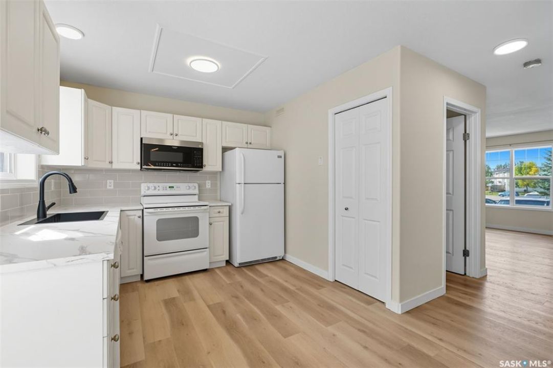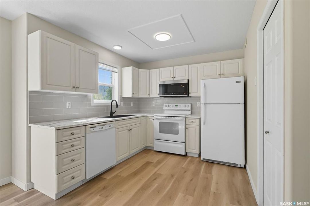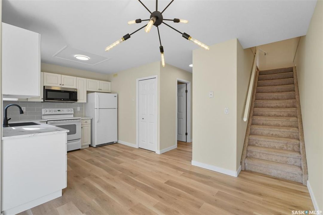 Welcome to Lakeside Chateau Townhouse! Well kept and renovated 3 Bedroom, 2 Bathroom, fully developed basement, quiet corner Unit with large green space and close to street parking! It comes with 2 parking stalls. Basement is fully finished with a spacious family room, storage room & laundry in utility room. Recent renovations include fresh paint, brand new flooring on the main, new countertops, new backsplashes, new microwave hood fan, new light fixtures and water heater (2023). This unit would be great for a young family with need for a great basement play/family room or a young professional wanting an extra area to entertain or host a Rider game. Good location, two blocks to Grocery Shopping, Gas, Parks & More, Don't miss out on this one! Call To View Today!
