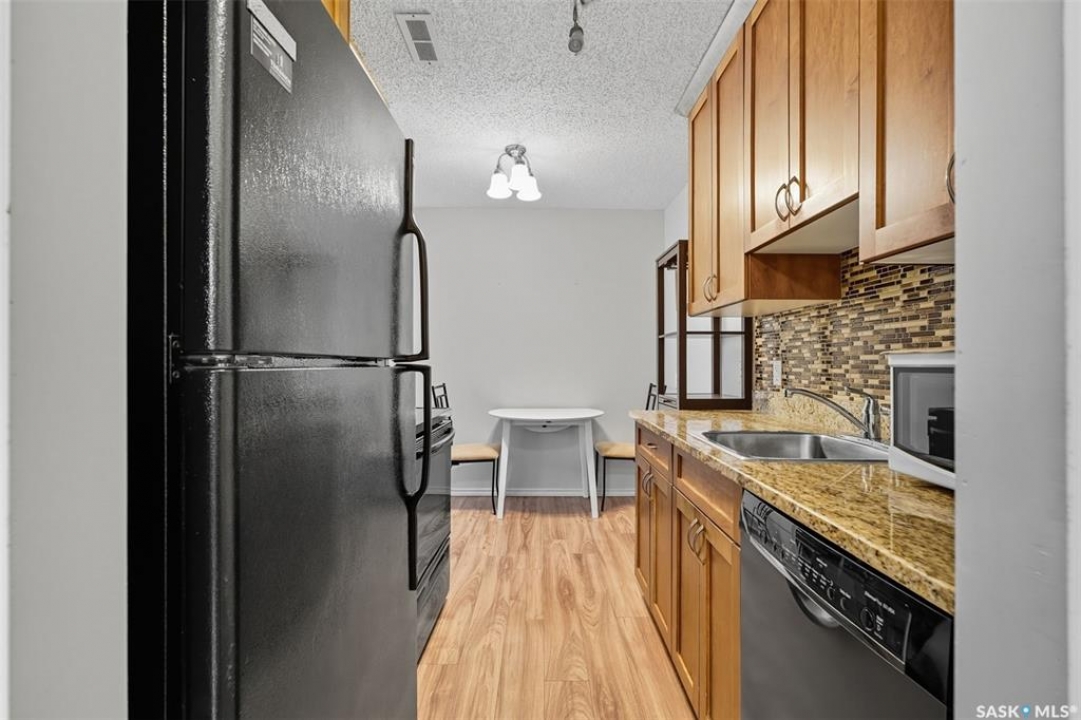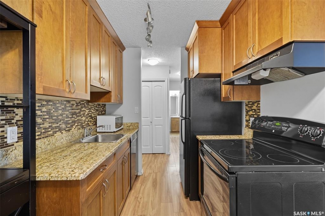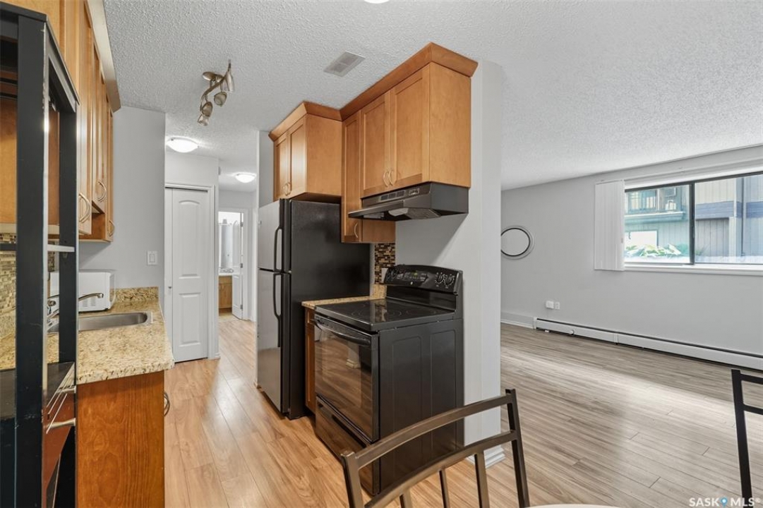 Located on a quiet cul-de-sac close to the river, shopping and amenities, this 1 bedroom condo is move-in ready with laminate flooring throughout, beautiful updated kitchen with maple cabinets and granite counters, spacious living room and bedroom and a full bath with soaker tub. Shared laundry is just down the hall, one exclusive parking stall and some pets allowed with board approval. Affordable living with low condo fees of $310 and includes heat and water! Call to book your showing today - you won't be disappointed!