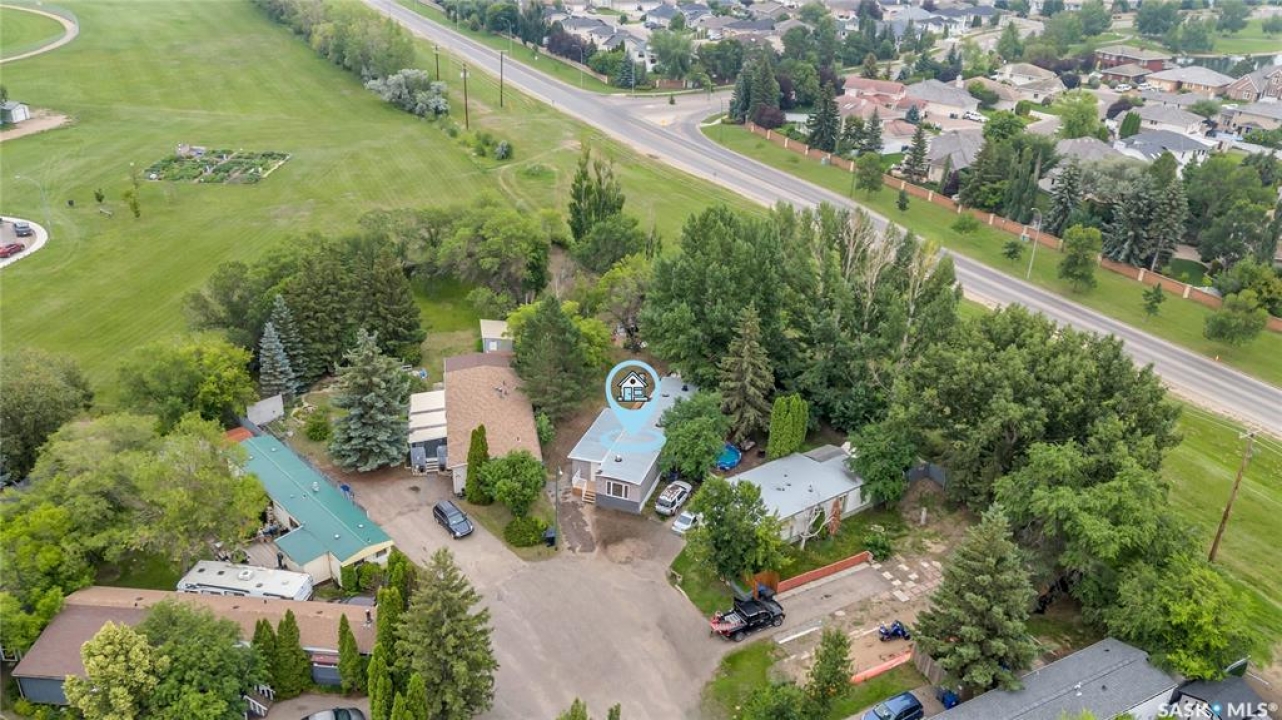 Completely renovated and move-in ready, this stunning mobile home offers over 1,200 square feet of beautifully updated living space on an absolutely massive lot backing green space—an incredible find on the east side of Saskatoon for under $200,000! Located in a quiet, well-kept park, this home features a brand-new furnace, air conditioning, and windows for year-round comfort and efficiency. Step inside to a bright, modern interior showcasing quartz countertops, tile backsplash, soft-close cabinets, stainless steel appliances and pot lights throughout. The open-concept layout is finished with luxury vinyl plank flooring and features an electric fireplace for added charm. Bonus room for extra space for kids or an office. You'll love the dual sinks in the bathroom, the feature wall in the primary bedroom, and the thoughtful touches throughout. Enjoy two new outdoor decks—one in the front and one in the back—perfect for morning coffee or evening entertaining. Lot fees include: water, sewer, snow removal, garbage pick-up, park maintenance and that expansive yard. Whether you're downsizing, buying your first home, or simply looking for turn-key living in a peaceful east-end location, this home delivers exceptional value and style.
