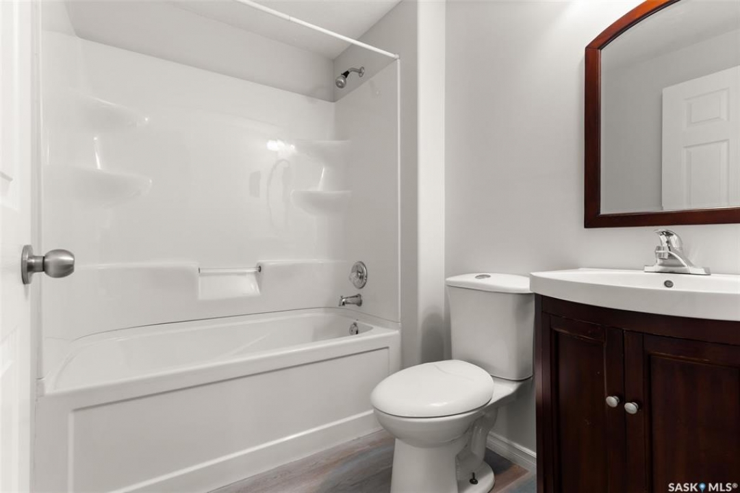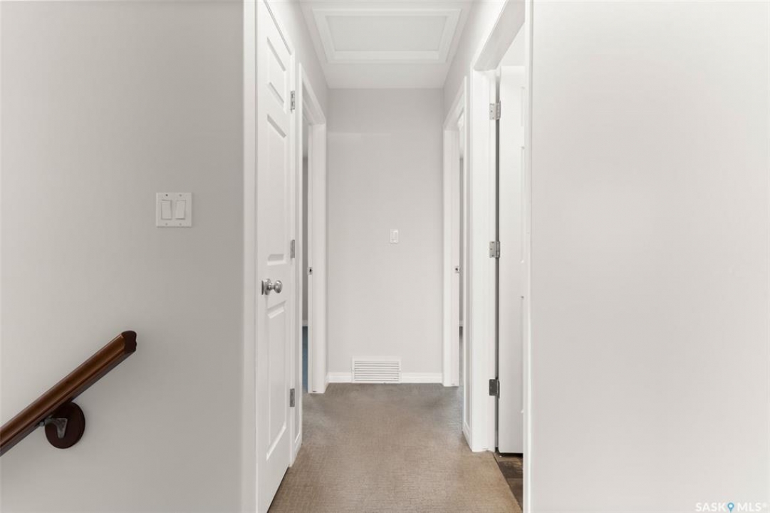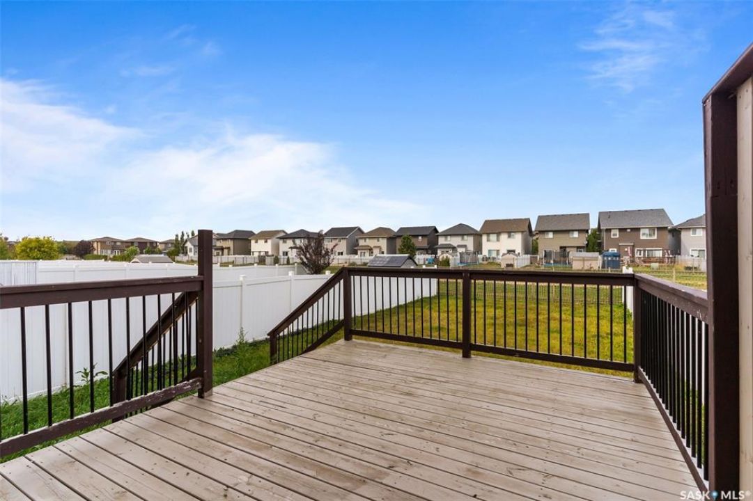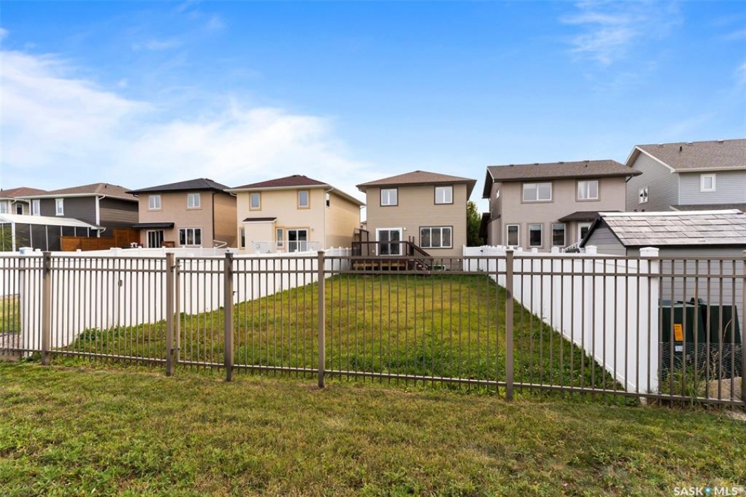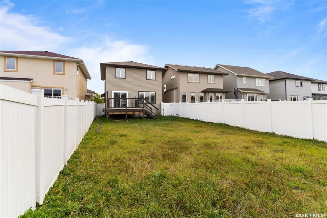 Welcome to 5436 Aerial Crescent, a modern two-storey in the heart of Harbour Landing—one of Regina's most vibrant and family-friendly neighbourhoods. Built in 2012, this 1,439 sq. ft. home impresses with its smart design, 4 bedrooms, 4 bathrooms, and a fully finished basement with separate entry. The main floor is bright and inviting, featuring a spacious living room with large picture windows, an open dining area with garden doors to the deck, and a stylish kitchen showcasing rich wood cabinetry, stainless steel appliances, tiled backsplash, and a walk-in pantry. A convenient powder room and main floor laundry complete this level with everyday functionality. Upstairs, the private primary suite boasts a walk-in closet and 4-piece ensuite, accompanied by two additional bedrooms and a full bath. The lower level expands your living space with a versatile rec room, a wet bar, a fourth bedroom, and a full bath—ideal for guests, teens, or potential suite options. Step outside to a fully fenced yard that backs onto expansive green space—perfect for kids, pets, and backyard gatherings. A spacious deck makes summer entertaining a breeze, while the double attached garage and exposed aggregate driveway add both curb appeal and extra parking. With central air, updated vinyl plank flooring, included appliances, and a location close to schools, parks, shopping, and all Harbour Landing amenities, this home checks all the boxes. Move-in ready and waiting for you to enjoy!