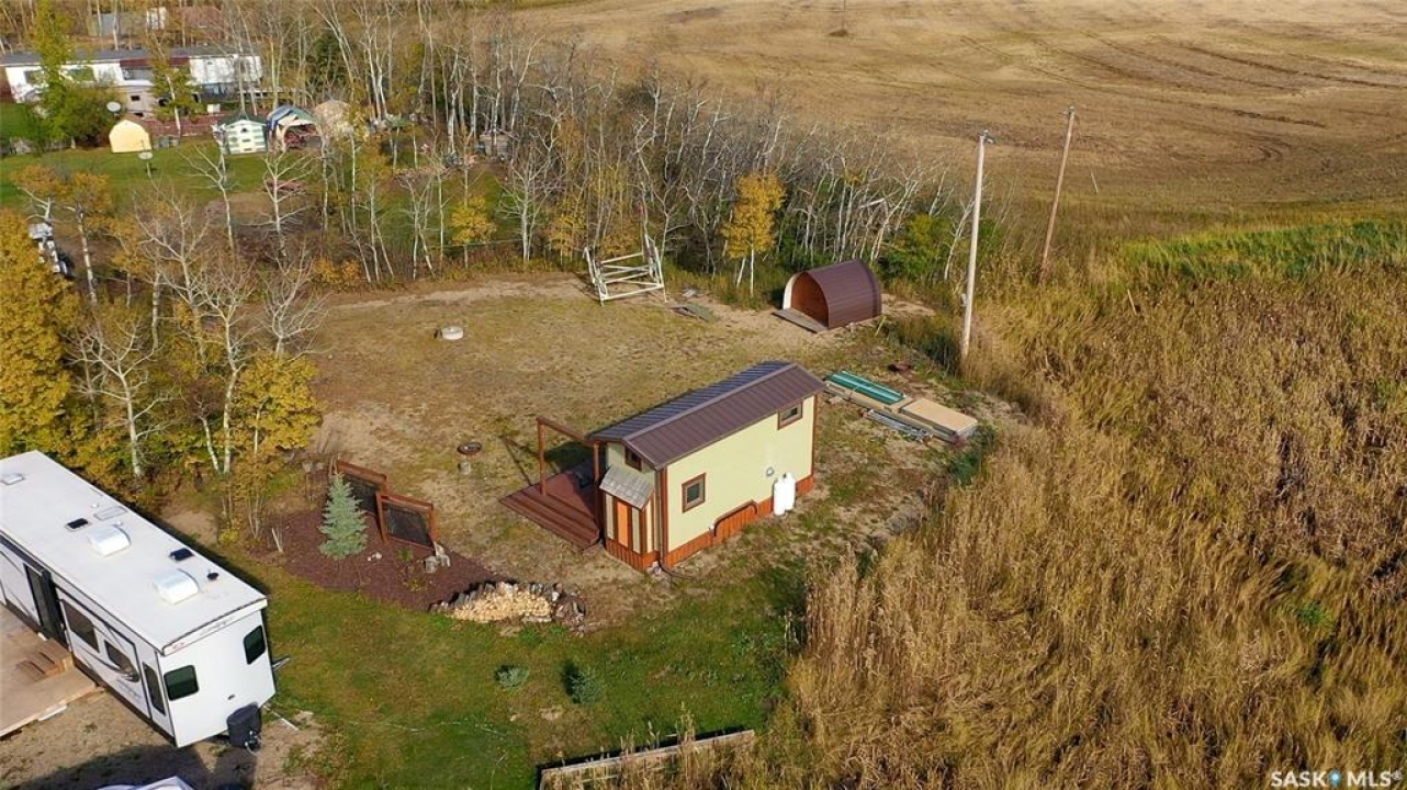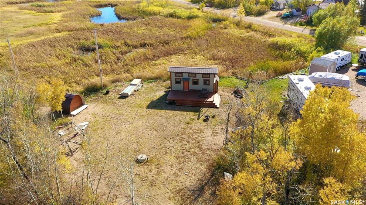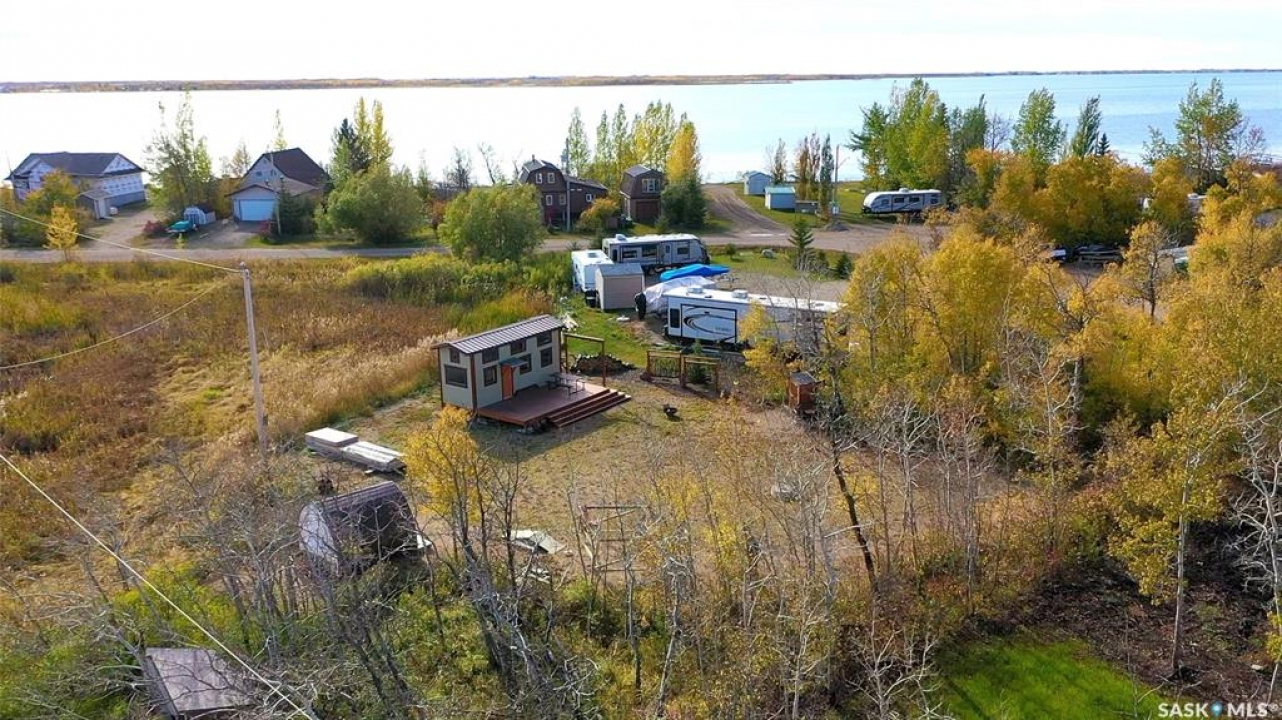 307 Travis Ave, Pavillion Beach is on the popular Fishing Lake Saskatchewan near Wadena, Wynyard and Foam Lake. This property offers a large private quiet lot that is pie shaped in a little bay. The lot backs farmland, and is well treed between the neighbours. The bonus is the trees are on this property so up to you to keep. The property shows as a LOT but there is a tiny-house on the property that hasn't moved for years. The current owners use it as a cabin and claim with the multiple layers of tin, and insulation in the floor the place handles weather well and is more mouse-proof than even a new RV in their experience. The tiny home offers a surprising amount of storage, kitchen prep space, and a cozy living room area. The two lofts offers room for two beds, and the propane heat offers plenty of warmth in the cool summer nights. The bathroom offers a unique show barrel basin for a 3-piece washroom. Out the door is a nice deck with a privacy wall and some storage underneath. The firepit area leads to an outdoor bar/shed, and a garden area with more privacy screens. The remaining property offers plenty of space for parking, or room for a yard or cabin. There is a powered shed on the southeast side, and near the entrance to the lot is a power panel with RV power, and a spot for RV septic direct to the holding tank. Roll into a turnkey lake getaway. Tiny home has water storage and pump (no well currently).