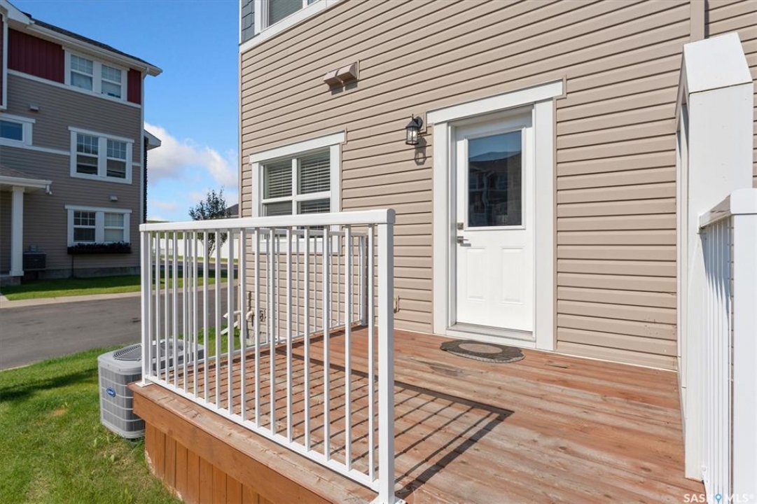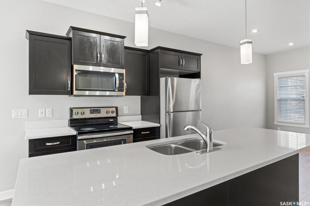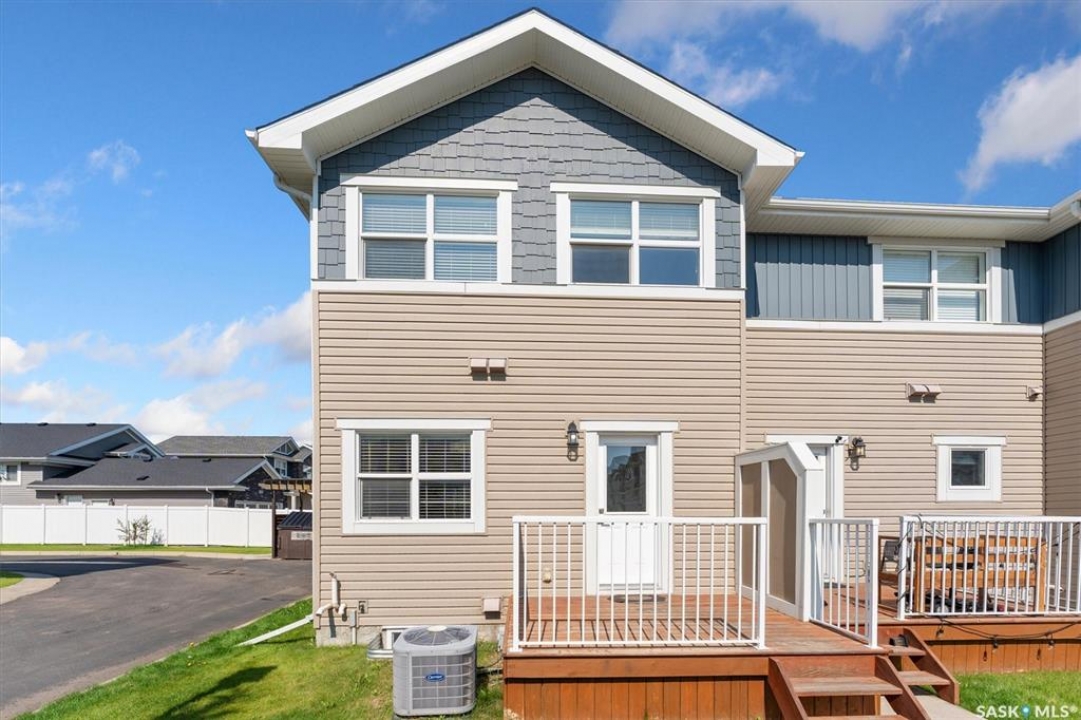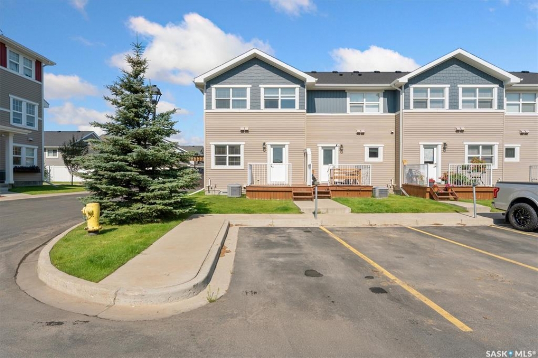 Condo fees are only $258/month. Welcome to 1202 Pringle Way, a charming townhouse in the sought-after Living Stone community of Stonebridge. This two-story home offers 3 bedrooms, 2 bathrooms and two electrified parking spots, plus convenient on-street parking. This end unit includes an east facing rear deck and west facing front porch. The main floor includes brand new flooring in the living room, kitchen and dining area, a 2-piece bathroom, and a well-equipped kitchen with quartz counter tops. Upstairs, you'll find 3 bedrooms and a shared 4-piece bathroom. The unfinished basement (includes a window) includes laundry facilities and is ready for future development—potentially an extra bedroom or bathroom. This unit features air conditioning, window coverings, and durable laminate floors. The community is ideally located near parks, schools, and numerous amenities, with easy freeway access. Pet owners will appreciate that the pet policy allows up to two pets, pending approval. Stonebridge is a welcoming, family-friendly neighborhood with biking and walking paths, convenient access to the University of Saskatchewan, and nearby shopping options including Sobeys, Walmart, Home Depot, and more. Local dining options include Brown's and The Canadian Brewhouse, as well as a range of salons, banks, a Co-op gas station, and Motion Fitness. This development offers everything you need, with easy access to all major amenities and transportation. Don't miss out—call now to schedule a private viewing!