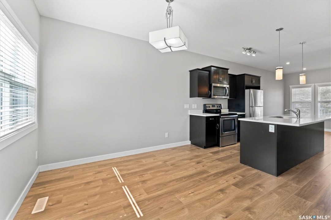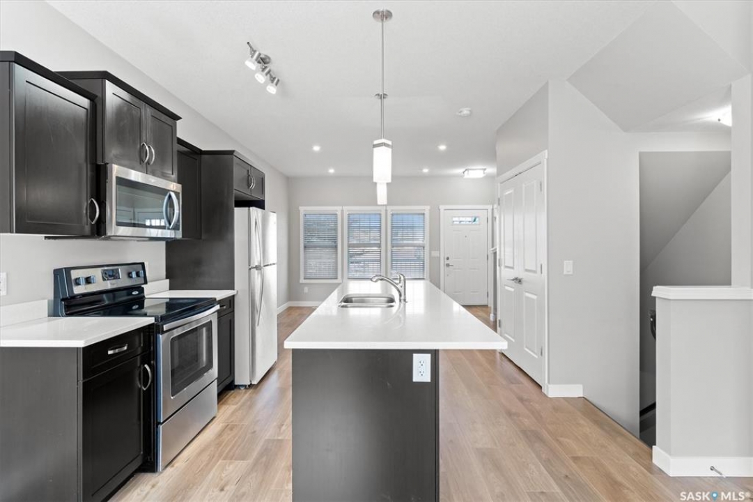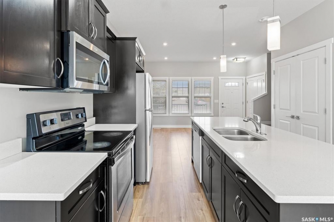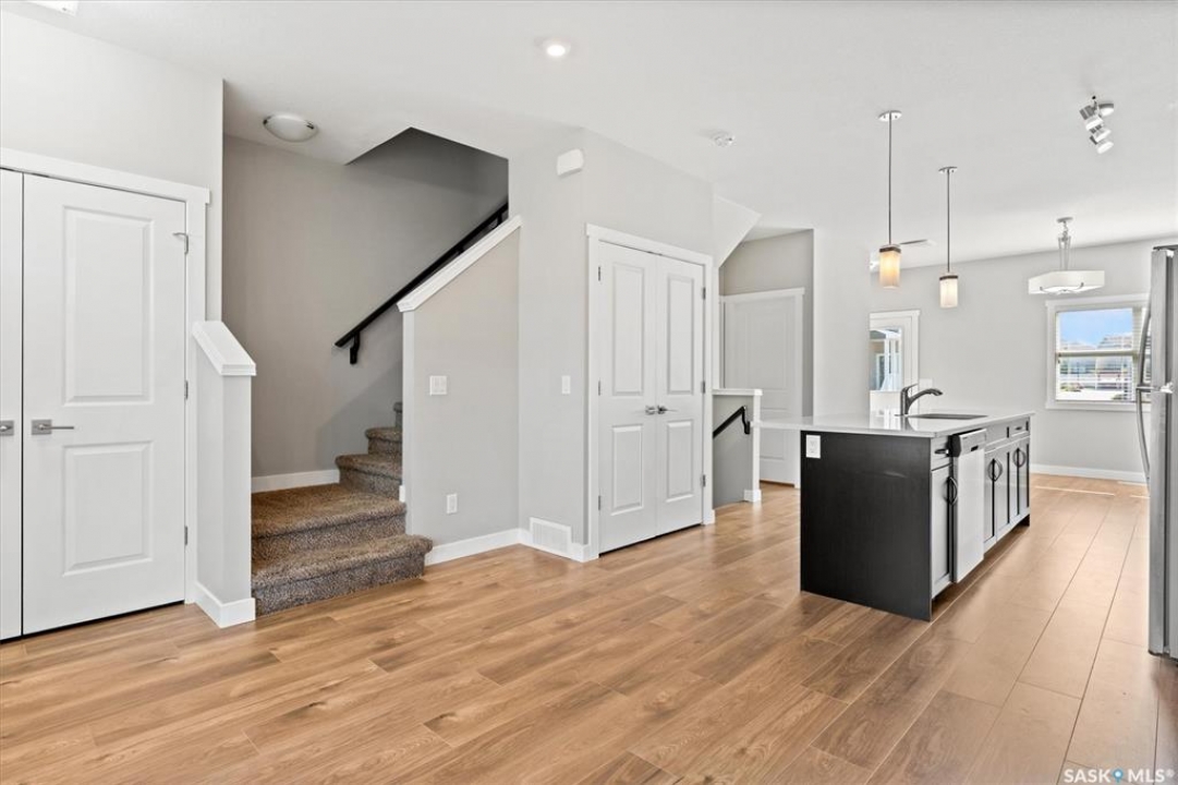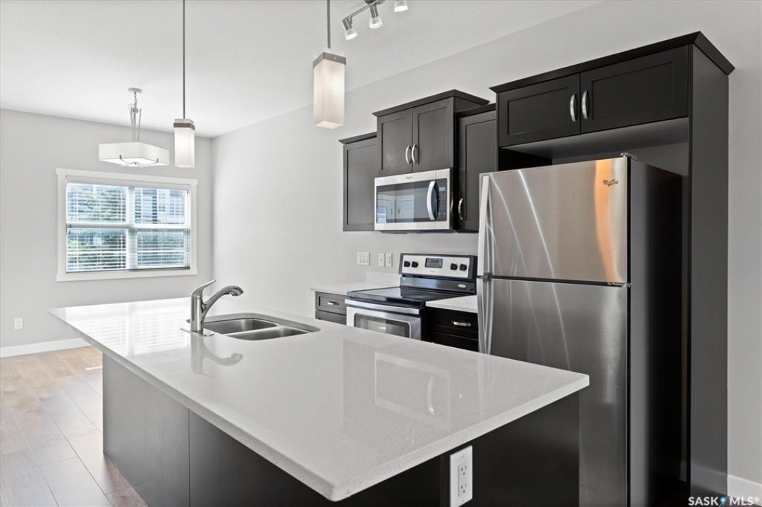 Condo fees are only $258/month. Welcome to 1202 Pringle Way, a charming townhouse in the sought-after Living Stone community of Stonebridge. This two-story home offers 3 bedrooms, 2 bathrooms and two electrified parking spots, plus convenient on-street parking. This end unit includes an east facing rear deck and west facing front porch. The main floor includes brand new flooring in the living room, kitchen and dining area, a 2-piece bathroom, and a well-equipped kitchen with quartz counter tops. Upstairs, you'll find 3 bedrooms and a shared 4-piece bathroom. The unfinished basement (includes a window) includes laundry facilities and is ready for future development—potentially an extra bedroom or bathroom. This unit features air conditioning, window coverings, and durable laminate floors. The community is ideally located near parks, schools, and numerous amenities, with easy freeway access. Pet owners will appreciate that the pet policy allows up to two pets, pending approval. Stonebridge is a welcoming, family-friendly neighborhood with biking and walking paths, convenient access to the University of Saskatchewan, and nearby shopping options including Sobeys, Walmart, Home Depot, and more. Local dining options include Brown's and The Canadian Brewhouse, as well as a range of salons, banks, a Co-op gas station, and Motion Fitness. This development offers everything you need, with easy access to all major amenities and transportation. Don't miss out—call now to schedule a private viewing!