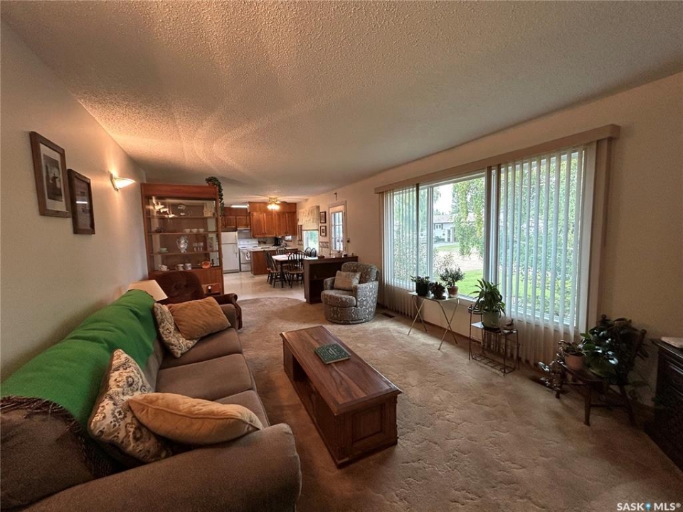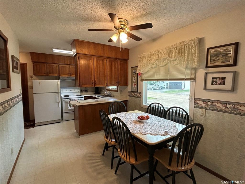 Welcome to 101 Phillips Street in Muenster! This property is located on a large corner lot (71ft x 132ft) offering beautiful curb appeal, a park like backyard, and well appointed bungalow with double attached garage. This home is sure to impress! As you enter, you are welcomed into the kitchen and dining area opening to the large living room. Large south facing windows flood this home with natural light. The main floor offers a spacious Primary Bedroom, second bedroom, full bath, and separate laundry room. The lower level of the home opens to a family room, two bedrooms (windows do not meet legal egress requirements), 3pc bath, storage room, and large utility room with stairs that access the garage. The bonus to this property is the double attached garage (insulated) with separate workshop area.....a necessity for anyone wanting to complete a few projects or store seasonal items. The backyard is a true paradise with an impeccably trimmed hedge, plenty of green space, a large garden, patio and storage shed....plus a plentiful apple tree. This home shows pride of ownership inside and out! Updates include air conditioning added 2024, shingles 2011, some main floor windows 2009 (dining and living room window are triple pane), eves 2006, exterior painted 2005.