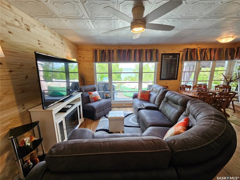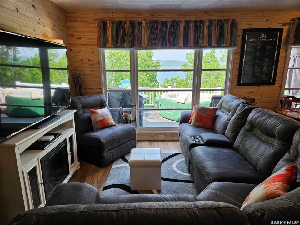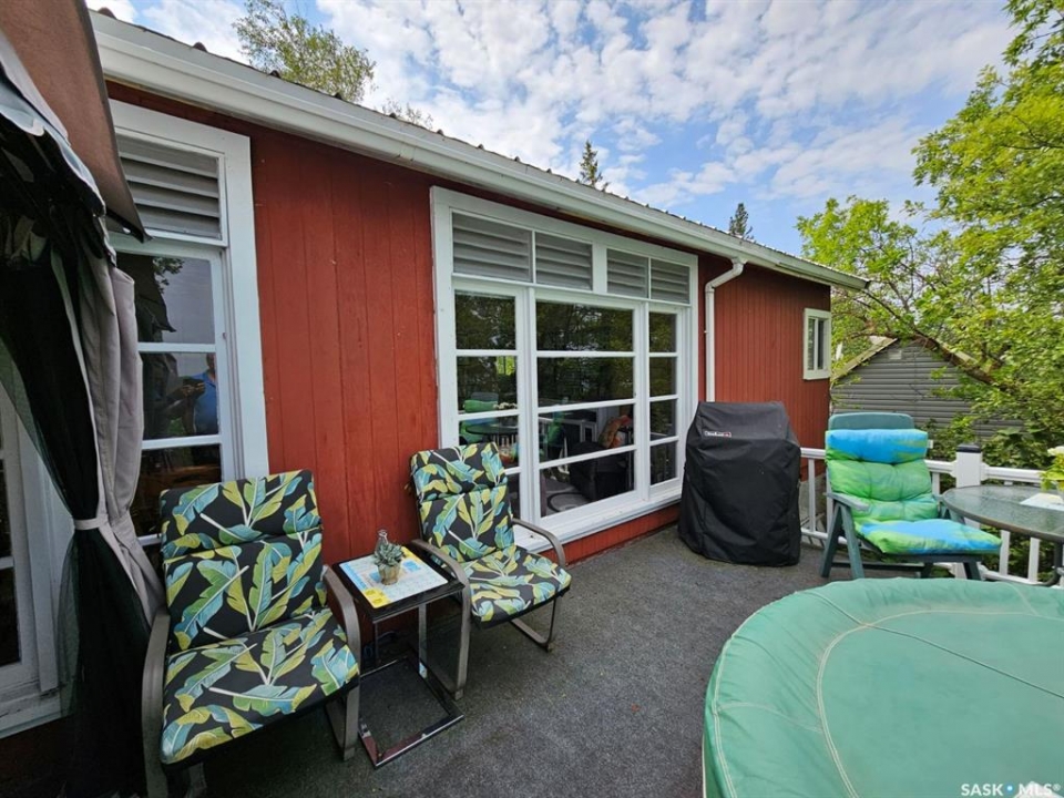Charming turn key Lake View Retreat with Stunning Outdoor Living. 742 Lakeside Avenue. Experience the ultimate in lakeside relaxation with this enchanting White Bear Lake home, designed for those who crave both comfort and beauty. Situated on a picturesque lot, this well-maintained 720 sq. ft. home, complemented by a 110 sq. ft. sunroom, offers a total of 830 sq. ft. of inviting living space, as well as room for a guest house. Enjoy the breath taking views of White Bear Lake from your expansive 20'x12' deck. The back is an entertainer's dream, featuring a spacious deck with ample seating, a charming gazebo with a heater, and a cozy fire pit area for those quintessential lake life evenings. Gather around the fire pit and savor the tranquil ambiance of lakeside living. Unwind in the included hot tub after a long day, perfect for relaxation and rejuvenation. The deck boasts PVC railings with solar lights, adding both style and safety to your outdoor experience. The backyard is accessible from both the house and a wrap-around walking area from the front. The open concept living and dining areas are designed for seamless conversation and enjoyment, featuring a cozy electric fireplace and numerous windows that flood the space with natural light while showcasing stunning lake views. Cook in style with high-end appliances, ample cupboard space, a tasteful backsplash, and a convenient cut-out that allows for interaction with guests in the living room. The home includes two generously sized bedrooms for restful nights. The four-piece bathroom features a granite countertop, newer fixtures, and a rain shower head for a spa-like experience. Washer/Dryer are Conveniently tucked away in their own dedicated area. Equipped with a 1000-gallon water tank and a 1000-gallon septic tank. This idyllic retreat promises a serene escape with all the comforts of home. Walking distance to the beach!. Don't miss the opportunity to own this lakeview gem and to enjoy white Bear Lake.