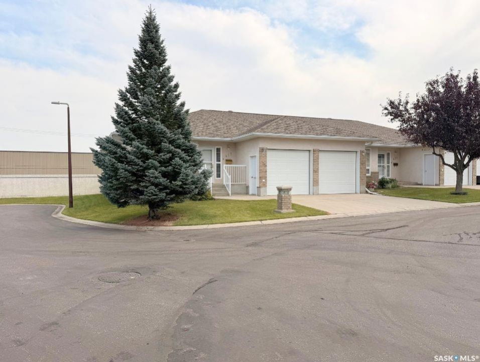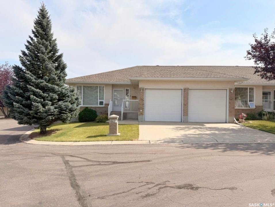A Rare Bungalow Condo with a Double Garage in Pioneer Estates! Bungalow-style condos with a double attached garage in Pioneer Estates, a gated community in the sought-after Trail subdivision, almost never hit the market—making this home an opportunity you won't want to miss! Welcome to #417 – 165 Robert Street W, a well-appointed end-unit bungalow condo that blends convenience, comfort, and space. Set at the quiet end of the development, it offers privacy, minimal traffic, and easy access to visitor parking and the community clubhouse. A nearby path connects you directly to the Chinook Pathway and you're just steps from the Wheatland Mall. Inside, the foyer greets you with a spacious, welcoming entry. The bright, open-concept layout continues into the living room, which is filled with natural light from a large west-facing window. The kitchen offers abundant oak cabinetry, generous counter space, and a pantry, flowing seamlessly into the dining area. Just beyond, an east-facing sunroom provides the perfect spot for morning coffee or an evening unwind. The main floor also features a laundry room, a secondary bedroom, a 4-piece bath, and a primary suite with a walk-in closet and private 3-piece ensuite. The fully developed basement extends your living space with a large recreation room, two storage areas, a sizable bedroom with its own 3-piece ensuite and walk-in closet, plus a versatile den ideal for guests or a home office. Additional value: shingles replaced in 2019. Condo living is effortless with a low $300/month fee that covers lawn care, snow removal, exterior maintenance/insurance, and garbage pickup. Homes like this—bungalow style, double garage, spacious and bright—are rarely listed in Pioneer Estates. Don't wait on this unique chance!