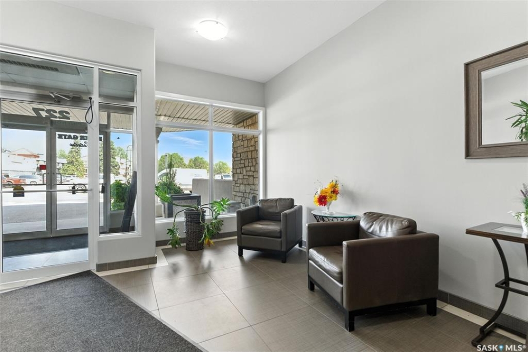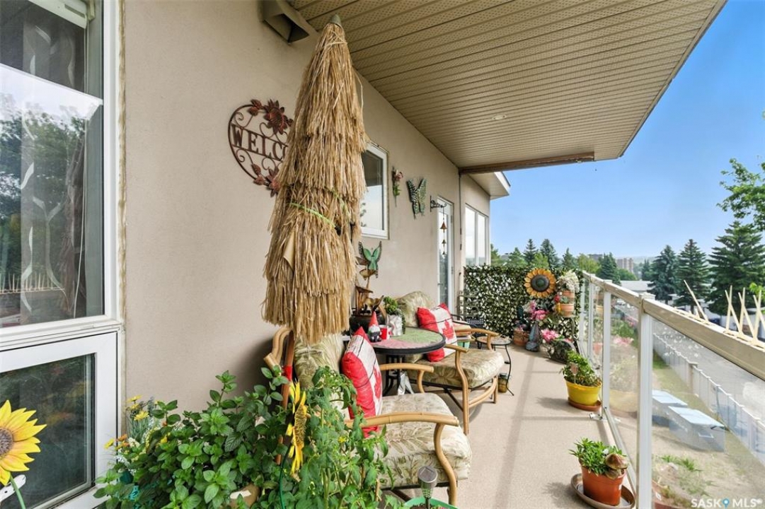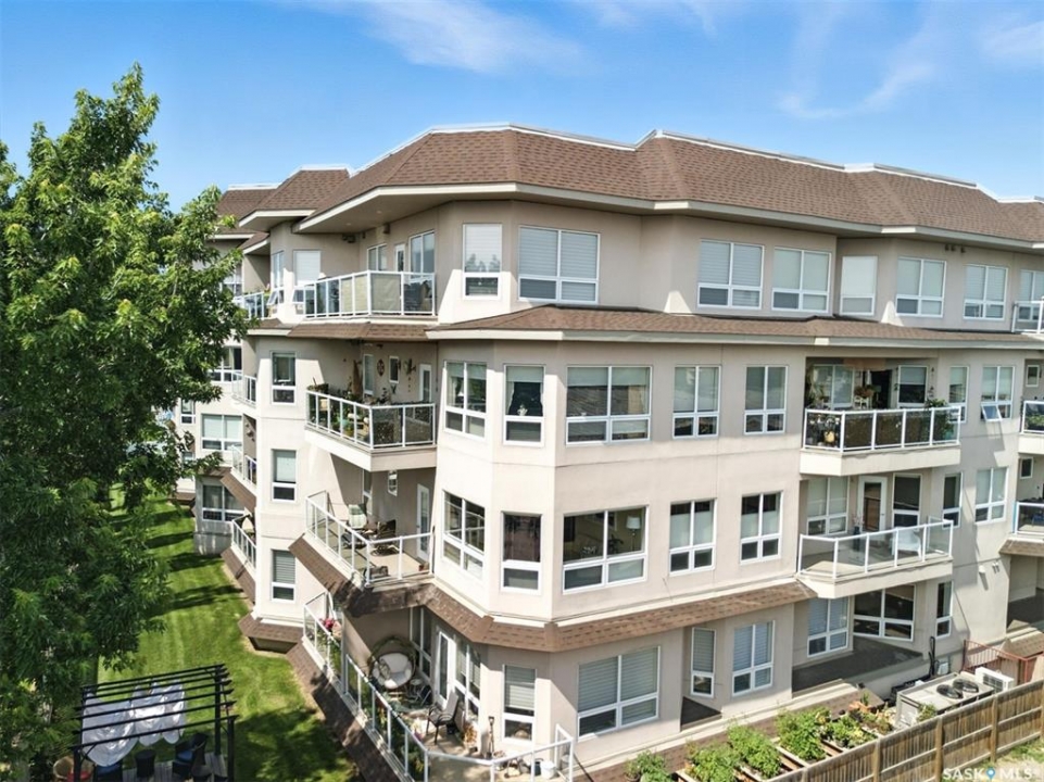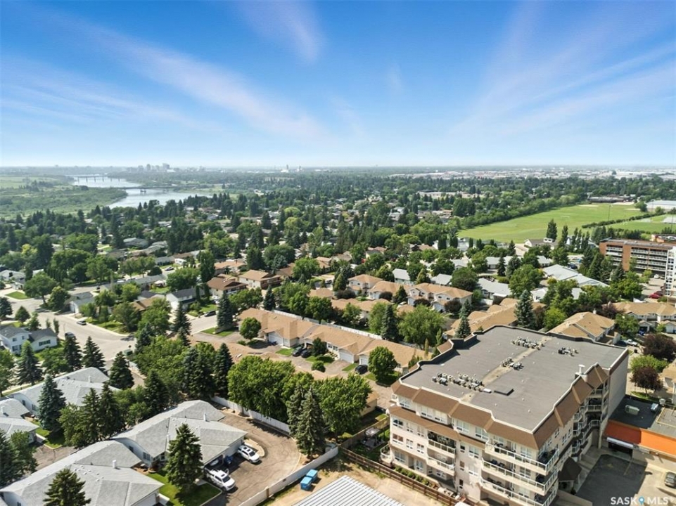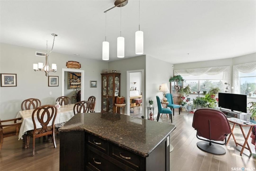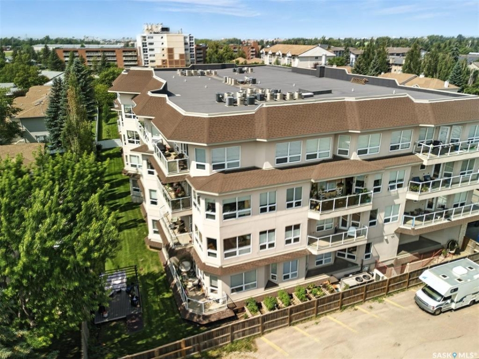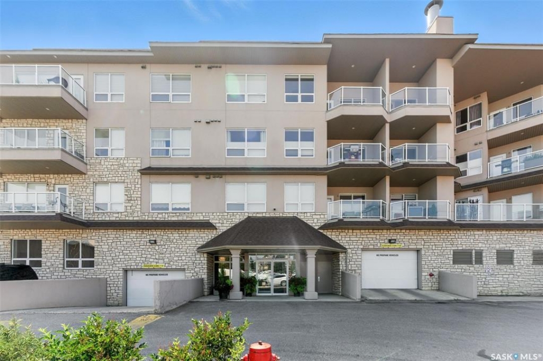 Welcome to Unit #303 – 227 Pinehouse Drive, a bright and spacious third-floor corner unit with southeast exposure, offering beautiful views and an abundance of natural light throughout the day. Located in the heart of Lawson Heights, this home is just steps from the Meewasin Trail, parks, the South Saskatchewan River, transit, restaurants, and all the amenities of Lawson Heights Mall. This 1,289 sq ft unit features a functional open-concept layout that blends comfort and style. The kitchen includes an upgraded double oven, granite countertops, and added pantry space, making it perfect for cooking and entertaining. Hardwood flooring runs throughout the unit, adding warmth and elegance. A sunny balcony offers a perfect retreat for morning coffee or evening relaxation. Additional conveniences include in-suite laundry and 9 ft ceilings, which enhance the spacious feel of the home. The property includes two underground parking stalls, providing secure, heated parking year-round. There's also a den, ideal for a home office or additional storage. Behind the building, residents enjoy access to a raised garden bed and lounge area — a peaceful space for gardening or socializing. The two-bedroom split layout ensures privacy and comfort. The primary bedroom faces east, welcoming the morning sun, and includes a walk-in closet and a 3-piece ensuite. The second bedroom faces south and is located next to the main 4-piece bathroom, making it ideal for guests or family. If you're seeking low-maintenance living in a quiet, walkable neighbourhood — with plenty of light, space, and secure parking — this condo checks all the boxes. Contact your REALTOR � to book a private showing today.
