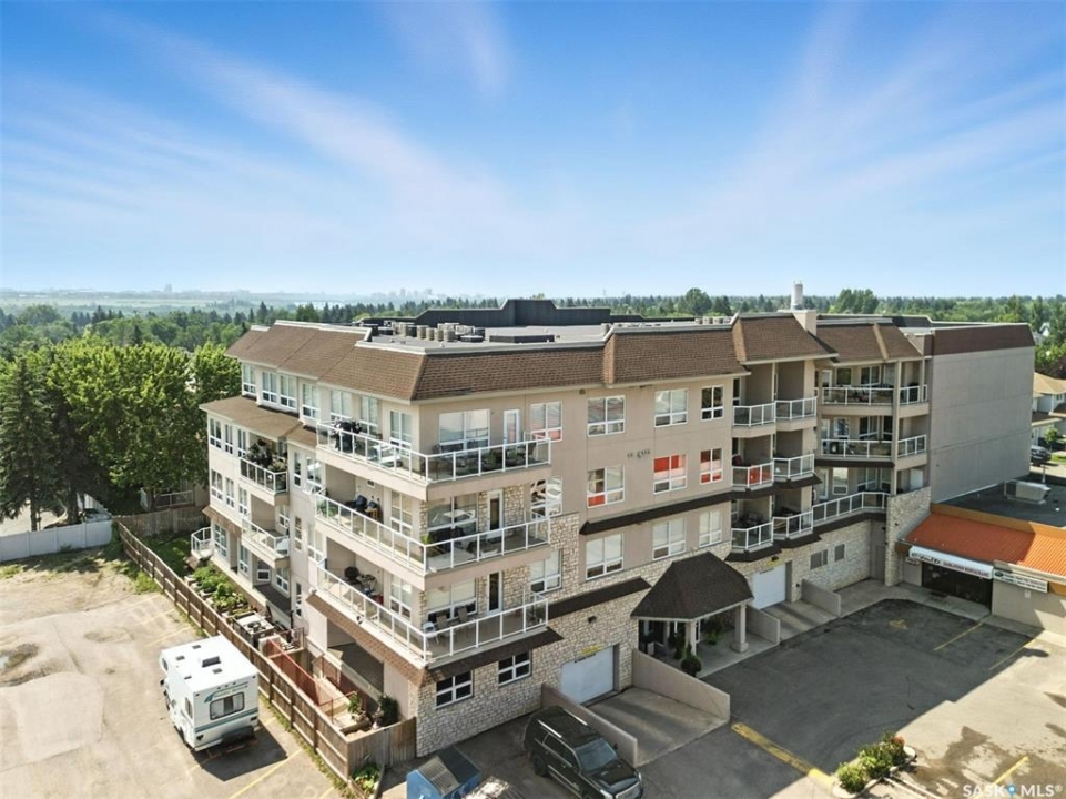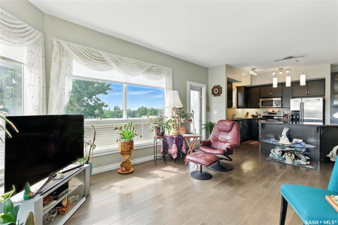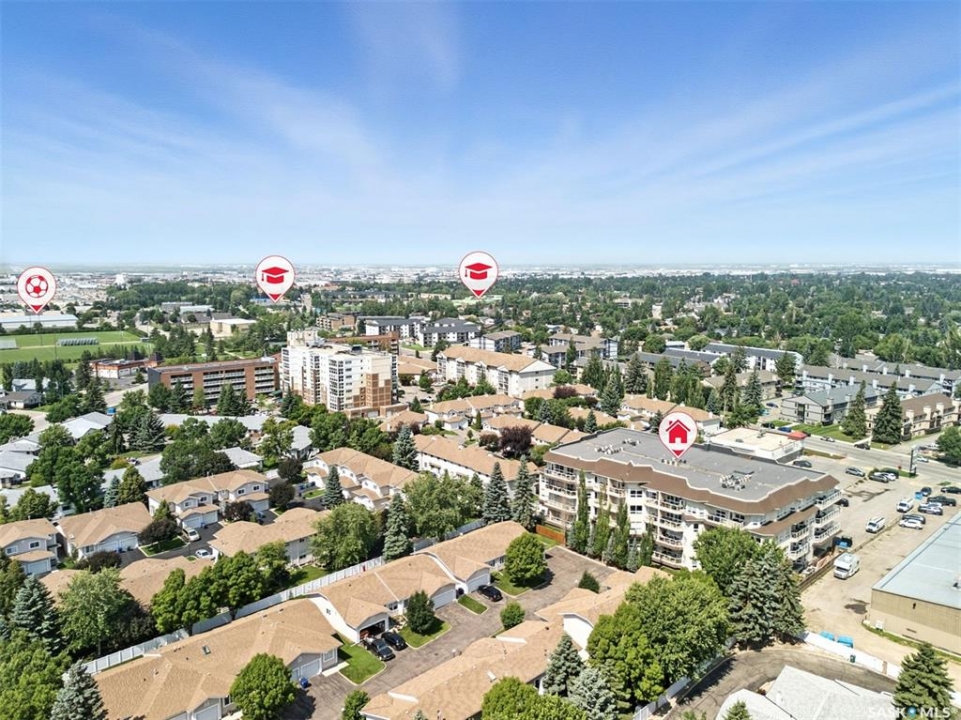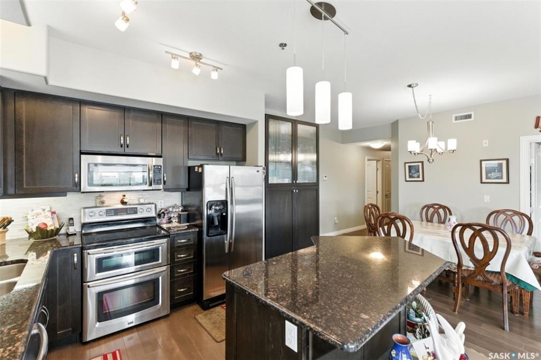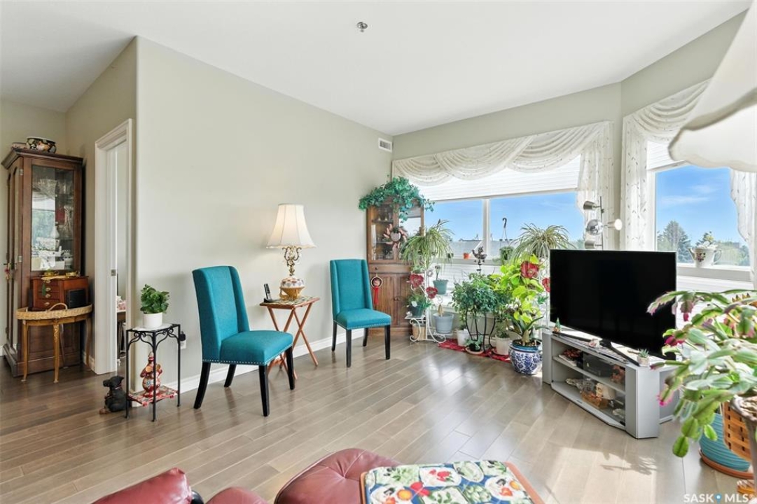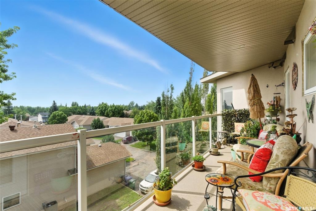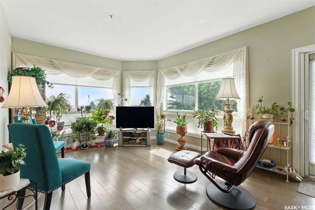 Welcome to Unit #303 – 227 Pinehouse Drive, a bright and spacious third-floor corner unit with southeast exposure, offering beautiful views and an abundance of natural light throughout the day. Located in the heart of Lawson Heights, this home is just steps from the Meewasin Trail, parks, the South Saskatchewan River, transit, restaurants, and all the amenities of Lawson Heights Mall. This 1,289 sq ft unit features a functional open-concept layout that blends comfort and style. The kitchen includes an upgraded double oven, granite countertops, and added pantry space, making it perfect for cooking and entertaining. Hardwood flooring runs throughout the unit, adding warmth and elegance. A sunny balcony offers a perfect retreat for morning coffee or evening relaxation. Additional conveniences include in-suite laundry and 9 ft ceilings, which enhance the spacious feel of the home. The property includes two underground parking stalls, providing secure, heated parking year-round. There's also a den, ideal for a home office or additional storage. Behind the building, residents enjoy access to a raised garden bed and lounge area — a peaceful space for gardening or socializing. The two-bedroom split layout ensures privacy and comfort. The primary bedroom faces east, welcoming the morning sun, and includes a walk-in closet and a 3-piece ensuite. The second bedroom faces south and is located next to the main 4-piece bathroom, making it ideal for guests or family. If you're seeking low-maintenance living in a quiet, walkable neighbourhood — with plenty of light, space, and secure parking — this condo checks all the boxes. Contact your REALTOR � to book a private showing today.