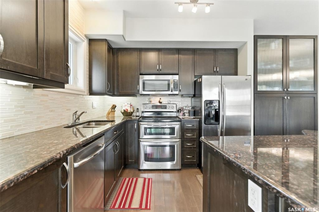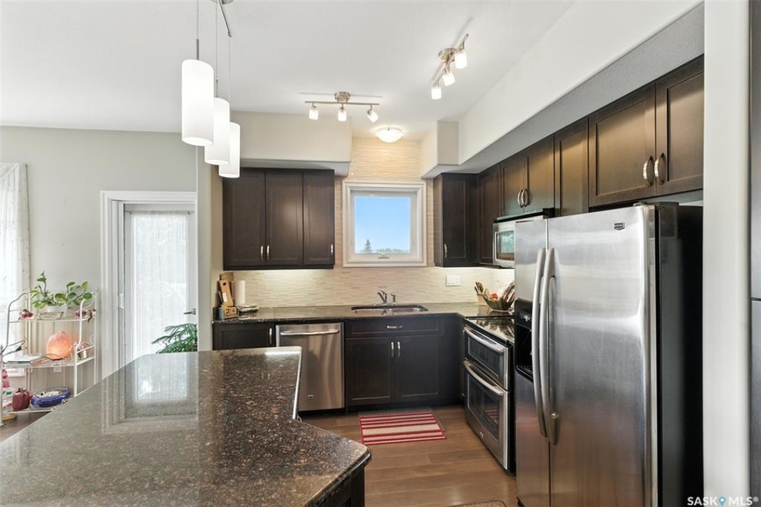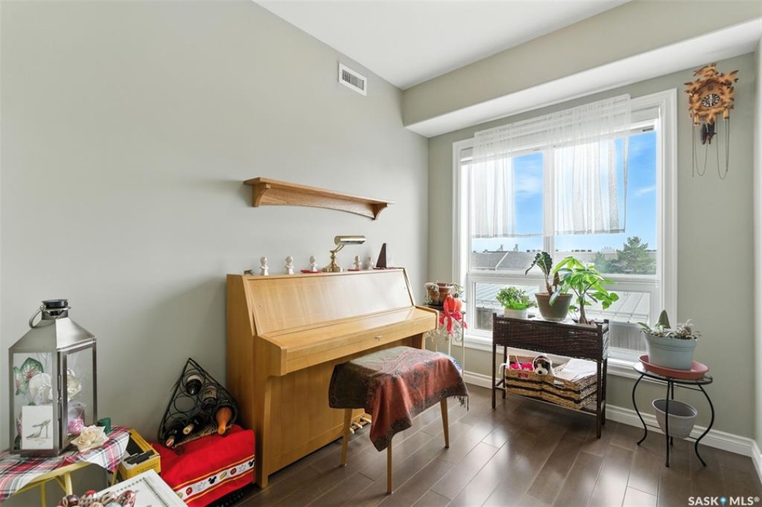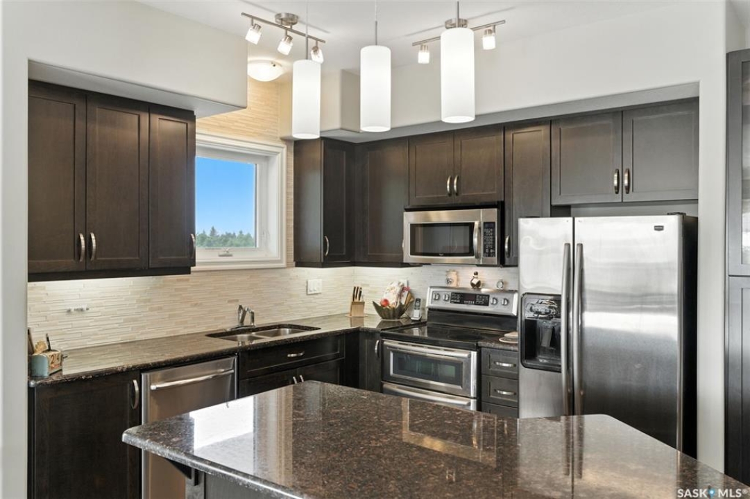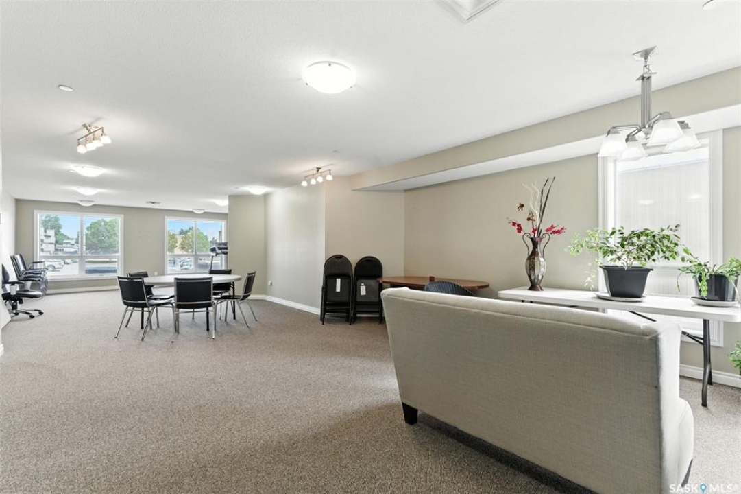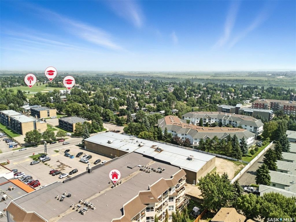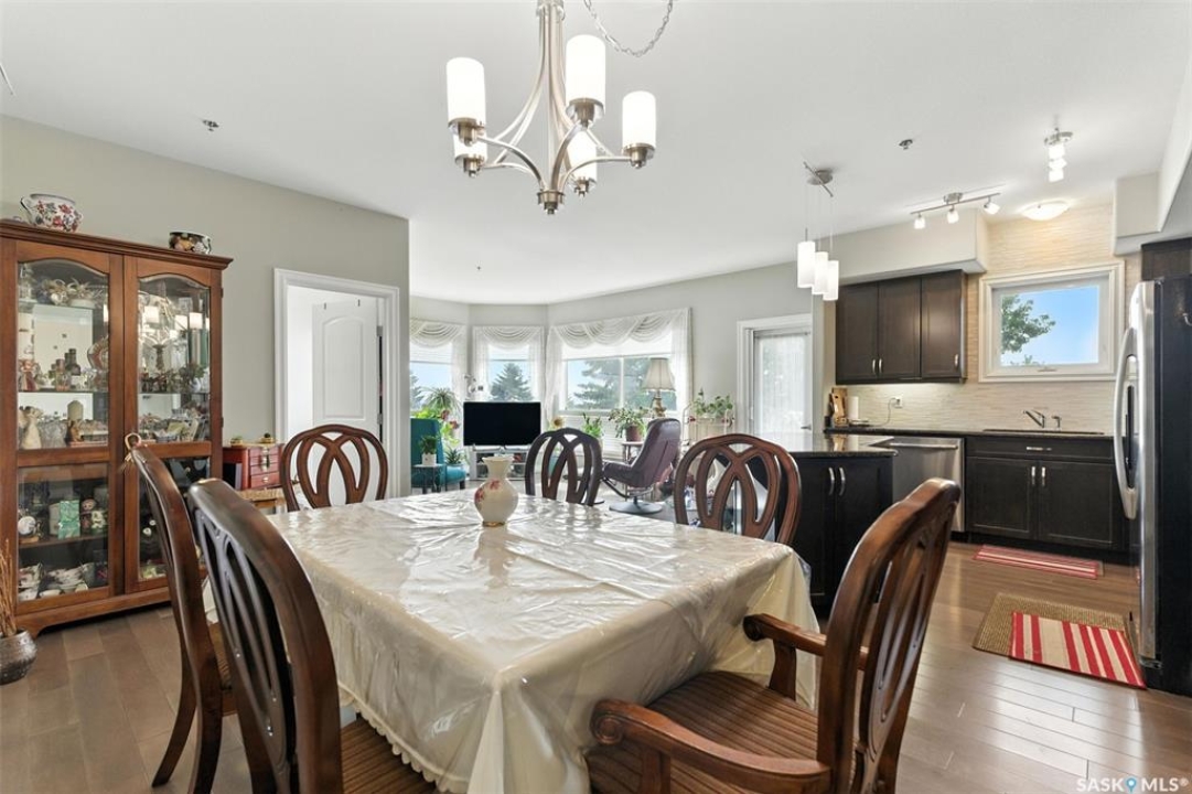 Welcome to Unit #303 – 227 Pinehouse Drive, a bright and spacious third-floor corner unit with southeast exposure, offering beautiful views and an abundance of natural light throughout the day. Located in the heart of Lawson Heights, this home is just steps from the Meewasin Trail, parks, the South Saskatchewan River, transit, restaurants, and all the amenities of Lawson Heights Mall. This 1,289 sq ft unit features a functional open-concept layout that blends comfort and style. The kitchen includes an upgraded double oven, granite countertops, and added pantry space, making it perfect for cooking and entertaining. Hardwood flooring runs throughout the unit, adding warmth and elegance. A sunny balcony offers a perfect retreat for morning coffee or evening relaxation. Additional conveniences include in-suite laundry and 9 ft ceilings, which enhance the spacious feel of the home. The property includes two underground parking stalls, providing secure, heated parking year-round. There's also a den, ideal for a home office or additional storage. Behind the building, residents enjoy access to a raised garden bed and lounge area — a peaceful space for gardening or socializing. The two-bedroom split layout ensures privacy and comfort. The primary bedroom faces east, welcoming the morning sun, and includes a walk-in closet and a 3-piece ensuite. The second bedroom faces south and is located next to the main 4-piece bathroom, making it ideal for guests or family. If you're seeking low-maintenance living in a quiet, walkable neighbourhood — with plenty of light, space, and secure parking — this condo checks all the boxes. Contact your REALTOR � to book a private showing today.