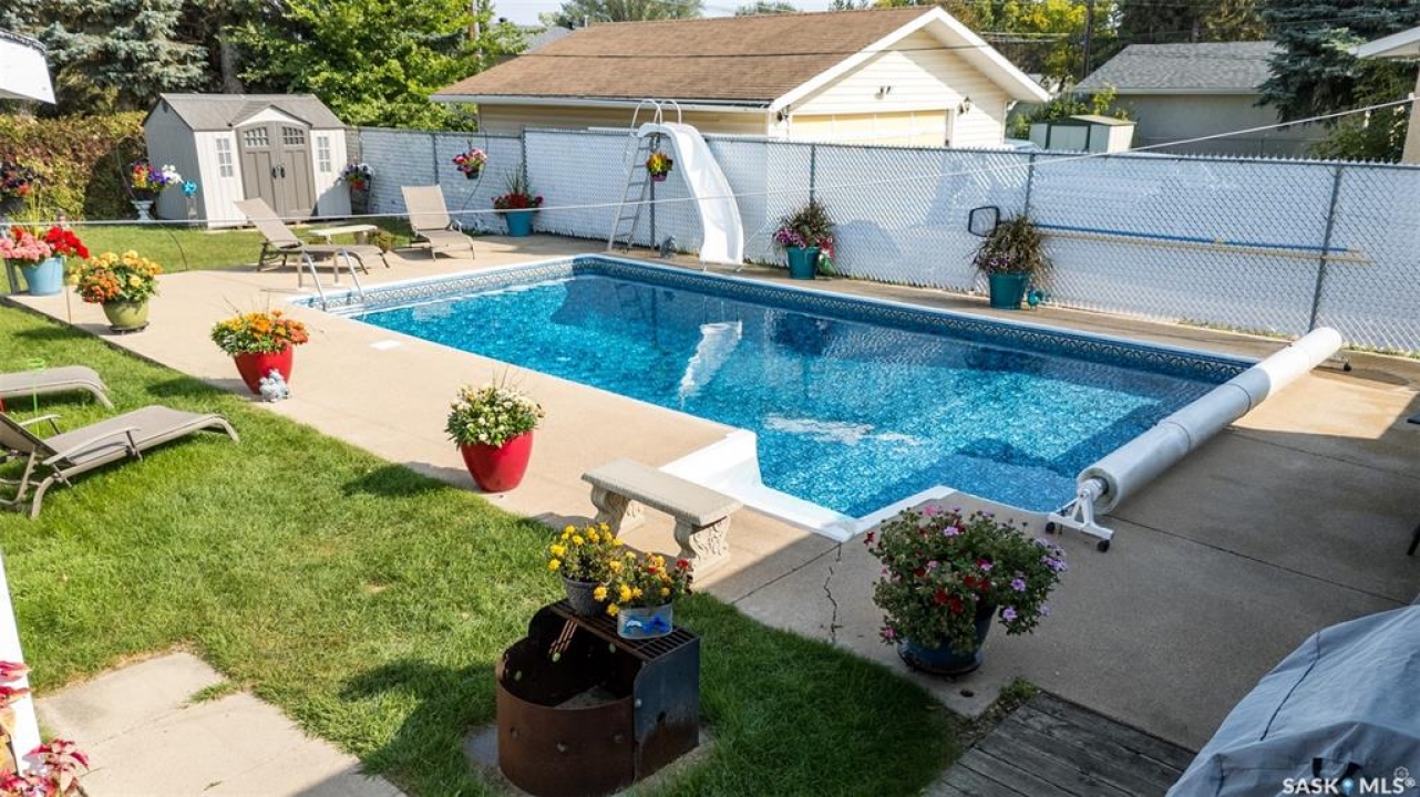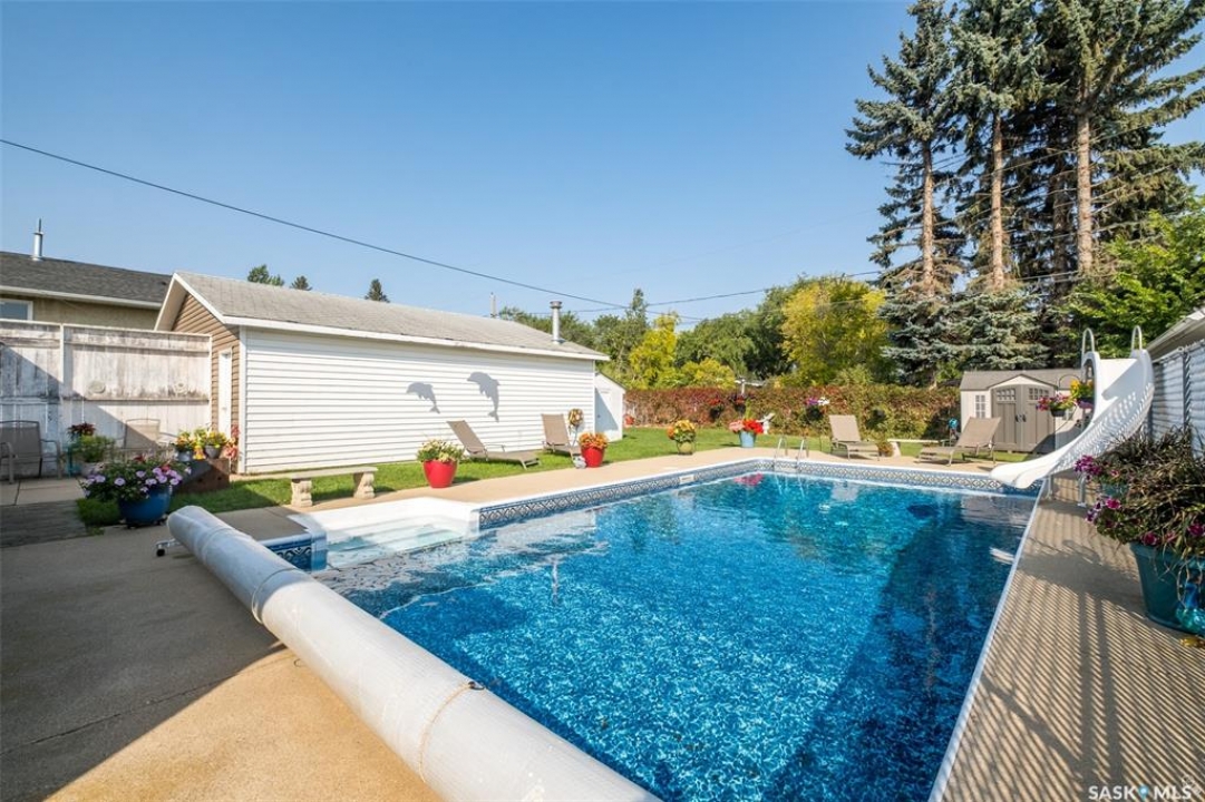 Beautiful 3 bedroom and 2 bathroom bungalow ideally located within walking distance of schools, parks and the Carlton Court shopping centre! The main floor welcomes you with a bright and airy living room, highlighted by a large south facing picture window that fills the space with natural light and flows effortlessly into the dining area, creating a warm and inviting setting for everyday living. The kitchen is bright and functional, featuring stainless steel appliances, ample cabinetry and plenty of workspace. Completing the main level are 3 generously sized bedrooms and a 4 piece bathroom. The fully finished basement provides an expansive family room, perfect for movie nights, games or hosting guests, alongside a 3 piece bathroom with a stand up shower and a combined laundry/utility room with extra storage space. Outside, the fully fenced and meticulously landscaped yard is a true showpiece. The property features a double detached garage, a patio area and an impressive 16ft x 32ft pool that transforms the space into a private backyard retreat, ideal for relaxing, entertaining and making lasting summer memories. Don't miss the chance to make this exceptional home your own!