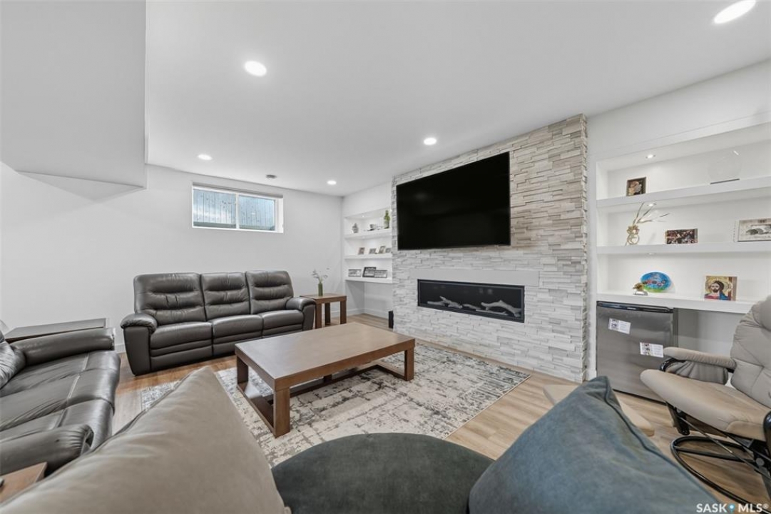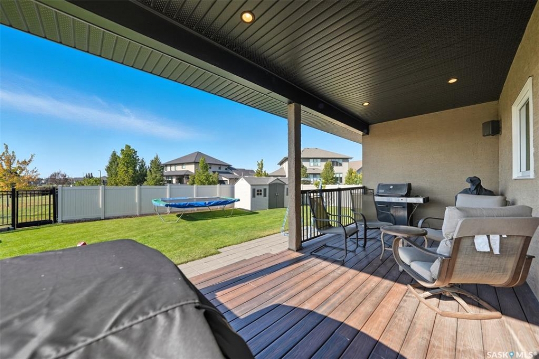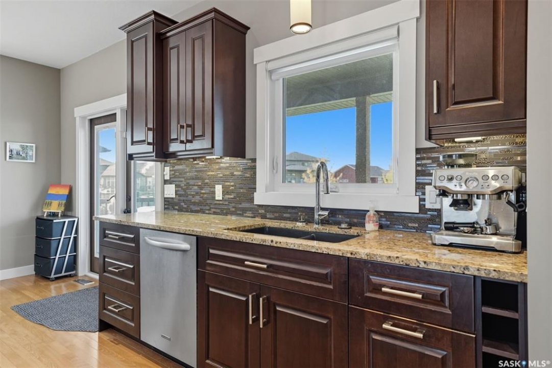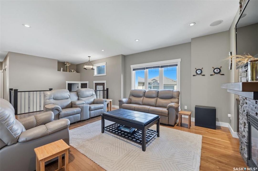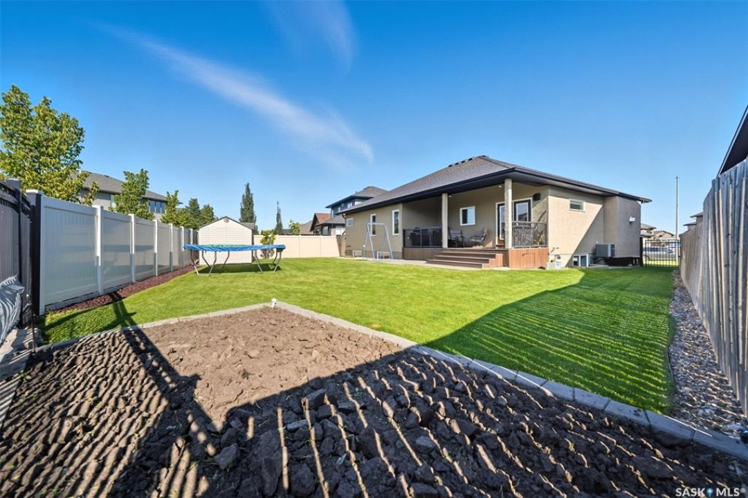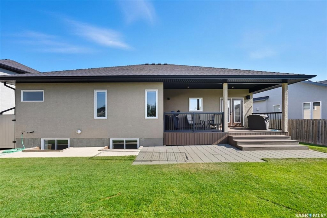 Nestled in the heart of Rosewood, this executive bungalow offers a perfect balance of comfort, functionality, and upscale finishes, backing southwest onto walking trails and greenspace. With an expansive open layout, five spacious bedrooms (3 up, 2 down) and three bathrooms, the home is ideal for family living and entertaining. The main floor showcases hardwood and tile flooring with carpet in the bedrooms, a living room with feature gas fireplace and built-in speakers, and a gourmet kitchen with granite countertops, tile backsplash, under-cabinet lighting, soft-close cabinetry with full-extension drawers, and stainless steel appliances. A walk-in closet off the foyer adds everyday convenience. The primary suite is a true retreat, complete with blackout blinds, a large walk-in closet, and a spa-inspired five-piece ensuite with in-floor heat, jetted tub, dual sinks, tiled shower with glass door, and built-in speakers. Two additional bedrooms, a full bathroom, and a laundry room with built-in cabinetry and sink complete the main level. The fully finished basement offers two more large bedrooms (one currently a gym), a full bathroom with quartz vanity and steam shower, plus an inviting family and games area with feature wall and gas fireplace. The mechanical room provides excellent storage and houses an on-demand water heater, humidifier, and central A/C. Every closet features custom MDF built-ins for exceptional organization. Outdoor living is just as appealing with a covered deck and built-in speakers, large storage shed, and easy access to trails. The attached heated garage measures 26' x 24'/26'. Thoughtfully designed and meticulously maintained, this home is perfectly located with easy access to parks and all area amenities.