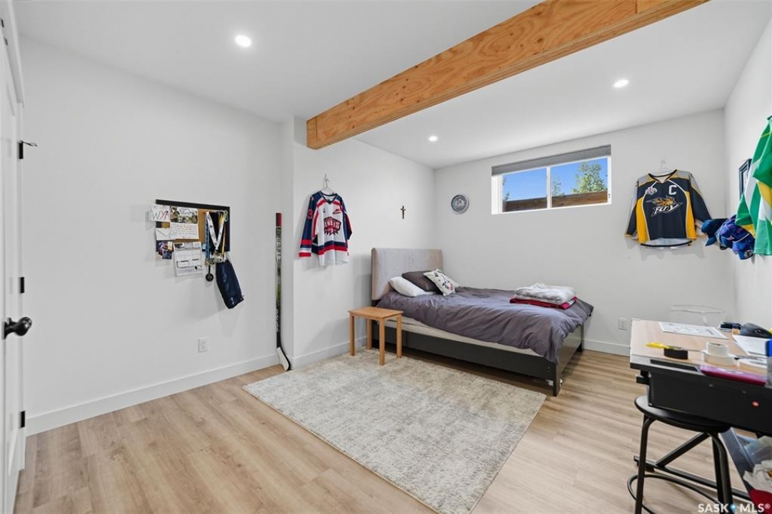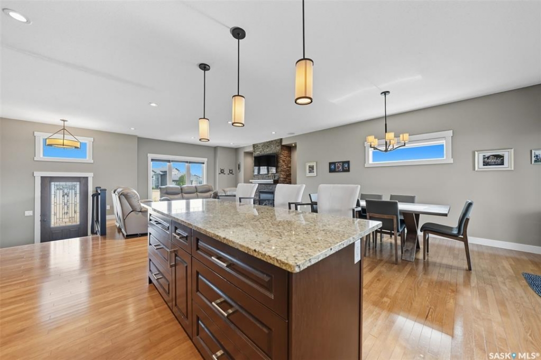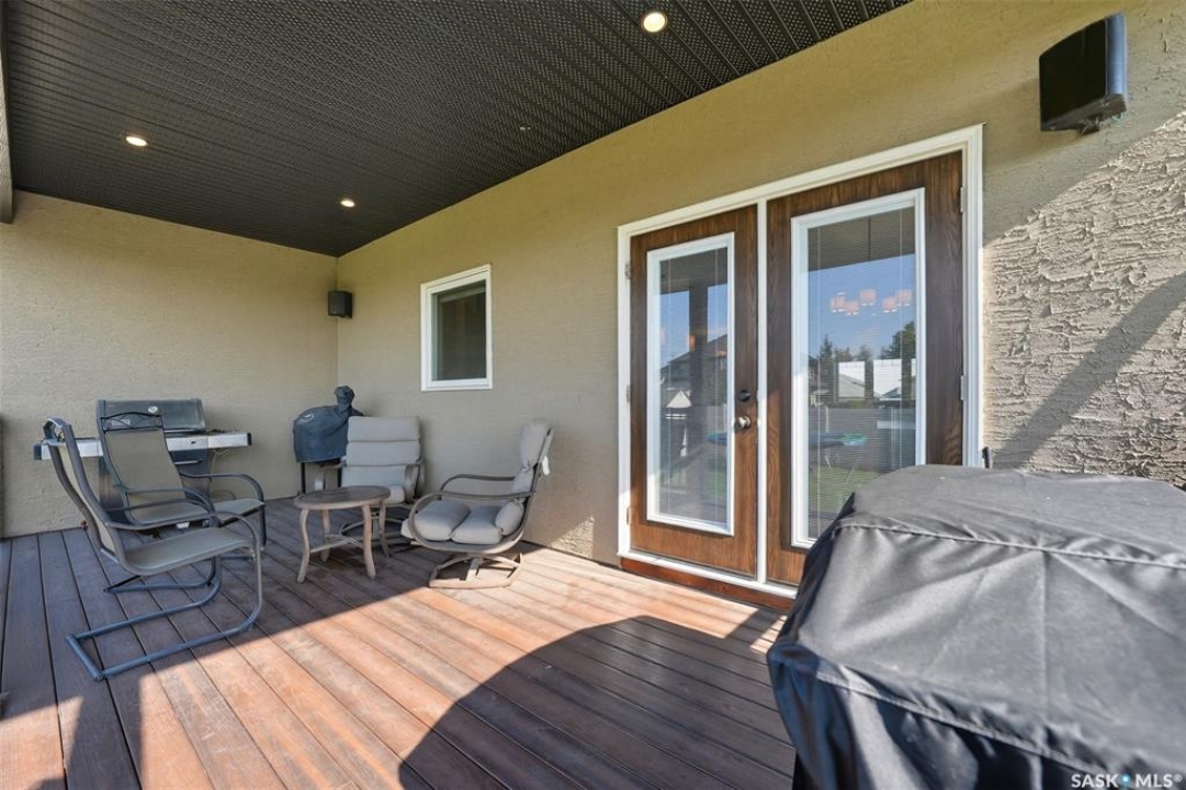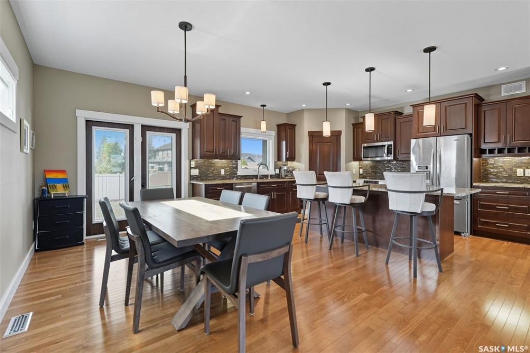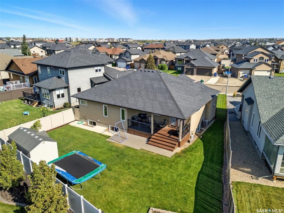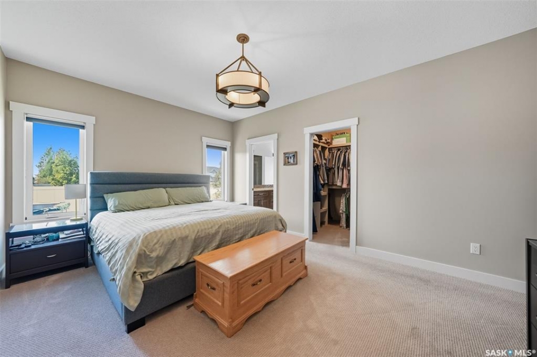 Nestled in the heart of Rosewood, this executive bungalow offers a perfect balance of comfort, functionality, and upscale finishes, backing southwest onto walking trails and greenspace. With an expansive open layout, five spacious bedrooms (3 up, 2 down) and three bathrooms, the home is ideal for family living and entertaining. The main floor showcases hardwood and tile flooring with carpet in the bedrooms, a living room with feature gas fireplace and built-in speakers, and a gourmet kitchen with granite countertops, tile backsplash, under-cabinet lighting, soft-close cabinetry with full-extension drawers, and stainless steel appliances. A walk-in closet off the foyer adds everyday convenience. The primary suite is a true retreat, complete with blackout blinds, a large walk-in closet, and a spa-inspired five-piece ensuite with in-floor heat, jetted tub, dual sinks, tiled shower with glass door, and built-in speakers. Two additional bedrooms, a full bathroom, and a laundry room with built-in cabinetry and sink complete the main level. The fully finished basement offers two more large bedrooms (one currently a gym), a full bathroom with quartz vanity and steam shower, plus an inviting family and games area with feature wall and gas fireplace. The mechanical room provides excellent storage and houses an on-demand water heater, humidifier, and central A/C. Every closet features custom MDF built-ins for exceptional organization. Outdoor living is just as appealing with a covered deck and built-in speakers, large storage shed, and easy access to trails. The attached heated garage measures 26' x 24'/26'. Thoughtfully designed and meticulously maintained, this home is perfectly located with easy access to parks and all area amenities.