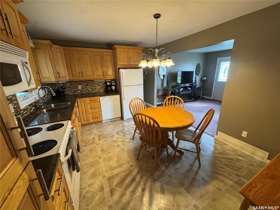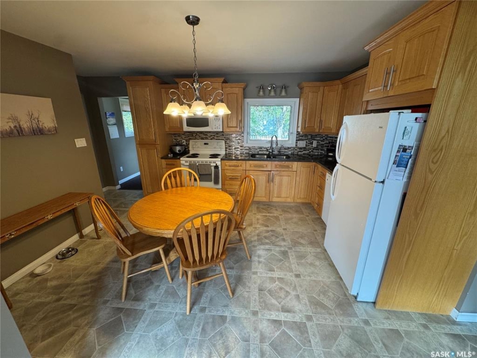Welcome to 506 4th Street South, Spalding, Saskatchewan. This well kept 1,020 sq. ft. bungalow, originally built in 1965 was moved onto a basement in 1998 and sits proudly on a massive double corner lot in the friendly and bustling village of Spalding. With plenty of space inside and out, this home offers the perfect blend of comfort, functionality, and small-town charm. Outside, the property really shines. The large deck and cement patio provide a fantastic area for hosting friends and family or simply enjoying quiet evenings under the prairie sky. Gardeners will love the mature garden spot, and there's no shortage of storage with a 12 x 24 oversized shed. A 26 x 28 detached heated garage completes the package, offering tons of room for parking, projects, or extra storage needs. As you step into the back entrance, you're welcomed by a spacious mudroom with ample storage, ideal for keeping things organized year round. From there, the home opens into an inviting kitchen and dining area, designed with an open concept that flows beautifully into the bright, airy living room filled with natural light. The main floor features two generously sized bedrooms, a full 4-piece bathroom, and the convenience of main floor laundry, making day-to-day living a breeze. Downstairs, the fully finished basement adds even more living space with a large family room perfect for relaxing or entertaining. A spacious third bedroom, an additional 3-piece bathroom, and a cold storage room, while a cozy nook area could easily serve as a home office or games space, whatever suits your lifestyle best. Whether you're looking to settle into a peaceful community or invest in a move-in-ready home with loads of potential, this property is ready to welcome its next chapter. Don't miss your opportunity schedule your private viewing today!