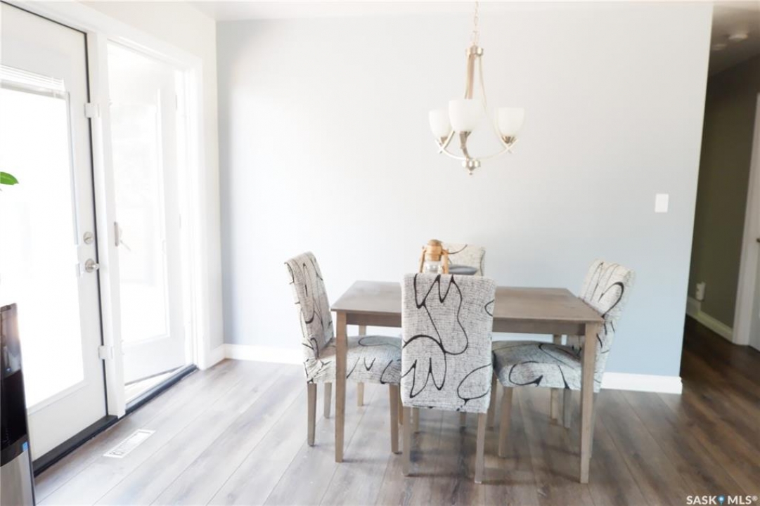 Situated in the Town of Assiniboia, this property boasts an excellent location near schools and recreational amenities. The home is move-in ready and has been comprehensively upgraded with high-quality finishes throughout. Custom Hickory cabinetry enhances the kitchen and extends into the dining area, which also features a built-in computer desk. The main floor is finished with solid core vinyl plank flooring, except for the bathroom, which has durable vinyl tile. There are three bedrooms on the main level and two additional bedrooms in the fully developed basement, making the layout ideal for families. The interior decor features modern paint colours, creating an inviting atmosphere. Garden doors from the dining room open onto an oversized deck with glass inserts, offering a comfortable space to enjoy the private backyard, complete with mature landscaping, garden boxes, and abundant plantings. The property includes enclosed blinds on the garden doors, with custom up/down and room-darkening blinds in other areas. The basement features vinyl plank flooring with a water membrane installed below for moisture control, as well as ample storage options, including a finished room under the stairs and a full storage room. Utilities include a high-efficiency natural gas furnace, on-demand water heater, and owned water softener, all located in a spacious laundry room. The exterior of the home is maintenance-free, featuring newer vinyl siding and asphalt shingles. Additional highlights include a paved driveway leading to a single detached insulated garage, insulated bathroom walls, and solid core doors. One basement bedroom is soundproofed. This property offers exceptional comfort and a range of modern upgrades.