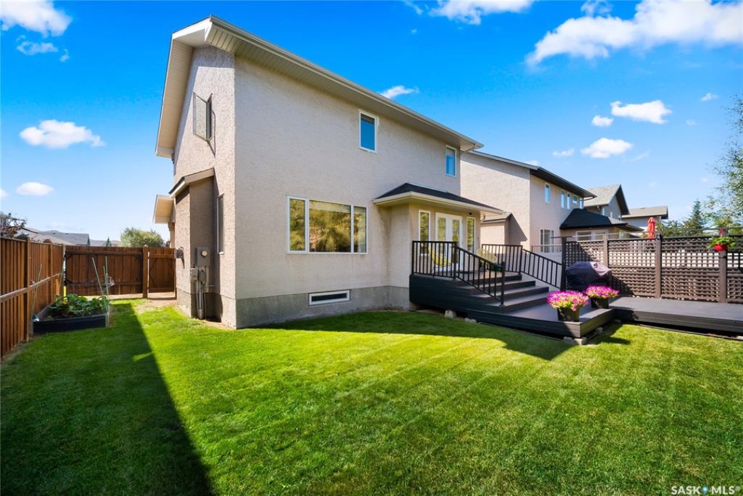 Finally, the one you've been waiting for!Welcome to this wonderful family home - 8310 Wascana Gardens Way! This nearly 2,000 sq. ft. two-storey offers a thoughtful layout, beautiful updates, and a yard that's ready to enjoy. The spacious kitchen is the true centrepiece of the home, showcasing espresso maple cabinets, a large island, pantry, updated lighting and hardware, and stainless steel appliances. The inviting great room features a gas fireplace and hardwood flooring that flows seamlessly into the dining area. Garden doors lead to a large deck/patio area overlooking the fully landscaped, fenced yard. The main floor also offers a 2-piece guest bathroom, welcoming foyer and convenient access to the garage. Upstairs, you'll find a bright and versatile bonus room, a convenient laundry room, three generously sized bedrooms, and a 4-piece main bath. The primary retreat includes a walk-in closet and spa-like ensuite with jetted tub. The basement is open for customization to your liking! The home has seen some fresh new paint in neutral tones and boasts numerous upgrades, including: new microwave, new roof (April 2025), new A/C (September 2025), new HRV (September 2025), new blinds in bedrooms, two new windows, updated toilets, and slat board in the garage for smart storage. This property is truly move-in ready and a pleasure to show!