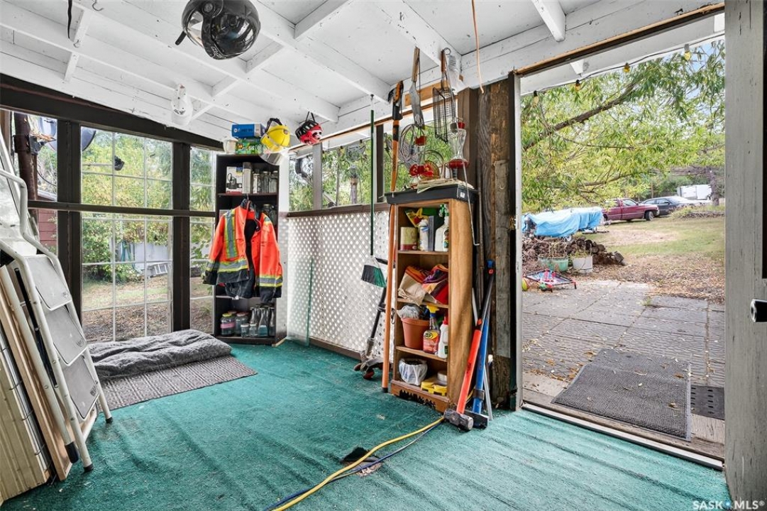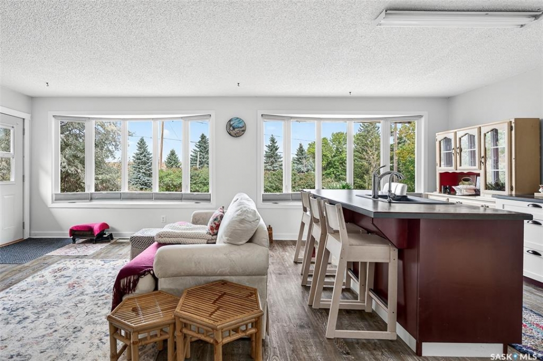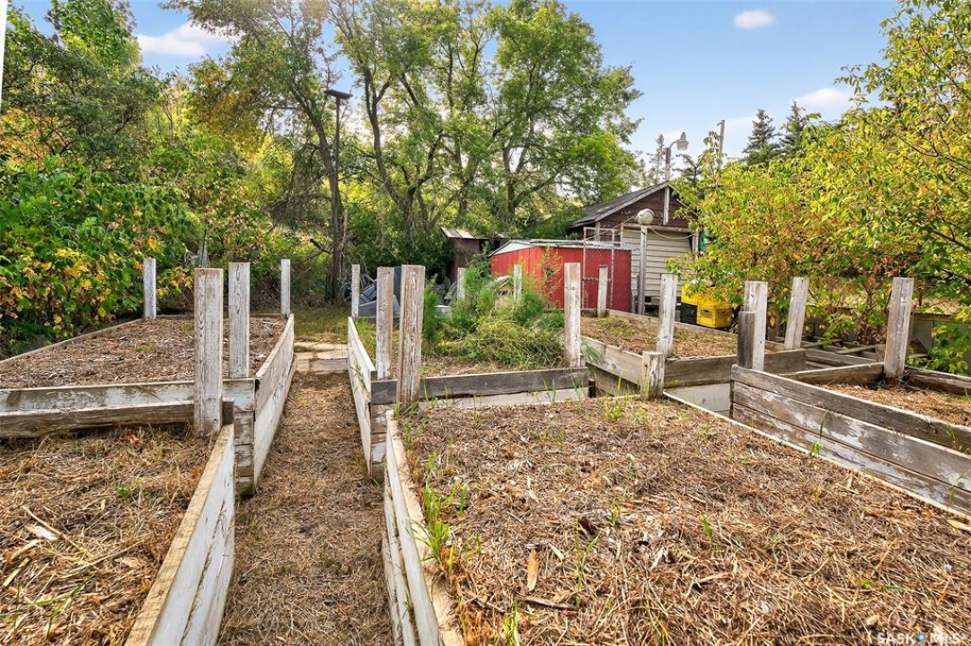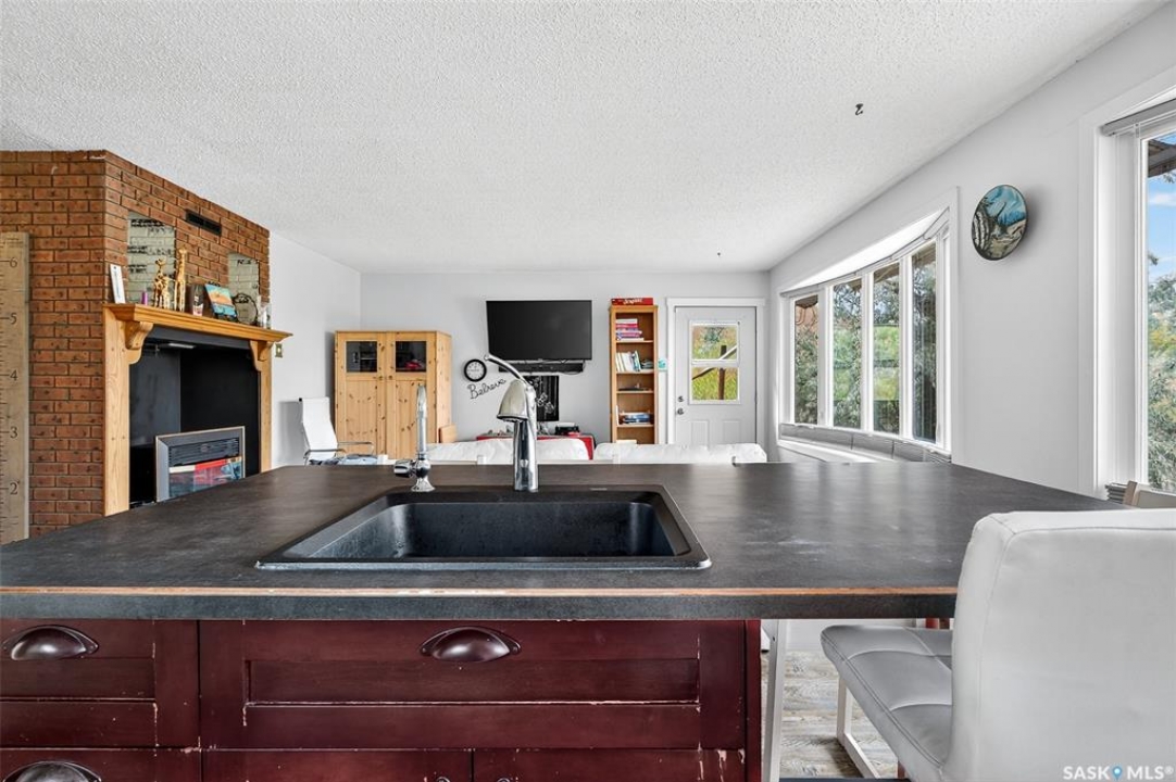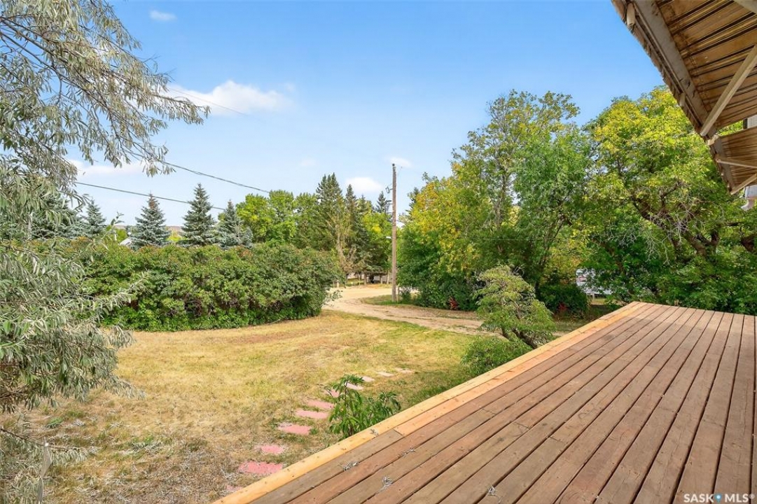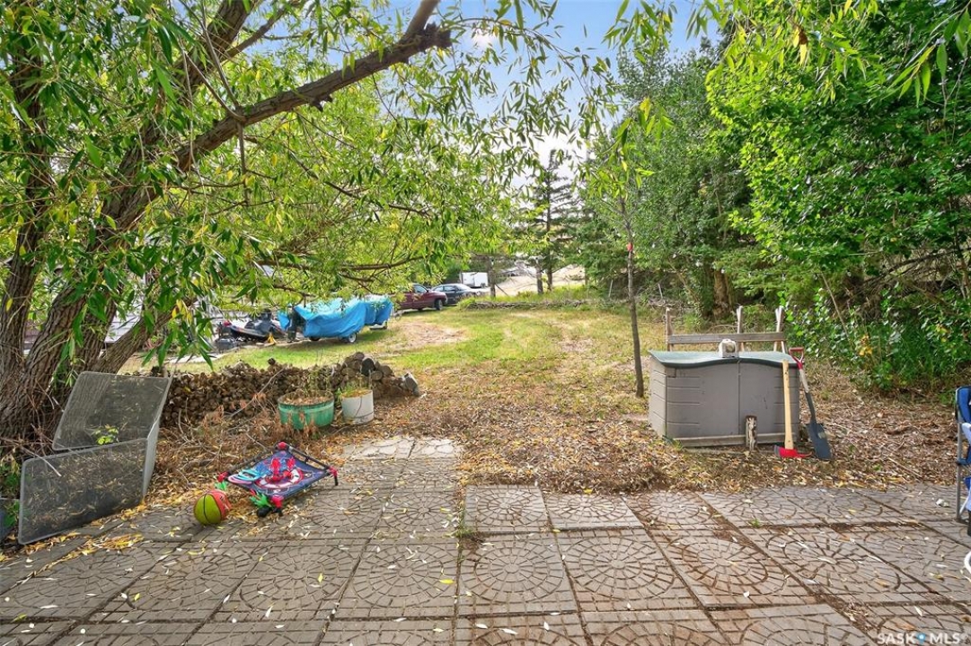 Charming year-round property at Parkview on Buffalo Pound Lake! This inviting 2-bedroom home offers comfort, functionality, and lake-life charm. As you approach, you're welcomed by a spacious front deck with convenient storage underneath. Inside, the open-concept layout connects the kitchen and living room, highlighted by large windows that fill the space with natural light. The kitchen features updated cabinetry, a modern sink, a generous pantry, and a functional island that doubles as a prep area and eating space. The main level includes a well-sized bedroom and a spacious 4-piece bathroom, complete with laundry. At the back of the home, step out to a screened-in deck that overlooks a large yard—perfect for relaxing or entertaining. The lower level offers a small additional bedroom, mechanical room, and an extra toilet for convenience. Outdoors, the property includes an older garage, a fenced area with multiple raised garden beds, and a pathway leading to a private trail lined with apple trees and Saskatoon berry bushes. This is an ideal opportunity to own a cozy four-season retreat with both modern updates and natural beauty at your doorstep.