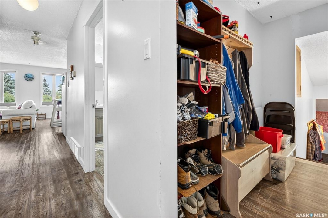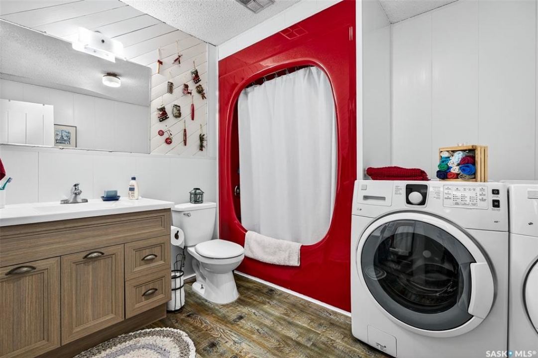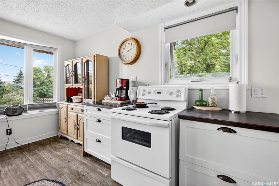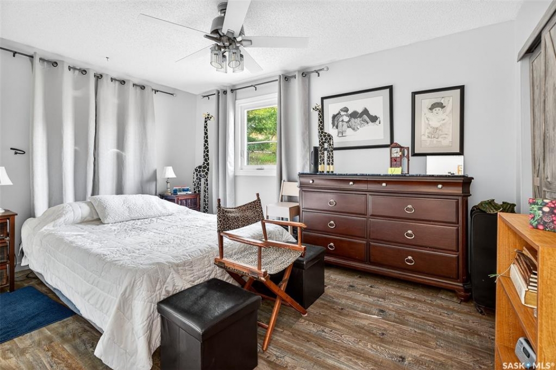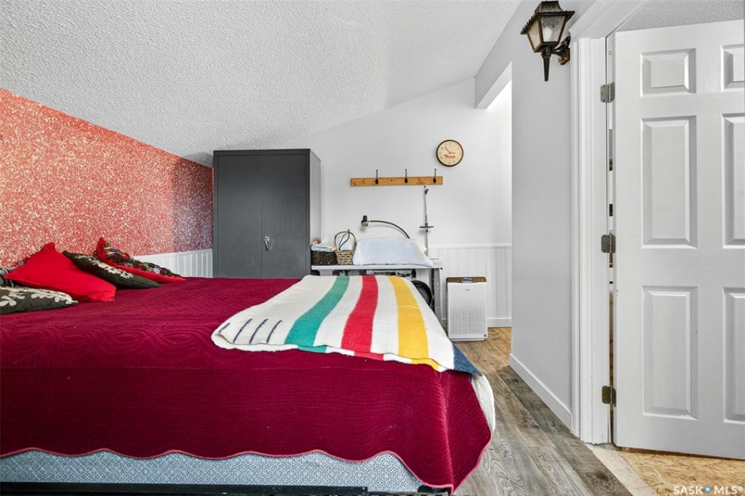 Charming year-round property at Parkview on Buffalo Pound Lake! This inviting 2-bedroom home offers comfort, functionality, and lake-life charm. As you approach, you're welcomed by a spacious front deck with convenient storage underneath. Inside, the open-concept layout connects the kitchen and living room, highlighted by large windows that fill the space with natural light. The kitchen features updated cabinetry, a modern sink, a generous pantry, and a functional island that doubles as a prep area and eating space. The main level includes a well-sized bedroom and a spacious 4-piece bathroom, complete with laundry. At the back of the home, step out to a screened-in deck that overlooks a large yard—perfect for relaxing or entertaining. The lower level offers a small additional bedroom, mechanical room, and an extra toilet for convenience. Outdoors, the property includes an older garage, a fenced area with multiple raised garden beds, and a pathway leading to a private trail lined with apple trees and Saskatoon berry bushes. This is an ideal opportunity to own a cozy four-season retreat with both modern updates and natural beauty at your doorstep.