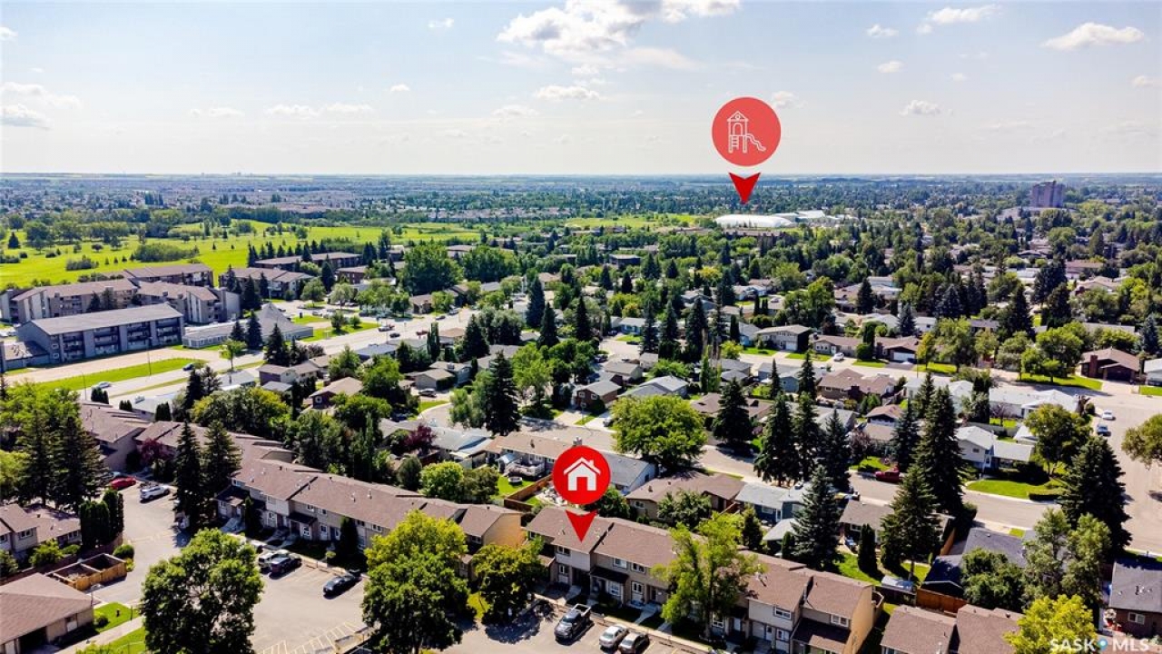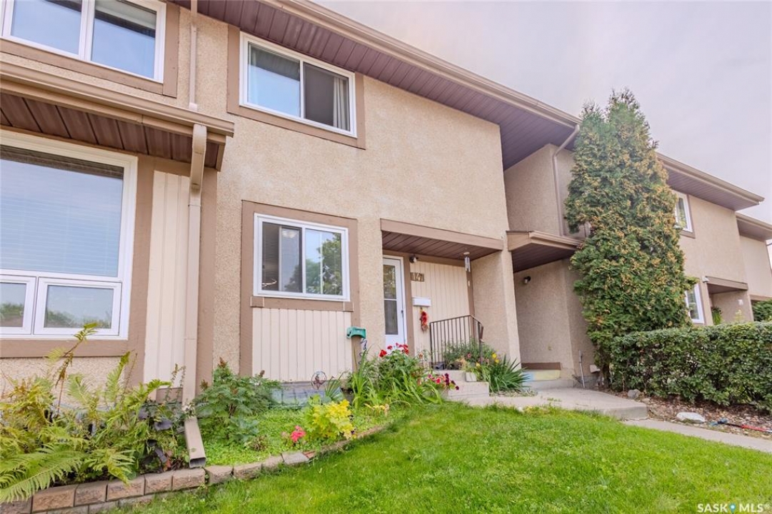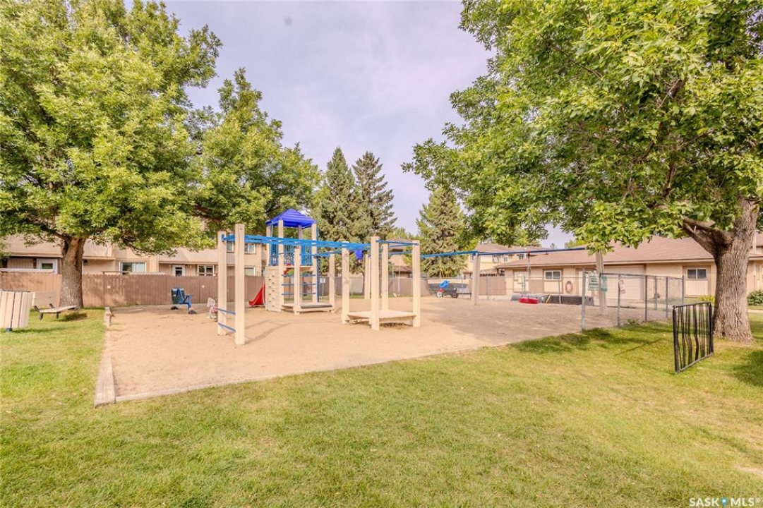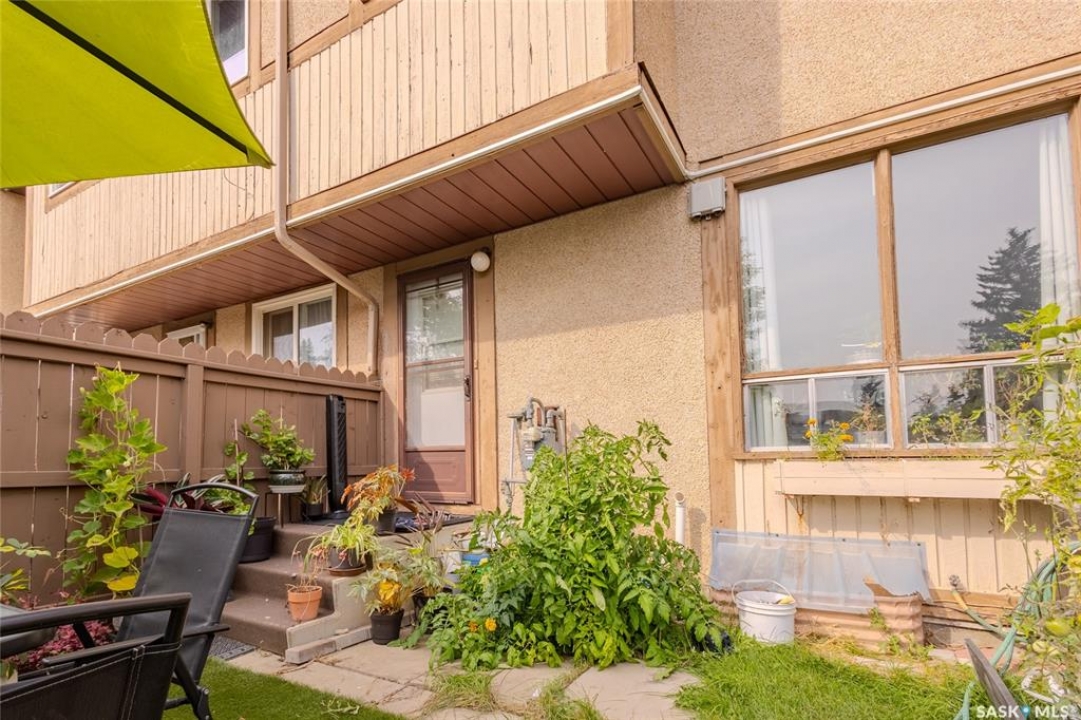 Situated in a great location within Wildwood Village, directly across from a playground and close to bus routes and all 8th Street amenities, this townhouse offers comfort and convenience at an affordable price. The main floor features a bright living room with a large south-facing window that fills the space with natural light, opening to the dining area. The functional kitchen includes a built-in dishwasher, backsplash, new microwave with hood fan, double sink, and a new kitchen window with a view of the playground. A conveniently located half bath just off the front entry completes the main level. Upstairs, you'll find laminate flooring throughout, a spacious primary bedroom with a new window, two additional bedrooms, and a full bathroom. The basement offers additional living space with a rec area and a laundry/storage room. Outside, enjoy a private, fully fenced south-facing backyard with a patio that is deeper than most units. Recent updates include new windows in the kitchen and primary bedroom, laminate flooring upstairs, a new stove, and a new microwave hood fan. The parking lot was freshly redone in 2024. This move-in ready home is ideal for first-time buyers, young families, investors, or anyone looking for a low-maintenance property in a convenient east-side location. Call your Realtor today to book your private showing!