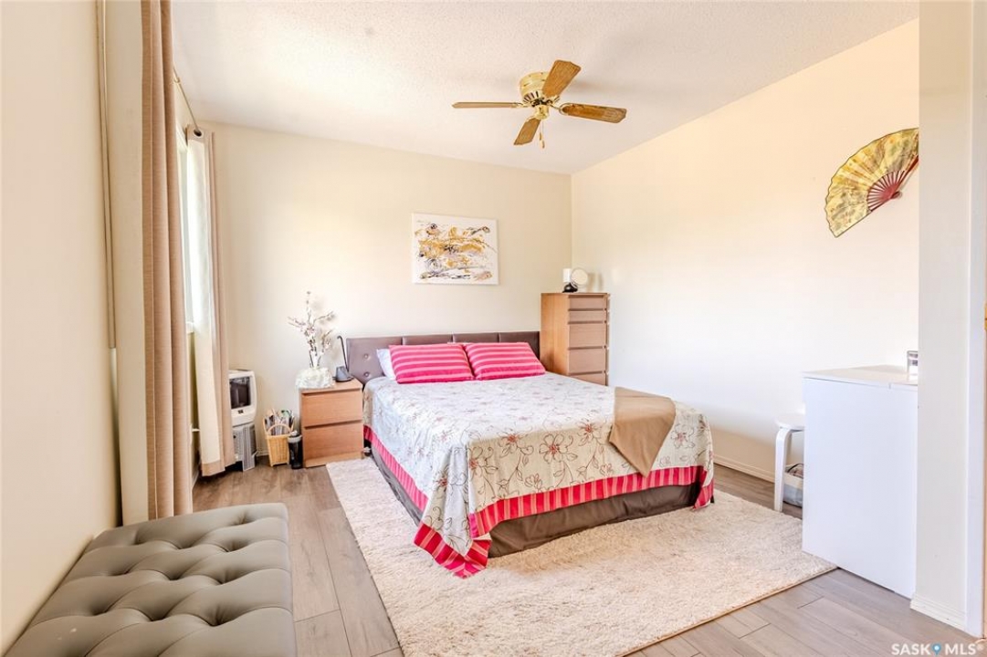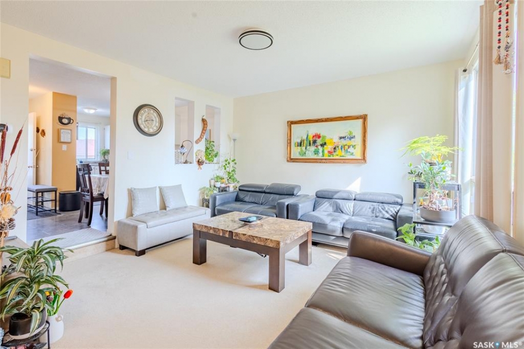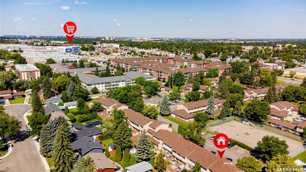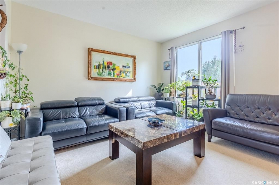 Situated in a great location within Wildwood Village, directly across from a playground and close to bus routes and all 8th Street amenities, this townhouse offers comfort and convenience at an affordable price. The main floor features a bright living room with a large south-facing window that fills the space with natural light, opening to the dining area. The functional kitchen includes a built-in dishwasher, backsplash, new microwave with hood fan, double sink, and a new kitchen window with a view of the playground. A conveniently located half bath just off the front entry completes the main level. Upstairs, you'll find laminate flooring throughout, a spacious primary bedroom with a new window, two additional bedrooms, and a full bathroom. The basement offers additional living space with a rec area and a laundry/storage room. Outside, enjoy a private, fully fenced south-facing backyard with a patio that is deeper than most units. Recent updates include new windows in the kitchen and primary bedroom, laminate flooring upstairs, a new stove, and a new microwave hood fan. The parking lot was freshly redone in 2024. This move-in ready home is ideal for first-time buyers, young families, investors, or anyone looking for a low-maintenance property in a convenient east-side location. Call your Realtor today to book your private showing!