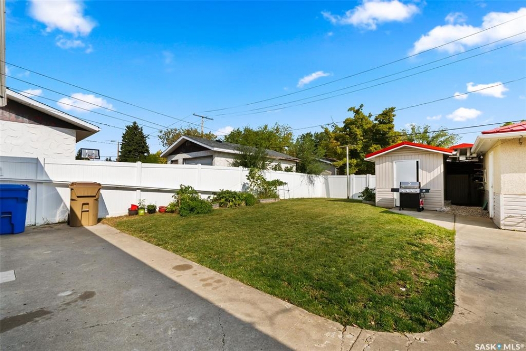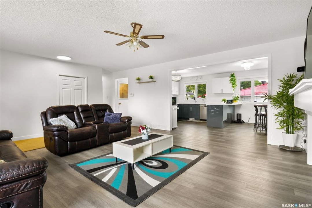 Welcome to 315 McIntosh Street N, a beautifully updated bungalow nestled in the family-friendly Normanview neighbourhood of Regina. This move-in ready home offers 1,245 sq. ft. of bright, modern living space on a spacious 6,100 sq.ft. lot. Thoughtful upgrades throughout. The main floor features a spacious living room with large windows that flood the space with natural light, complemented by vinyl plank flooring throughout. The open-concept design flows seamlessly into the dining area and a stunning updated kitchen, complete with quartz countertops, stylish two-tone cabinetry, stainless steel appliances, and an island with breakfast bar seating—perfect for everyday living and entertaining. Three main-floor bedrooms provide comfort and functionality, including a generous primary bedroom, and a beautifully renovated 4-piece bathroom with modern finishes. The fully developed basement offers even more living space with a large recreation room, an additional bedroom, a den, a 3-piece bath, and a spacious laundry room with extra storage—ideal for growing families or guests. Outside, the property sits on a 6,100 sq. ft. lot with a fenced backyard, patio area, and ample green space. A standout feature is the oversized 24' x 25' detached insulated garage, plus a long concrete driveway offering plenty of off-street parking. The home also boasts a durable metal roof for peace of mind. Additional highlights include central air conditioning, updated flooring, and modern fixtures throughout. Conveniently located near schools, parks, shopping, and transit, this property combines style, space, and practicality. This is an excellent opportunity to own a turn-key family home in a desirable location.